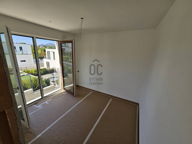 ARANYHEGYI VILLAPARK ÖRÖK PANORÁMÁVALEnergiatakarékos luxus ikerházak örök panorámával, GARÁZZSAL és további felszíni parkolókkal!A telket az Aranyhegy egyik legizgalmasabb részén található, ami kivételes lehetőségeket kínál.Egy karnyújtásnyira a várostól, mégis a természet közelében. Ez egy olyan közeg, ahol az intimitás adott, az okos otthon természetes, a luxus pedig garantált.Amikor megállsz majd a kapu előtt, a biztonságirendszer azonosít és beenged, a behajtón intelligens fények kísérnek végig a parkosított út mentén, hogy aztán egy igazi ékszerdoboz fogadjon a te igényeid szerint.Most pedig vesszünk el a részletekben.•Aranyhegyen új építésű prémium minőségű új ház, örök panorámával, nagy erkélyekkel, kertkapcsolattal és 1 állásos garázzsal rendelkezik.•Földszint amerikai konyhás nappalival dolgozó vagy hálószobával kerül kialakításra.•Kiszolgáló helyiségként megtalálható előtér, fürdő, külön WC, gardrób és háztartási helyiség.•Az emeleten 3 hálószoba és további 2 tágas fürdő áll a rendelkezésünkre.•Minden szoba erkélykapcsolatos, ahonnan csodás panoráma tárul elénk.•A házban található olyan fürdő, aminek kertkapcsolata van, így későbbiekben ki lehet alakítani egy kis wellness sarkot oly módon, hogy a fürdőbe szaunát építünk, a kertbe pedig jakuzzi-t telepítünk.•Jelenleg az alaprajzi elrendezés, burkolatok, falszínek még saját igényeire szabható!•Építés megkezdése: 2024. év I. negyedév•Ház átadása: PÁR HÉTEN BELÜLMűszaki tartalomSzerkezet•Vasbeton sávalap és lemezalap;•Vázkerámia fő és válasz falazatok;•Monolit vasbeton közbenső és zárófödém;Nyílászárók•3 rétegű üvegezésű, több légkamrás homlokzati oldalon aranytölgy színű műanyag•Motoros mozgatású alumínium redőnyök ELŐKÉSZÍTÉSE! (hőszigetelt redőnytok beépítése és elektromos betáp kiépítése);•CPL fóliás furatolt faforgácslap, teli kivitel 150.000,-Ft+ÁFA-ig.Gépészet•Az épület hőellátását levegő-víz hőszivattyú biztosítja;•Hőleadók központi mennyezet fűtés-hűtés és padlófűtés;•Fűtés-hűtés vezérlése helyiségszinten szobatermosztátokkal történik, távoli eléréssel online kapcsolat esetén;•Fürdőkbe kiegészítő fűtésként törölközőszárítós radiátor kerül elhelyezésre;•Használati melegvíz készítését villanybojler állítja elő;•Erős- és gyengeáramú hálózat•Lakás önálló napszakos és H tarifás mérővel rendelkezik;•Teljesítmény 3 x 20A;•Kaputelefon;•Alapfokú riasztórendszer telepítése földszinten, mozgás- és nyitásérzékelőkkel;•Kamerarendszer előkészítés;•Kábeltévé és internet előkészítés;•Villanysütő és főzőlap kiállás;•Fűtött garázslejáró;•Napelem előkészítése.Burkolatok•Hidegburkolatok 7.000,-Ft+ÁFA/m2•Melegburkolatok 6.000,-Ft+ÁFA/m2Alapáron felül rendelhető tételek igény esetén:Szauna telepítése;Jakuzzi telepítése;Kertépítés;Kert burkolatok építése;Kertvilágítás kiépítéseBiztonsági rendszerek telepítése (beléptető, riasztó és kamerarendszerek);Okosotthon telepítése;Szellőztető rendszer kiépítése;Napelemes rendszer telepítése;Stb.Élje át azt a luxust amit a hely és új otthona adhat. Várom hívását.