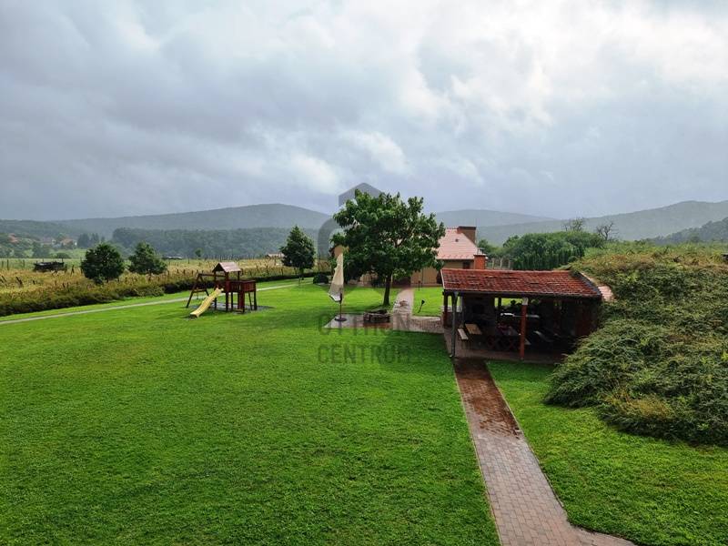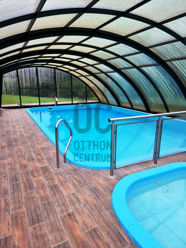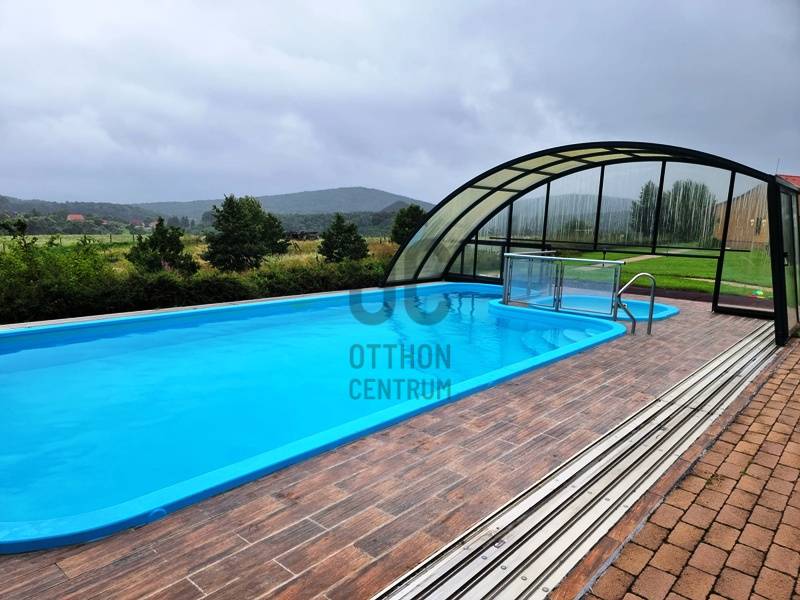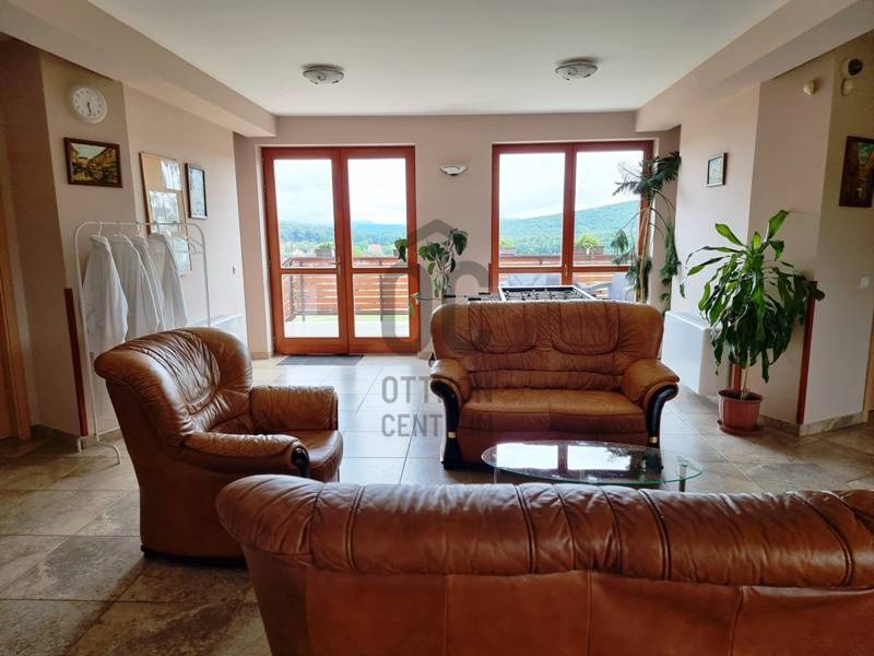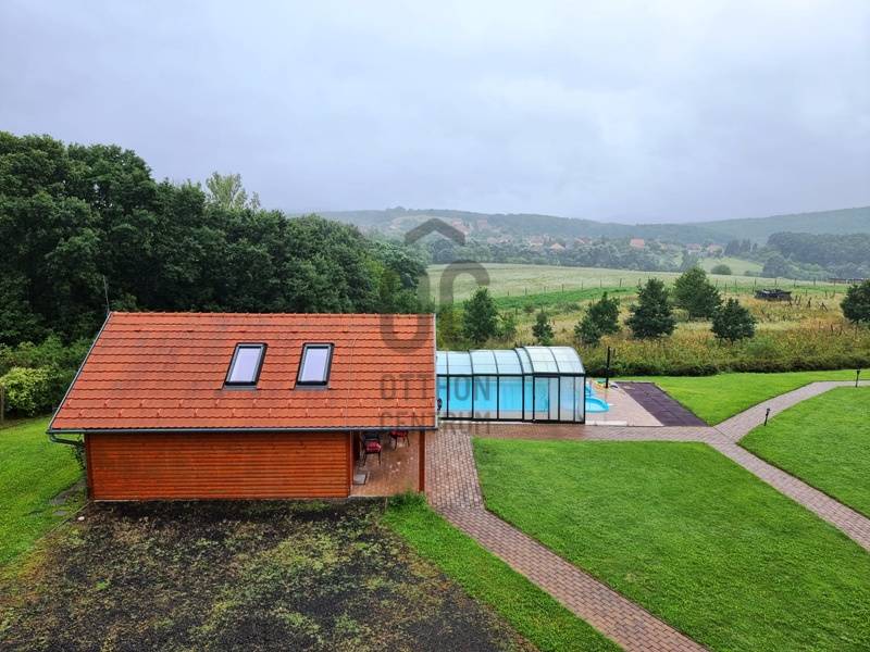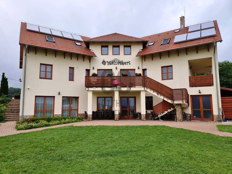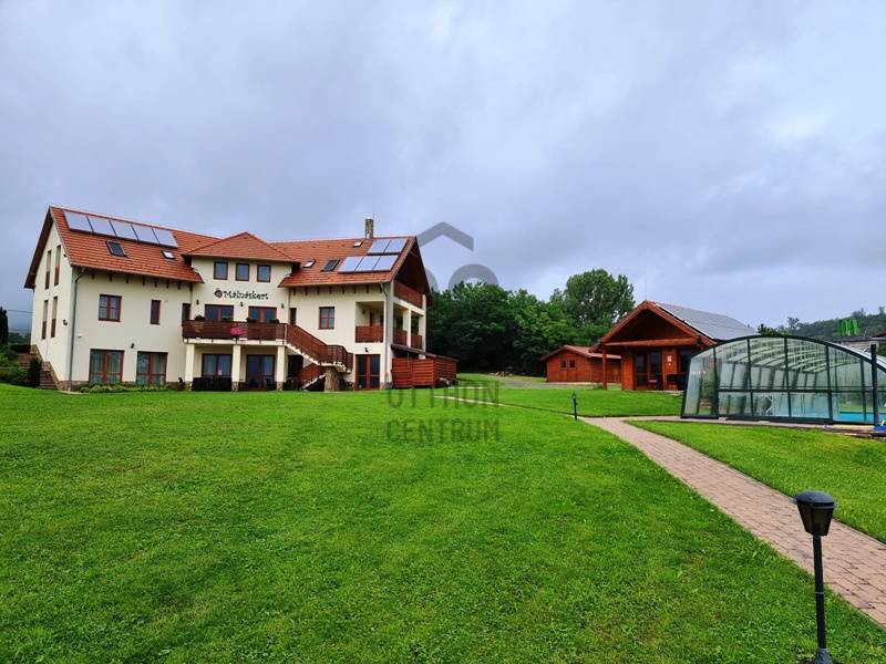 Azonnal üzemeltethető panziót, vendégházat keres?Jógatáborokat, elvonulásokat szervez? Táboroztatna?A Börzsöny szívében, Budapesttől mindössze 55 km-re, a Pest megyei Kóspallag településen eladó egy körpanorámás, kiváló adottságokkal rendelkező komplexum.Az 1 hektáros, körbekerített, gondozott parkban több épület került kialakításra:-A vendégház, mint központi egység 2010-ben épült, azóta egyszer már felújították. 9 db, egyenként 13-17 m2 alapterületű fürdőszobás szobából, recepciós részből, egy előkészítő- és egy a vendégek által is használható konyhából, étkezőből, egy konferencia teremből, vaéamint egyéb kiszolgálóhelyiségből áll összesen 468 m2-en.A szobák mindegyike panorámás, legtöbbjük terasz / erkély kapcsolattal rendelkezik.-Az apartmanház 2015-ben épült, egy közös helyiségből és két darab, egyenként kétszobás, konyhás, fürdőszobás egységből áll összesen 111 m2-en.-A szaunaház 2013-ban épült, amely finn- és infra szaunával, jakuzzival, zuhanyzóval, valamint a mellételepített járható magasságig fedett, de teljesen nyitható 50 m3-es medencével segíti az ellazulást.-A fentieken kívül egy fa-, egy szerszámtároló, valamint egy borospince (előtte sütögetővel, fedett szaletlivel) és egy géptároló gazdagítja az infrastruktúrát.A vendégházhoz és az apartmanházhoz kapcsolódóan is több autó számára biztosítottak szilárd burkolatú parkolókat a birtokon belül.Az egész komplexum fűtésrendszerét és energetikai ellátottságát is kifejezetten környezettudatosan és fenntarthatónak tervezték meg hőszivattyúk, napelemes rendszer, biomassza kazán és fatüzelésű vízteres kandallók hatékony összekapcsolásával.A „csomag” része a beépített belterületi birtokkal szemben elhelyezkedő 1 hektáros szántó, amelyre például gazdasági épület, lovarda, esetleg rendezvénysátor építhető.Mivel az itt kínált ingatlan céggel (tiszta, átvilágítható!) együtt eladó a feltüntetett árat további áfa nem terheli.Időpontért, további információkért keressen akár hétvégén is!