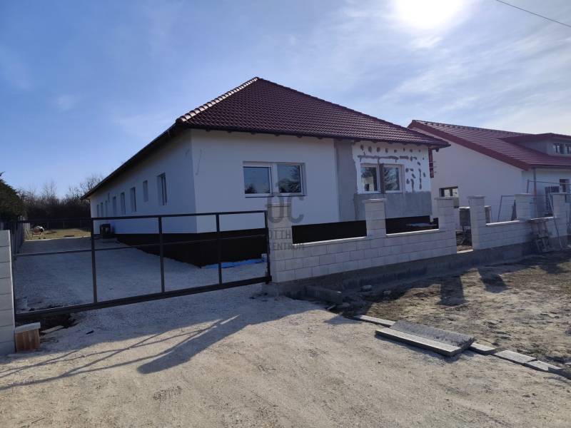 Gárdony csendes utcájában helyezkedik el a képeken látható 104 négyzetméter alapterülettel rendelkező DNY-i tájolású újépítésű ingatlan.Az ingatlan egy két lakást magában foglaló ikerház egyik lakóegysége.Az ingatlanhoz 810 négyzetméter kizárólagos használatú telekméret tartozik, amely nagyságának köszönhetően lehetőséget biztosít a kert szélesebb körű kihasználására.Rövid műszaki leírás: * Amerikai konyhás nappali étkezővel, 4 szoba, 1 fürdőszoba, külön wc + fedett terasz* Ház mérete: 104 nm hasznos alapterület + 12 nm-es fedett terasz* Tetőtérben 60 nm beépíthető* Telek mérete: 810 nm* DNY-i tájolású* A ház Porotherm 30-as tégla falazattal, 15 cm homlokzati hőszigeteléssel, 10 cm aljzatszigeteléssel készül* Padlóban lépésálló hőszigeteléssel, födémsíkban hő és hangszigetelő anyaggal, homlokzaton eps, lábazaton xps hőszigetelő táblával*Fűtés rendszer elektromos víz-levegő hőszivattyú, padlófűtés, és fan-coil fűtőtest* Műanyag 3 rétegű hőszigetelő üvegezésű nyílászárók, alumínium redőnyökkel* Bejárati ajtó: műanyag, több ponton záródó* Elektromos hálózat 3*16A ( H tarifa)* Tető: fa tetőszerkezet ,beton födémszerkezet, piros-barna cserép fedéssel, 25 cm padlásszigeteléssel* Burkolat: nappaliban-étkezőben, konyhában, közlekedő részen, fürdőszobában, mellékhelyiségben és a teraszon kerámia burkolat, szobákban laminált parketta* Homlokzat: nemes vakolat fehér színben * Az ingatlanrészhez tartozó kertrész drótkerítéssel elkerített, rendezett földfelszínű* Gépkocsi beálló térkővel burkolt.* Az utcafronti bejáratnál távirányítású kapubejáró készül személybejáró kapuval együtt* A konyhabútort a vételár tartalmazza. (1,5 millió forintig)* BB energetikai minősítésű besorolássalVárható átadási idő: 2024. szeptemberA ház csendes, családbarát környéken, a település kiemelten zöld részén található. Bevásárlási lehetőség autóval 5 percre van.Ha a vásárláshoz a jelenlegi ingatlana eladására van szükség, akkor abban is szívesen együttműködöm Önnel!Bővebb műszaki és egyéb információért várom jelentkezését!Amennyiben hitelre van szüksége, az Otthon Centrum az ország egyik legnagyobb és legmegbízhatóbb hitelközvetítőjeként, teljes körű és díjmentes hitel ügyintézéssel, áll ügyfelei rendelkezésére.Kérje személyre szabott ajánlatunkat!eladó, újépítésű, fejér megye, gárdony, családi ház, ikerház, tégla, 104 nm, 810 nm telek, nagycsaládos, 4 szoba, 5 szoba, amerikai konyhás, hőszivattyú, csok, lehetőség,