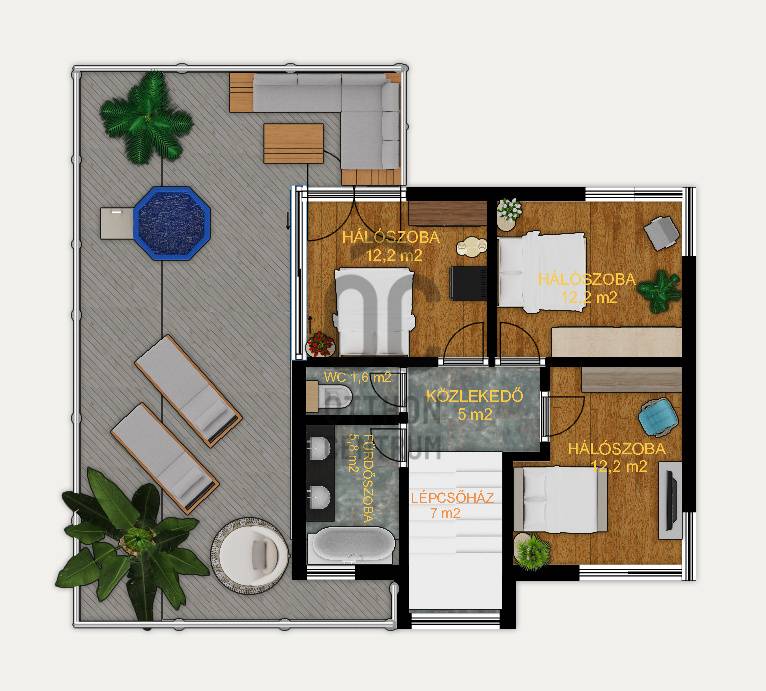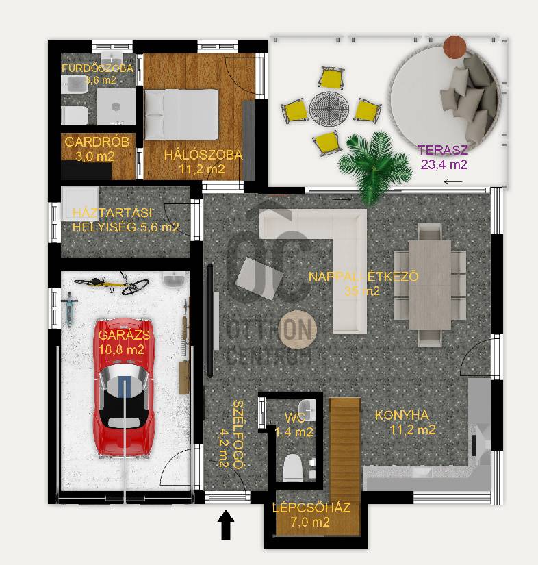 Eladásra kínálunk Székesfehérvár közkedvelt részén az Öreghegyen, egy ÚJ ÉPÍTÉSŰ, 150 m2-es (bruttó 180m2), 2 szintes, 4 hálószobás + nappalis, 2 fürdőszobás, 2 teraszos, kedvező energetikai besorolású, magas műszaki tartalommal rendelkező, önálló családi házat.A privát lakóparkban 6 ház épül, garázzsal, teraszokkal, kertkapcsolattal.A modern kétszintes lakóépület szintjei, praktikus belső helyiségkiosztása alkalmazkodik a telek és a kilátás viszonyaihoz.Az alsó szinten a grandiózus terekkel rendelkező étkező-nappali-konyha található, továbbiakban beépített gardrób, fürdőszoba, wc, hálószoba és a szerszámok és kerékpárok tárolására alkalmas garázs lett kialakítva. A kilátást nyújtó felső szinten kaptak helyet a hálószobák egy fürdőszobával és mellékhelyiséggel kiegészítve. Ezenkívül minden szinten kényelemes tágas teraszok találhatók.Az ingatlan alsó szintjén szauna kialakítására is van lehetőség.MŰSZAKI PARAMÉTEREKMeleg víz és fűtés módja: -levegő-víz rendszerű hőszivattyú, a hő leadás módja padlófűtés és falfűtés,ezen kívül gázkazán is beépítésre kerül a hőszivattyú mellett.Hűtés: -beépített mennyezeti klímaANYAGOK ISMERTETÉSEAlapozás: -vasbeton alap, talajmechanikai és alapozási terv szerint.Lábazat: -vasbeton helyszíni kibetonozással, hőszigetelése extrudált lemezzel.Vízszigetelés: -vasalt aljzatbetonra vízszintesen teljes felületen ragasztott bitumenes lemeztalajnedvesség elleni szigetelés készül.Teherhordó falazat: -vázkerámia 30-as falazóblokk rendszerrel készül.Áthidalók: -előregyártottak beépítésével, ill. mon. vasbeton áthidalók, redőny szekrény kialakítással.Koszorúk: -monolit vasbetonból, extrudált lemez elé dübelezéssel.Födémszerkezet: -monolit vb. födém, felülről pvc csapadék elleni szigeteléssel fedve, alulról vakolva ésgipszkarton álmennyezet.Bádogos munka: -alumínium lemez hajlatbádogozás, ablakkönyöklő, és esőcsatorna készül.Válaszfalak: -vázkerámia 10 cm-es válaszfalelemekből 2 oldali vakolattal.Nyílászárók: -műanyag profilokból, hőszigetelő üvegezéssel készülő ablakok és homlokzati nyílászárók,a belső ajtók típus szerkezetek, lazúros mázolással kerülnek beépítésre.KÖRNYÉKCsendes, családi házas, kertvárosias környezet.MEGKÖZELÍTHETŐSÉGAz M7-es autópálya 4 perc, 23, 23E, 25, 31, 31E jelű autóbuszok buszmegállója 400 m-en belül elérhető.Hitelre van szüksége? Az Otthon Centrumnál bankfüggetlen tanácsadó kollégánk, díjmentes bank semleges hitelügyintézéssel áll rendelkezésére.Segítségére lesz az önnek legmegfelelőbb konstrukció kiválasztásában.Támogatások:- CSOK+- babaváró- 3% Otthon start hitel!!Kérje személyre szabott ajánlatunkat, további információért és megtekintési időpontért hívjon bizalommal a hét bármely napján!
