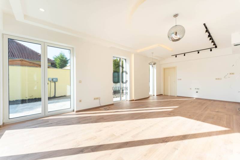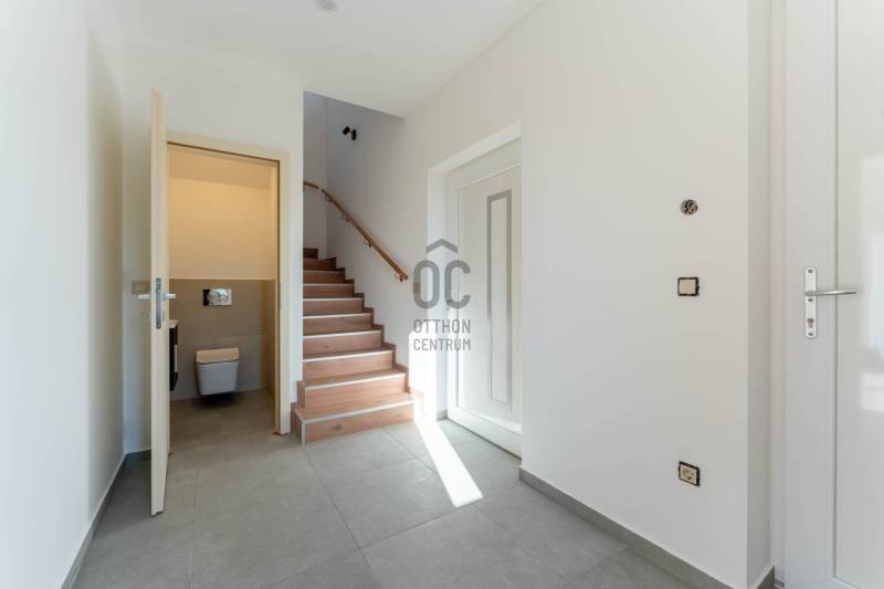 Igazán igényes építésű és kialakítású ikerházrész keresi tulajdonosát!???? Karácsonyi meglepetés az ingatlanpiacon!Decemberben néhány ingatlanunk extra kedvezménnyel elérhető, kifejezetten erre a hónapra. Ha eddig csak nézelődtél, most érdemes lépni – ez egy olyan lehetőség, ami nem tér vissza januárban. Nézz körül, és használd ki az ünnepi árakat, amíg tart!???? 189.000.000 Ft-ról ➡️ 175.000.000 Ft-ra csökkent az ár! ????✨Az ingatlan legfőbb jellemzői a praktikus elrendezés, és a minőségi anyagok! Újépítésű családiházas övezetben található, rendezett utcában. A házrész saját térkövezett útról közelíthető meg, míg az udvar parkosítása tavasszal történik. Az udvaron automata öntözőrendszer került kiépítésre vízgyűjtő tartállyal ellátva. Parkolási lehetőség, akár az utcában is megoldható, de az udvarban jelenleg is kapott helyet egy felszíni parkoló, valamint egy 18 nm-es garázs is, elektromos Hörmann garázskapuval ellátva. A ház külső falazata 50 cm vtg. Porotherm Thermo Rapid tégla, belső falazat 25 cm vtg. hanggátló tégla Porotherm 25AKU Z. A tetőre 15+10 cm ROCKWOOL AIRROCK hőszigeteslés került, héjazata Prefalz bevonatos alumínium lemez kettős állókorcos kivitelben. Hőszivattyús rendszer került beépítésre, mely padlófűtésként fűt, mennyezetről pedig hűt, helyiségenként állítható. A villany 3x25A +Htarifa. Nyílászárók 3rétegű műanyagok, ablakok elektromos zsalúzia árnyékolóval felszereltek. A mindennapok vízhasználatát védi és megkönnyíti egy vízlágyító berendezés is. Az ingatlan padlóburkolatai prémium minőségű hideg és melegburkolatok extra magas kopás és vízállósággal.A lakásba belépve egy tágas előszobába érünk, ahol helyet kapiott egy WC-kézmosóval, a rendkívül világos, ablakos amerikai konyhás nappaliból léphetünk be, ahol a gépészet is található. A konyhabútor - mely jelenleg még nem került beépítésre - ugyancsak a vételár részét képzi. A ház kertjébe, teraszára a nappali-étkező-konyha helyiségekből is ki lehet lépni, valamint az innen nyíló hálószobából is. Az emeletre érve 3 kényelmes méretű szobát találunk, egy fürdőszoba, valamint egy 35 nm-es teraszt is találunk.Ez az ingatlan a mai kor luxuskövetelményeinek, és a vonatkozó jogszabályokban meghatározott előírásoknak teljes mértékben megfelel, amelyet az alaprajz és a műszaki tartalom is visszatükröz az új tulajdonos elvárásainak megfelelően.Bővebb információkért és megtekintésért, keressen bizalommal!