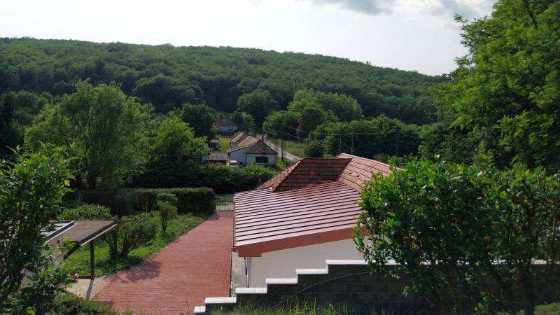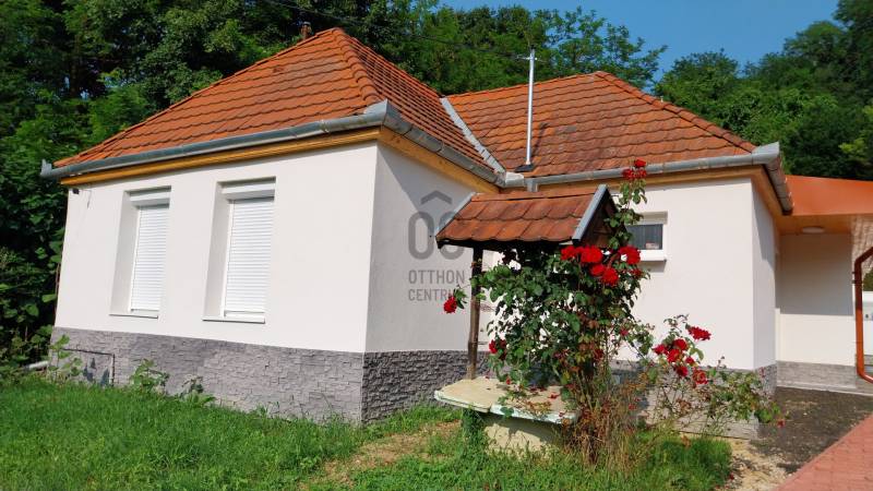ZALASZENTGRÓT EGYIK FESTŐI, ERDŐS DOMBOK KÖZT MEGBÚJÓ KICSI VÁROSRÉSZÉBEN, CSÁFORDON KÍNÁLUNK EGY FRISSEN MEGÚJULT CSALÁDI HÁZAT TELJES KÖZMŰELLÁTÁSSAL. EGYEDÜL IRODÁNKNÁL ELÉRHETŐ !Az ingatlan kivételes elhelyezkedésű. Egy kiváló infrastruktúrával rendelkező járási székhely szatellit falujában, annak is különálló, háborítatlanul békés részében található, csupán szembeni, nem közeli szomszéddal. Belterületi, lakóház, gazdasági épület és udvarként nyilvántartott. Vezetékes víz, csatorna, villany, gáz rendelkezésre áll. Aszfaltút vezet a házig, ahonnan már a hegyekbe induló földút kezdődik. Mégis szoros köldökzsinór köti össze a néhány kilométerre lévő várossal, hiszen a buszmegálló karnyújtásnyira van .A bájos lankára nyújtózó, 3605 m2-es bekerített telek szinte szabályos négyzet alakú, 62 méter utcafronti széllességgel, két bejárattal. Az épület egy régi, 50 cm vastag falú vályogház könnyű szerkezetes bővítésével, szakszerű, gondos kivitelezéssel esett át a metamorfózison. Néhány műszaki jellemző. - A tetőn szükség szerint gerendákat cseréltek, szigetelt beton födém került a padlásra. - Nedvesség - és hőszigetelő aljzat készült.- Új villamos vezetékek, villanyóra a 3 x 32 Amper nappali és 1 x 32 Amper éjszakai áramellátáshoz. - Kicserélték a víz- és szennyvíz csövezést házon belül és kívül.- Mindenütt műanyag nyílászárók, kerámia járólapok.- Villanyárammal táplált padlófűtés. Villanybojler.- Elektromosan működtethető motoros redőnyök, garázsajtó. A kapuhoz szintén kiépítve az áramellátás.- 4/6 személy lakhatásához elegendő kapacitású vízlágyító rendszer. - Gáz a főzéshez bevezetésre került.- Megfigyelő kamerák.- Alap konyhabútor rendelkezésre áll.A telken garázs, mellette tároló. A kút jelenleg csak dekoráció.A lakóház beosztása: Közlekedő, melyből a három ajtóval kertkapcsolatos nappali, a zuhannyal és káddal felszerelt fürdő, és egy étkező helyiség nyílik. Ebből egy szoba és a konyha érhető el, utóbbi mögött háztartási helyiség. Ha igényes, modern körülmények közt, de egészséges környezetben, a települések, közutak zajától távol kíván letelepedni, nyugalomra, elvonulásra vágyik, mégsem szeretne távol lenni a város nyújtotta kényelmi infrastruktúráktól, megtalálta álmai otthonát. Hévíz és a Keszthely alig 25 / 30 perc autóút, a zalaszentgróti és kehidakustányi élményfürdők kerékpárral is elérhetők. Zalacsány 15 km, ahol golfpálya, két kastélyszálló, horgásztó várja a kikapcsolódni vágyókat.További információért, megtekintéshez, kérem, hívjon / írjon a megadott elérhetőségen.