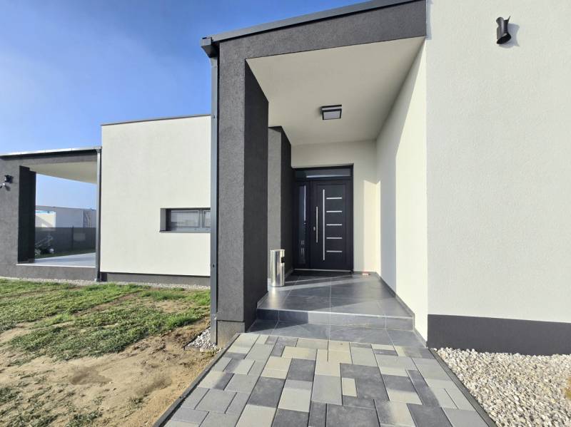 Exkluzív, újépítésű prémium családi ház eladó Zalaegerszeg legújabb, dinamikusan fejlődő városrészében – Neszelén! Fedezze fel ezt a modern, letisztult stílusban megálmodott, azonnal költözhető luxusotthont, amely a legmagasabb műszaki és esztétikai elvárásoknak is maradéktalanul megfelel. Az ingatlan főbb jellemzői:210 m²-es egyszintes lakótér, átgondolt, praktikus alaprajzzal862 m²-es sík telek, ideális méretű, könnyen gondozható kerttelTéglaépítés + prémium szigetelés, betonfödémmelHáromrétegű, hőszigetelt nyílászárók redőnnyel és szúnyoghálóvalEnergiahatékony hőszivattyús padlófűtés és klímaberendezésKét fedett terasz, melyek tökéletes helyszínt biztosítanak a reggeli kávéhoz vagy esti borozáshozTágas, 33 m²-es garázs, elektromos kapuval Helyiségek elosztása:Impozáns, 65 m²-es nappali–amerikai konyha, nagy üvegfelületekkel és kertkapcsolattal3 nagyméretű hálószoba, mindegyik napfényes, jól szeparált2 elegáns fürdőszoba modern szaniterekkelHáztartási helyiség2 fedett terasz – közvetlen kijárattal a kertbe33 m²-es garázs Minőség, amit érezni lehetA ház dél–nyugati fekvése egész nap természetes fényben fürdeti a belső tereket, így minden részlet harmonikus és élettel teli atmoszférát sugároz. Elhelyezkedés – Csend és kényelem tökéletes egyensúlyaNeszele városrész Zalaegerszeg egyik legígéretesebb, újonnan kiépülő lakóövezete, ahol a természet közelsége és a modern infrastruktúra találkozik. A városközpont néhány perc alatt elérhető, mégis garantált a nyugalom és biztonság. Irányár: 231,9 millió Ft