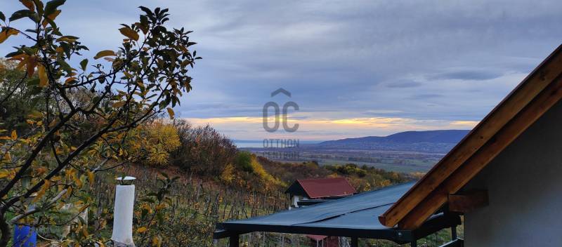 Szent György-hegyen Balatonra örök panorámával bíró varázslatos birtok, amiről mindenki álmodik!Kiemelt megbízás kizárólag az OTTHON CENTRUM kínálatában!Az ingatlanpiacon évről évre felértékelődő Badacsonyi borvidék egyik kiemelkedő gasztro, bor és turisztikai lokációja a Szent György-hegy, melynek nyugati oldalán helyezkedik el ez a különleges fekvésű présház nyaralós ingatlan.A hegyre felvezető aszfaltozott dűlőút mentén egy idő után elfogynak a présházak s amikor már csak az erdő ölel körül bennünket minden oldalról, akkor érkezünk meg ehhez a kivételes adottságú, több szintes, jó állapotú birtokhoz.A természetközeli présház és a különálló hatalmas, 60 m2-es, varázslatos hangulatú, remek állapotban lévő kereszt alaprajzú, teljesen föld alatti borospince elvehetetlen panorámával rendelkezik a Balatonra és a környező hegyekre. A jó gazda által folyamatosan gondozott minőségi borszőlőnek és a vételár részét képező komplett borászati felszerelésnek köszönhetően akár már ebben az évben is a saját borát kínálhatja szeretteinek és barátainak!Az egész terület rendkívül otthonos és hangulatos, tökéletes nyugalmat és intimitást sugároz az erdőkkel körülölelt telek, a hangulatos épület, a gondozott szép szőlősorok ~ pontosan azt a \"Balatoni életérzést\" adja amit oly sokan keresünk s amelyet évről évre egyre kevesebb eséllyel találhatunk meg ebben a térségben. Mára általános a szőlőhegyeken a sűrű beépítettség, az egyre csökkenő szőlős vagy erdős terület ~ mindez ezen az ingatlanon másképp van.Az új tulajdonosa ennek a birtoknak nem egyszerűen egy ingatlant vásárol, ennél sokkal többet kap, olyasmit is, amely pénzben nehezen kifejezhető.Jöjjön el és élje át, tapasztalja meg ezt az élményt!Az épület az elmúlt években szinte teljes körű felújításon esett át, mely érintette a burkolatokat, nyílászárókat, gépészeti és elektromos rendszereket, tetőszerkezetet.A 19,2 m2-es pinceszinten jelenleg egy tároló van. A földszinten egy 12 m2-es konyha-étkező, egy 17,6 m2-es szoba és az abból nyíló 6,4 m2-es hálószoba kaptak helyet, valamint a konyhából nyílik még egy 5,4 m2-es mosdó-zuhanyozó-wc vizesblokk és egy 2,1 m2-es kamra is. A kívülről lépcsőn megközelíthető padlástérben egy, az erdőre és a Balatonra is panorámás 31,3 m2-es nagy belmagasságú hálószoba található. Az épület vízellátását bő és állandó vízhozamú 100 éves kút biztosítja. Ha kedvünk támad a szabadban sütögetni, úgy az egyedileg épített kerti kemencében is megtehetjük, amely csak pár lépésre helyezkedik el a nyaraló előtti 28 m2-es burkolt, árnyékolt terasztól. Az ingatlan két helyrajzi számon, az alábbi adatokkal nyilvántartott. Egyik telek 1375 m2 nagyságú, szőlő művelési ágú, a másik 2258 m2 telekterületű, szőlő, fásított terület és gazdasági épület megnevezésű.Az ingatlan a mellette található, önálló helyrajzi számmal rendelkező 2766 m2 területú, szőlő és gazdasági épület megnevezésű - rendszerünkben NY012263 regiszrációs számmal szereplő - birtokkal együtt is megvásárolható, aminek eredményeként egy rendkívüli, egyedülálló birodalom tulajdonosává válhat!Ilyen adottságú eladó területet manapság már nehezen találhatunk itt a Szent György-hegyen, de az egyre szigorodó építési előírások és kötelmek miatt építeni még kevésbé tudunk.Befektetésnek, turisztikai kiadásban gondolkodóknak, szőlészeti gazdálkodóknak és családi nyaralónak egyaránt kitűnő választás.A szőlős birtok a földtörvény alá eső ingatlan, így kifüggesztés köteles, a hatósági eljárást követően azonban azonnal birtokba vehető és hasznosítható, de az esetleges átépítési elképzelések kapcsán az építész tulajdonos is tud javaslatokat adni.Ha felkeltettem érdeklődését hívjon bizalommal, a hét minden napján szívesen megmutatom, amíg még elérhető a kiváló ajánlat!