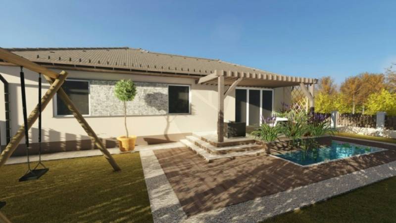 Győr közelében Győrújfalun, újonnan épülő, igényes kialakítású, tégla építésű családi ház leköthető.A nappali + négy szobával(vagy akár több szobával) rendelkező ingatlan alapterülete nettó 110 m2, mely igény szerint módosítható.A praktikusan tervezett házban a szobákon kívül tágas és napfényes amerikai konyhás nappali, gardrób, kamra, szélfogó, közlekedő, fürdőszoba+wc, háztartási helyiség és egy külön mellékhelyiség is kialakításra kerül.Az élhető méretű telek összesen 800 m2-es, mely 30%-ban beépíthető.A feltüntetett vételár az emelt szintű fűtés kész árat és a telek árát tartalmazza, de igény esetén kulcsra kész befejezésre is van lehetőség!Továbbá az ár tartalmazza a komplett tervezői díjat(gépészet, metszetek, statika, energetika, engedélyek), plusz egy inverteres(hűtő-fűtő) klímát!A jelenlegi árajánlatban az otthon melegéről gáz-cirkó kazán gondoskodik, padlófűtéses hőleadással, de a fűtésrendszer is az építtető igényei alapján módosítható!A részletes műszaki leírást és az Építőipari cég weboldalát kérésére e-mailben elküldöm.Más az elképzelése? Válassza ki Ön a saját elképzeléseinek megfelelő alaprajzot!Amennyiben teljesen egyedi tervezést szeretne, az is lehetséges!A képek látványtervek.Jól átgondolt tervezés, megfelelő szakmai tudás és háttér garantálja a MINŐSÉGI OTTHON megvalósítását!További kérdés esetén állok rendelkezésére!Amennyiben megbízható építtetőt szeretne, referenciamunkákkal, minőségi anyagokkal és kivitelezéssel, hívjon bizalommal akár hétvégén is!Teljes körű ügyintézéssel:- Ügyvéd- Biztosítás- Hiteltanácsadás- Generálkivitelezés- Ingatlanértékesítés- Teljeskörű ingatlanfelújítás- CSOK, babaváró, áfa visszaigénylés - állunk rendelkezésére!