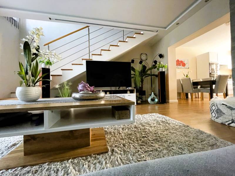 Debrecen kedvelt részén, a Hatvan utcai kert csendes, új építésű övezetében, magas műszaki tartalommal rendelkező, jó elrendezésű, kétszintes láncház eladó. Az ingatlan, nappali + 3szobás, dupla komfortú, a földszinten garázzsal, terasszal, és önálló kertkapcsolattal. Az ingatlan főbb jellemzői:-élhető tágas terek, kitűnő tájolás, nagy üvegfelületek-a szomszédtól független épületszerkezet, önálló épület-saját tulajdonú, sorompóval elzárt magánút-nagy terasz-nappali+3szoba!-K-Ny tájolás, kiváló benapozás-prémium minőségű nyílászárók-15cm szigetelés-cirkó-fűtés, kondenzációs kazánnal-fal, padló, és a mennyezet hűtés-fűtés-3,5 kw-os napelem-minőségi burkolatok és szaniterek-központi porszívó-a konyha gépészete 2 éve cserélve-ház előtt 4állásos magánparkoló-automata öntöző rendszer-kitűnő infrastruktúra-csendes, értékálló környezetés még rengeteg más...Kiváló lokáció, jó tömegközlekedés, a belváros kerékpárúton is mindössze pár perc. A közelben hipermarketek(Lidl, Auchan, Tesco, Stop Shop), iskolák, óvodák, orvosi rendelők, gyógyszertárak , játszóterek és a leendő BMW-gyár találhatóakJózsai, vagy Pallagi, vagy debreceni zárt beépítéses 110-130 nm2-es házra cserélhető ráfizetéssel, de csakis csendes környéken!