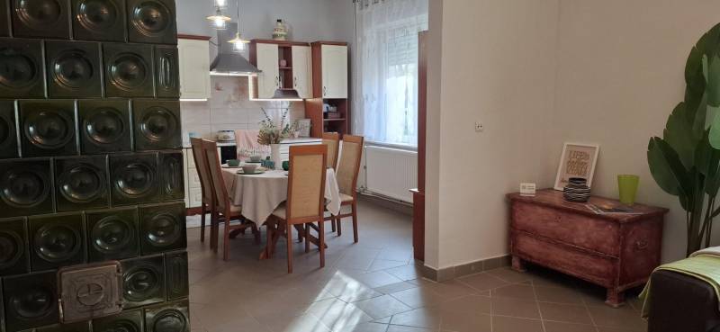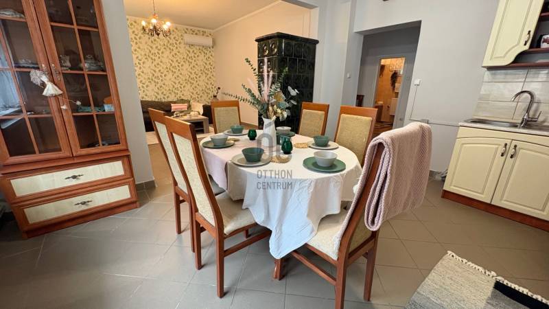 Jó elhelyezkedésű, azonnal költözhető tágas, kertes családi házas ingatlant kÍnálunk megvételre a népszerű Balatonkenesén, néhány száz méterre a városközponttól és a Balaton- parttól!Két lakás is kialakítható benne!Garázs, tároló, műhely, műterem önálló épületként elhelyezhető rajta. A telek 20 %-ig beépíthető. Kiváló választás mindazon családoknak, akik nyaralójukat vagy éppen állandó otthonukat keresik Kenesén, mert gyalogosan elérhető a strand, a vÍzpart, az óvoda, az iskola, a polgármesteri hivatal, a helyi és a távolsági buszmegállók, valamint a vasútállomás. Továbbá kiváló két lakás kialakÍtására is, mégpedig a két szint teljes elszeparálásával és egy új külső lépcső kivitelezésével megszűntetve a jelenlegi belső lépcsőházat.A szolgáltatások és a boltok is csupán néhány perces sétára vannak. Az önálló, földszint plusz tetőtér beépÍtett duplakomfortos, 5 szobás családi ház fűtéséről gáz-cirkó, cserépkályha és hűtő-fűtő kliima gondoskodik.A földszinten előszoba, közlekedő, amerikai konyhás nappali, 32 m2-es teraszkapcsolattal rendelkező szoba, kádas fürdőszoba, és egy több funkciót is betölthető, szintén terszkapcsolatos helyiség (iroda, gardróbszoba) kapott helyet. A tetőtérben közlekedő, három hálószoba és egy zuhanykabinos fürdőszoba és padlásszoba található. Két hálószoba közös erkéllyel rendelkezik, ahonnan részpanoráma nyÍlik a Balatonra.Az ingatlan a ’90-es években épült, 40-es téglából. A nyiilászárók részben már a korszerű műanyag nyiilászárókra lettek cserélve.Az 1231 m2-es telek egy kisebb elő- és egy nagyobb hátsó kertrésszel rendelkezik, mely utóbbibantároló, rózsalugas, néhány gyümölcsfa, diisznövények és füves terület találhatóak. A kertben több autó parkoltatására van lehetőség.Amennyiben szeretne többet megtudni vagy személyesen is megtekinteni az ingatlant, kérem, keressen a megadott elérhetőségeken, akár hétvégén is!