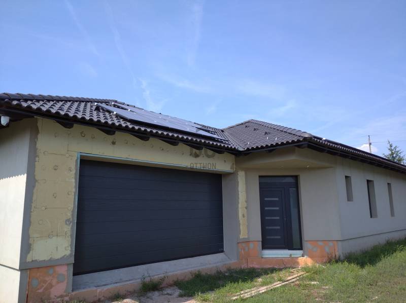 Pákozd frekventált utcájában, ÚJ MODERN ÉPÍTÉSŰ nettó 169,84 m2-es ,fölszintes nagy nappali-étkező-konyha - nagy TERASZ, 4 szobás, 2 fürdőszobás, vendég wc-s, 2 állásos garázzsal épülő HÁZ ELADÓ!Az előírásoknak megfelelően 5m-es előkerttel és 6 m-es hátsóoldali távolsággal épülő MODERN EGYSZINTES HÁZ, tágas nappali-étkezővel, melyhez kapcsolódik a konyha , illetve a pergolás TERASZ, valamint a konyha teréből nyíló kamra is.Az étkező-nappali teréből érhető el a szülői háló, melyhez egy fürdőszoba kapcsolódik és a közlekedő is elérhető.A közlekedőből a három hálószoba és a fürdő közelíthető meg.Megfelelő feltételek esetén a szaniter és a burkolatok VÁLASZTHATÓK!Az idén még igénybe vehető CSALÁDTÁMOGATÁSOK:- CSOK+- 3%-os CSOK HITEL- 5%-os Áfa visszatérítés-ILLETÉKMENTESSÉGMűszaki:- vasbeton sávalapra épül- tartófalak POROTHERM falazóblokkal épülnek- válaszfalak 10 cm-es válaszfallapokból készül- födém: monolit vb födémmel készül- tetőszerkezet: kontytető 10x15 cm-es szalufa,15x15 cm-es szelemen, 5x 15 cm-es fogópár keresztmetszetekkel fedélszékterv szerint készül, antracit cserép héjalással.- nyílászárók műanyagszerkezetűek, ALBALUX típusúak ANTRACIT színben, alumínium, automata redőnyökkel szúnyoghálóval ellátva.- fűtés-hűtés HŐSZIVATTYÚVAL padlófűtéssel és mennyezeti hűtés-fűtéssel megoldott, mely ráadásul helyiségenként távirányítással külön-külön szabályozható!- 16,2 Kw-os napelem biztosítja a ház teljes áramellátását- Kandalónak külön kémény biztosított!Automata garázskapun keresztül jutunk a 2 állásos garázsba, melyben külön helyet kapott a GÉPÉSZETI rész is.A kivitelező régi partnerünk, számos referenciáját tudjuk megmutatni!A HÁZ újépítésű családiházas környezetben épül, megfelelő zöld felülettel.A közelben buszmegálló, az M7-es autópálya 5 perc, Székesfehérvár szintén 5 per távolságban elérhetők.Irodaiazonosító: U0045236újépítés, hőszivattyú, zöld, kert, vidék, megújuló energia