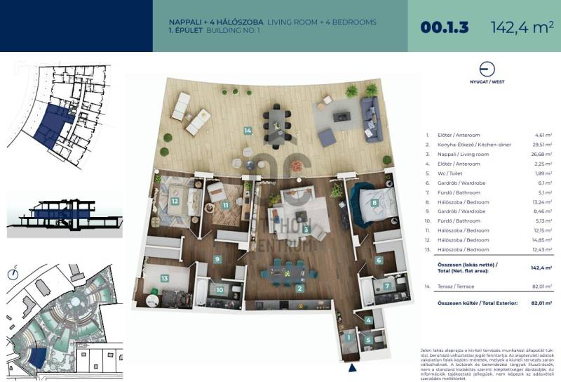 Grandiózus tér, pazar kényelem, természetközeli luxus!Most bevezető áron!Az ingatlanpiac legújabb gyöngyszeme várja Önt és családját! Ez a kiváló állapotú, új építésű lakás ideális választás mindenki számára, aki a modern életstílust és a prémium kivitelezést keresi. Az ingatlan alapterülete 142m2, amely négy tágas szobát kínál hatalmas nappalival, továbbá két tágas gardróbbal, így bőven elegendő helyet biztosít a családi élethez. A 82m2-es terasz tökéletes helyszín a pihenésre és a szabadban eltöltött időre. A lakás minimalista kialakítása és világos, barátságos terei azonnal magukkal ragadják az érdeklődőket. Az ingatlan okos otthon rendszerrel van felszerelve, amely lehetővé teszi a modern technológiák egyszerű és kényelmes használatát. Az elektromos (fan-coil) fűtés-hűtés gondoskodik a maximális komfortérzetről, míg az automata öntözőrendszer a kert szépségét megőrzi. A lakópark, amelyben az ingatlan található, exkluzív környezetet biztosít, és a csendes, rendezett kertje a nyugalom szigetét nyújtja a város forgatagában. A medence lehetőséget ad a családok számára a közös időtöltésre, míg a portaszolgálat biztonságot és kényelmet nyújt. Az ingatlan közlekedési csomópont közelében helyezkedik el, így a város tömegközlekedési lehetőségei könnyen elérhetők. A környék ellátottsága kiváló, hiszen a közelben találhatóak bolt, iskola, óvoda és orvosi rendelő, így minden szükséges szolgáltatás könnyedén elérhető. A biztonságos és csendes környezet ideális helyszínt biztosít a családok számára, akik a nyugodt életet keresik. Egy ilyen egyedi tervezésű ingatlan nem mindennapi lehetőség, ezért érdemes mielőbb megtekinteni! Kérjük, ne habozzon felkeresni bennünket, amennyiben bármilyen kérdése van a lakással, lakóparkkal, vagy a környékkel kapcsolatban.Projekt bemutatásaGrandiózus tér, pazar kényelem, természetközeli luxus!Fedezze fel a Balaton legújabb exkluzív lakóparkját, amely a fővároshoz legközelebb eső városban, Balatonakarattyán, pár percnyire a vízparttól, zöldövezetben, mégis kiváló közlekedési kapcsolatokkal épül.Az alábbi jellemzők nemcsak a környezetet védik, hanem hosszú távon költséghatékonyságot is jelentenek a lakók számára, így nem csak „zöld” megoldásokról, hanem tudatos, jövőbe mutató beruházásról beszélhetünk:- Energiahatékony épületekA lakóparkban jövőbe mutató, energiahatékony, magas minőségű lakóépületeket hoznak létre, a lakások távoli felügyeletét is biztosítva.- Zöldterületek maximalizálásaA páratlan nagyságú zárt kert kihasználásával vezérelv a zöldfelület maximalizálása, hogy a leendő lakók természetközeli élményben részesüljenek és nyáron a hűvösebb mikroklíma biztosított legyen.- Autóforgalom minimalizálásaAz épületek alatt találhatóak a parkolók, nullára csökkentve a parkban lévő autóforgalmat, hogy ne zavarják a lakók és vendégeik gyalogos közlekedését.- Digitális és intelligens megoldásokA lakások távoli felügyeletét is biztosítják, ami lehetővé teszi az energiahatékony működést és a környezetbarát üzemeltetést.- Fenntartható tervezés és kivitelezésA projekt során elhagyatott, lepusztult területeket újítanak meg, figyelembe véve a környezet adottságait és a település igényeit, így illeszkedve a település szerkezetébe anélkül, hogy túlterhelnék az infrastruktúrát.A projekt a Balaton egyik legkönnyebben megközelíthető városában valósul meg – ideális választás Budapest és Kelet-Magyarország felől is! Akár egy óra alatt elérhető autóval, így tökéletes állandó lakhatásra, nyaralásra vagy befektetésre egyaránt.Amennyiben szeretne részese lenni egy természetközeli egyben prémium életérzésnek, ne habozzon! Várjuk hívását a hét minden napján!