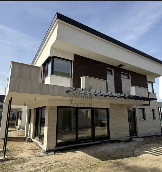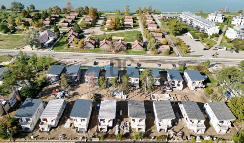 A 6861 m2-es, az aranyparti szabadstrandtól 100 méternyire elhelyezkedő telken 16 db lakóház kerül megépítésre. A telek összesen 8 részre került megosztásra, az így kapott 8 telken pedig egyenként 2 db lakóház épül, saját bejárattal, elkerített 437 m2-es saját kertrésszel. A házak külleme modern, egyedi építészeti megoldások jellemzik. A letiszult, mégis modern, elegáns otthonokat leendő tulajdonosaik kulcsrakészen vehetik majd birtokba a feltüntetett áron. A kétszintes 150 m2-es, 5 szobás, 3 fürdőszobás házak elosztása: Alsó szint: - egy légterű nappali és konyha - mellékhelyiség - garázs - fedett terasz található Emelet: - 4 szoba 2 fürdő + WC Közös használatú KÜLTÉRI MEDENCE (4 x 12 m), SZAUNA, JACUZZI szolgálja a tulajdonosok kényelmét. Az épületek a modern energetikai elvásároknak megfelelően kerülnek kivitelezésre, többek között 10 cm grafitos homlokzati hőszigeteléssel,GREE Hőszivattyús hútő-fűtő fan coil rendszerrel, mely helyiségenként külön vezérelhető (és H-tarifáról üzemeltethető), kiegészítésként elektromos padlófűtéssel és törölköző szárítóval, wifiről vezérelhető Ariston HMV tároló 200 literes elektromos bojlerrel, valamint 76 mm profilvastagságú aluminium külső nyílászárókkal, 3 rétegű üvegezéssel, elektromos alumínium redőnyökkel, szúnyoghálóval szerelve. Prémium minőségű Grohe és Geberit szaniterek és burkolatok kerülnek beépítésre a házakban, melyek napelem, riasztó, kaputelefon előkészítést is kapnak. A kivitelező több korábbi nagyobb referenciával is rendelkezik, ahol szintén a minőségre és a vásárlói elégedettségre törekedve adta át ingatlanait, problémamentesen, a beépítésre kerülő anyagok kiválasztásánál is törekszik a vásárlókkal való együttműködésre, ez a fajta bizalom a jelenlegi piacon elengedhetetlen. Amennyiben egy luxusotthont, vagy akár nyaralót keres Siófok Aranypartján, ezt ne hagyja ki, keressen bizalommal!