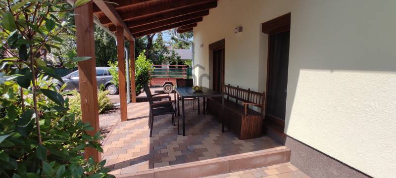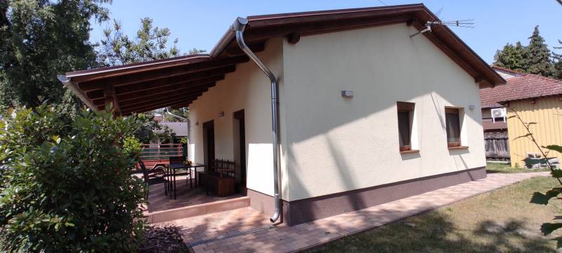 Kivételes lehetőség Fonyódligeten.Teljeskörűen felújított nyaraló csendes utcában, nyugodt környéken keresi új tulajdonosát.Az alapjaitól megújult ingatlan gondmentes nyaralást biztosít.Az épület a falakig vissza lett bontva, minden vezeték (víz, villany, csatorna) új!A téglafalak alulról műanyag lemezes vízszigetelést kaptak, 10 cm homlokzati és 20 cm tetőtéri szigeteléssel együtt.A tető új cserepeslemez borítást kapott.A nyílászárók hőszigetelt műanyagra cserélve, melyeket redőny véd. A konyhabútor, a fürdőszobai szaniterek az összes burkolat, a beltéri ajtók vadonat újak.Az épület fűtése-hűtése 2 db klímaberendezés feladata. Igény szerint a meglévő kéménybe akár kandalló is beköthető.A melegvizet villanybojler szolgáltatja vezérelt áramra kötve.A nagyméretű déli fekvésű fedett terasz ideális helyszíne a családi étkezéseknek, beszélgetéseknek.A gondozott, teljesen sík telken álló ház teljesen körbejárható.A telken van még egy hőszigetelt melléképület, melyben komplett vizesblokk is van, így akár egy különálló kis lakrész is kialakítható.Az ingatlan tökéletesen alkalmas akár állandó lakhatásra, akár kiadásra is.Fonyód a Balaton déli partjának kilátója, csodás panorámával az északi part hegyeire.Kiváló közlekedése, kikötője miatt rendkívül népszerű üdülőhely és turistaközpont.Előzetes egyeztetéssel rugalmasan megtekinthető.