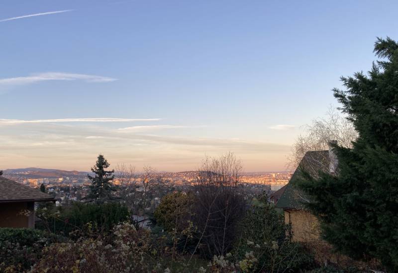 Budafokon, a XI. és a XXII. kerület határán, egy 236 nm lakóterületű, alápincézett, belső két szintes, remek adottságú, korának megfelelő állapotú családi ház eladó dupla garázzsal és intim kerttel.Környék:Budafok XI. kerülettel határos, lankás területén, csendes, kertvárosias, családi házakkal beépített részen járunk.Közlekedés:150B, 251, 251A, 251E buszok megállója fél percnyi sétával elérhető.Kert:Az utca felől a kíváncsi tekintetektől védett, dísznövényekkel, termő gyümölcsfákkal és virágokkal tarkított, gondozott terület övezi az építményt.A kert alatt zöld-tetős, 2 állásos garázs épültÉpület:Az 1993-ban épült, betonfödémes házat Vadász György, Kossuth díjas építész tervezte, egyedi belsőépítészeti megoldások jellemzik.Sajátos térformálási és burkolati megoldások, faberakások és az ablakok formai megoldása különleges hangulatot sugároznak. A nyílászárók fa, kétrétegű üvegezésű, hőszigetelt ablakok, redőnnyel.Földszintjén tágas nappali kandallóval, kilátással az óriási teraszra és a kertre, nagy hálószoba, konyha-étkező, kamra és tusoló-wc kapott helyet.Pinceszintjén, melyet a konyhából közelíthetünk meg, zuhanyzó, vízkezelő, finn szauna, kamra, kazán és mosókonyha van.Az emeletről a Szécsényi-hegytől a Citadelláig nyíló panorámát csodálhatjuk. Itt egy előtérből 3 nagy belmagasságú, külön bejáratú szoba és egy fürdőszoba közelíthető meg a galériáról.