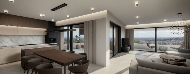 Hiánycikk a piacon! Központi, mégis csendes helyen, nagy erkéllyel, városi panorámával. Kell ennél több? Üdv itthon!RÖVID ÖSSZEFOGLALÓBudapest II. kerületének Rézmál részén eladó új építésű társasház első emeleti panorámás 141 m² -es nappali + 3 hálószobás két fürdőszobás négy erkélyes lakás opcionálisan megvásárolható garázsokkal, tárolóval.LOKÁCIÓA II. kerület egyik legkedveltebb részén, a Rózsadombon, a csendes és elegáns Lévay utcában épül a legújabb prémium társasház. A környék kimagasló életminőséget kínál: zöldövezeti nyugalom, kiváló levegőminőség és a városi kényelem tökéletes egyensúlya jellemzi. Mindössze néhány percnyire találhatók bevásárlási lehetőségek, kávézók és éttermek, valamint presztízsértékű iskolák és óvodák. A Mammut Bevásárlóközpont, a Millenáris Park és a Mechwart liget könnyen elérhetők, a Margit körút közelsége pedig kiváló közlekedési kapcsolatokat biztosít.LÉVAY 8Az ötlakásos társasház építése 2026 harmadik negyedévében fejeződik be, kimagasló minőségű anyagokkal és modern műszaki megoldásokkal. A projekt célja, hogy exkluzív, tágas otthonokat kínáljon azok számára, akik a természet közelségét és a nagyvonalú belső tereket egyaránt értékelik.LAKÁSAz alaprajz tökéletes egy család számára: tágas, világos, jól kihasználható terekkel rendelkezik, biztosítja a közös élményeket és a privát elvonulást is, miközben a kültéri kapcsolatok erősítik az otthon élhetőségét.✅ Teraszkapcsolat minden szobából – A közvetlen kültéri kapcsolat lehetőséget ad a szabad levegőn való pihenésre, akár egy reggeli kávézásra a hálószobából kilépve, akár közös családi étkezésekre a nappali előtti teraszon. Ez különösen előnyös gyerekekkel, hiszen biztonságos és könnyen hozzáférhető szabadtéri tér áll rendelkezésre.✅ Tágas közösségi tér – A nappali, étkező és konyha összefonódó kialakítása lehetővé teszi, hogy a család tagjai együtt töltsék az időt anélkül, hogy a terek túlzsúfolttá válnának. A térben eltolt konyha előnye, hogy megőrzi a kapcsolatot a nappalival, de a főzés mégsem válik zavaróvá.✅ Privát szférát biztosító hálószobák – A hálószobák szeparáltan helyezkednek el, így minden családtag számára biztosított a nyugodt pihenés. A szülői háló és a gyerekszobák egymáshoz közeli, de mégis megfelelően elkülönített elhelyezkedése ideális egy család számára.✅ Kényelmes fürdőszobai elosztás – Több fürdőszoba áll rendelkezésre, ami csökkenti a reggeli készülődés miatti torlódásokat, és lehetővé teszi, hogy a család minden tagja kényelmesen használja azokat.✅ Praktikus közlekedők és tárolók – A tárolóhelyek elhelyezése hatékony, segítve a rendezettség fenntartását. Az előszoba és egyéb tárolók megfelelő méretűek, így a kabátok, cipők, táskák is könnyen rendszerezhetők.Műszaki megoldások és extrákA lakás hőszivattyús hűtés-fűtés és hővisszanyerős szellőztető rendszerrel készül, amely energiatakarékos és környezetbarát megoldást biztosít. Loxone okos otthon rendszer kerül beépítésre, fokozva a kényelmet. A nagy üvegfelületek maximális természetes fényt engednek be, míg a prémium burkolatok és belsőépítészeti részletek a legmagasabb igényeket is kielégítik. A lakáshoz két garázs (30 000 000 Ft/2db) és egy tároló (12 000 000 Ft) is tartozik mely igény szerint megvásárolható.ÁtadásA projekt várható átadása 2026 harmadik negyedévében történik.Ez az otthon ideális választás azoknak, akik egy tágas, modern és exkluzív lakásban szeretnének élni Budapest egyik legnívósabb városrészében.---------------------------------------------Díjmentes, bankfüggetlen hiteltanácsadással támogatjuk vevő ügyfeleinket a számukra legelőnyösebb finanszírozási döntések meghozatalában. Opcionálisan igénybe vehető kiegészítő szolgáltatásainkkal – mint ügyvédi közreműködés, energetikai tanúsítvány vagy villamos biztonsági felülvizsgálat – teljes körű szakmai támogatást nyújtunk az adásvétel folyamatának minden egyes lépésénél.----------------------------------------------A hirdetésben szereplő információk tájékoztató jellegűek. A tévedés és az árváltoztatás jogát fenntartjuk. Az esetleges elírásokért és technikai hibákért felelősséget nem vállalunk.