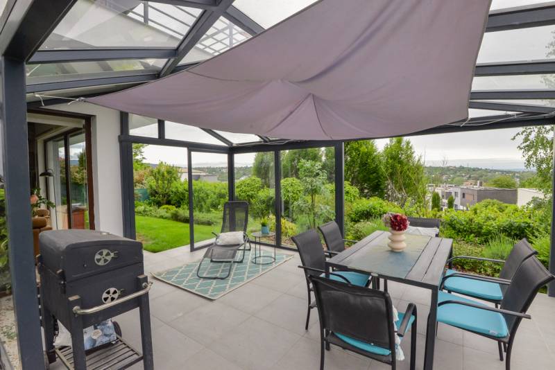 Eladásra kínálok egy 166 m²-es, 2 szintes, 5 szobás, örökpanorámás ikerházat Budapest III. kerületének exkluzív, hegyvidéki részén, a Harsánylejtő!Az ingatlanhoz tartozik egy 26 m²-es panorámás erkély, egy 20 m²-es fedett, részben üvegezett terasz, valamint egy közel 400m²-es, szépen gondozott, automata öntözőrendszerrel ellátott, kizárólagos használatú kert.Az ikerház másik felével csak a garázsok érintkeznek, így a lakótér teljesen elszeparált, a ház nyugodt, csendes fekvésű, nem utcafronti. A földszinten tágas, világos nappali, konyha-étkező, egy szoba, fürdőszoba, külön WC, kamra, valamint a kertkapcsolatos, fedett terasz található. Az emeleten négy hálószoba kapott helyet, emellett itt is van fürdőszoba (infraszaunával), külön WC és gardróbszoba. A felső szinten az erkélyről gyönyörű kilátás nyílik a Pilisre és az Aranyhegyre.A közelmúltban egy 6 kW-os, akkumulátoros napelemes rendszer került telepítésre, amely fedezi egy átlagos háztartás teljes villamosenergia-igényét. Ennek köszönhetően a gázcirkós fűtés kiváltható a hűtésre-fűtésre is alkalmas klímaberendezésekkel, így a fenntartási költségek jelentősen csökkenthetők.A környék rendezett, csendes, kiválóan alkalmas természetkedvelőknek és kisgyermekes családoknak. Gyalogosan 10 perc alatt elérhetők a Hármashatárhegy és a Pilis túraútvonalai, így az aktív kikapcsolódás, kutyasétáltatás is könnyedén megoldható. A 260-as busz megállója 300 méterre található, így a III. kerület központja és a belváros is könnyen elérhető tömegközlekedéssel.Ez az otthon minden szempontból a kényelmet és a luxust kínálja!Elhelyezkedés:A környék csendes és rendezett, tökéletes választás családok számára. A közeli buszmegállók és a HÉV könnyen elérhető, így a belváros gyorsan megközelíthető. A környéken boltok, iskolák és orvosi rendelők is megtalálhatóak. A gyönyörű zöld területek és kirándulási lehetőségek pedig még vonzóbbá teszik ezt az otthontTovábbi részletekért hívjon mielőbb!Egyedi igényekre szabott lakáshitelekkel állunk rendelkezésére. Bankfüggetlen Hitel Centrumunk az országban elérhető összes bank és hitelintézet ajánlatát versenyezteti az Ön számára díjmentesen.Munkatársaink nagy szakmai tapasztalattal várják Önt az előre egyeztetett időpontban akár a normál munkaidő után is.