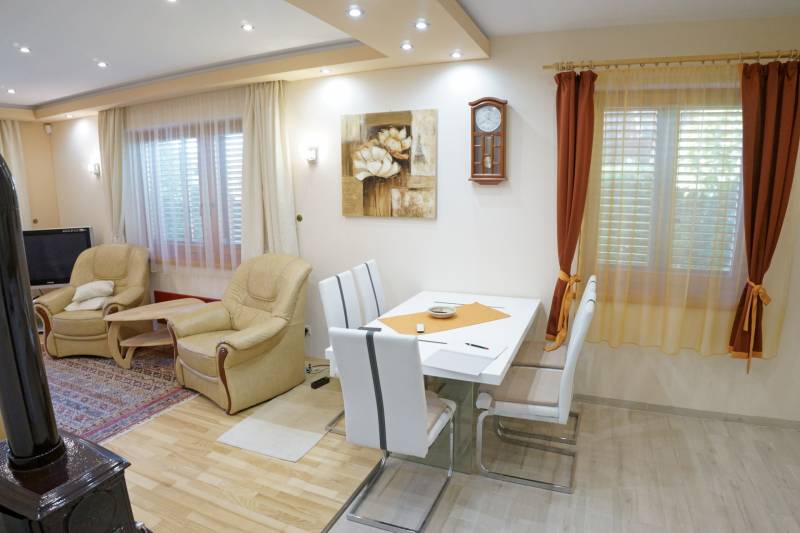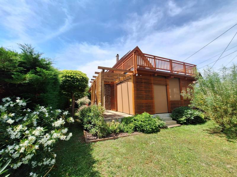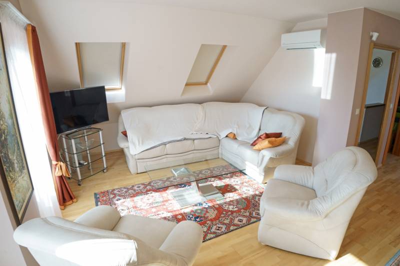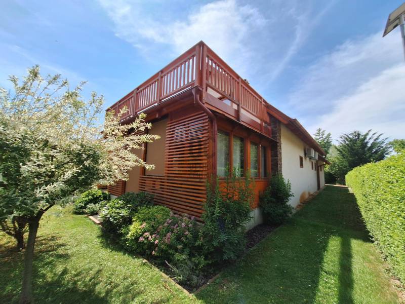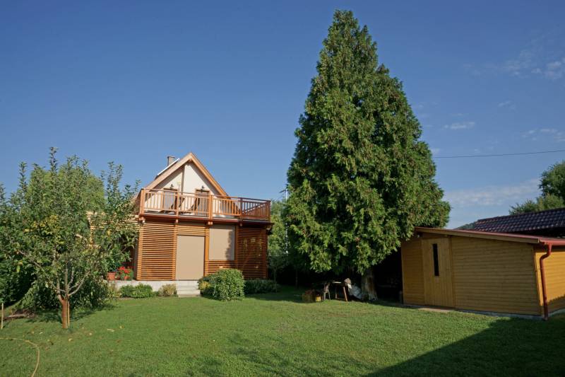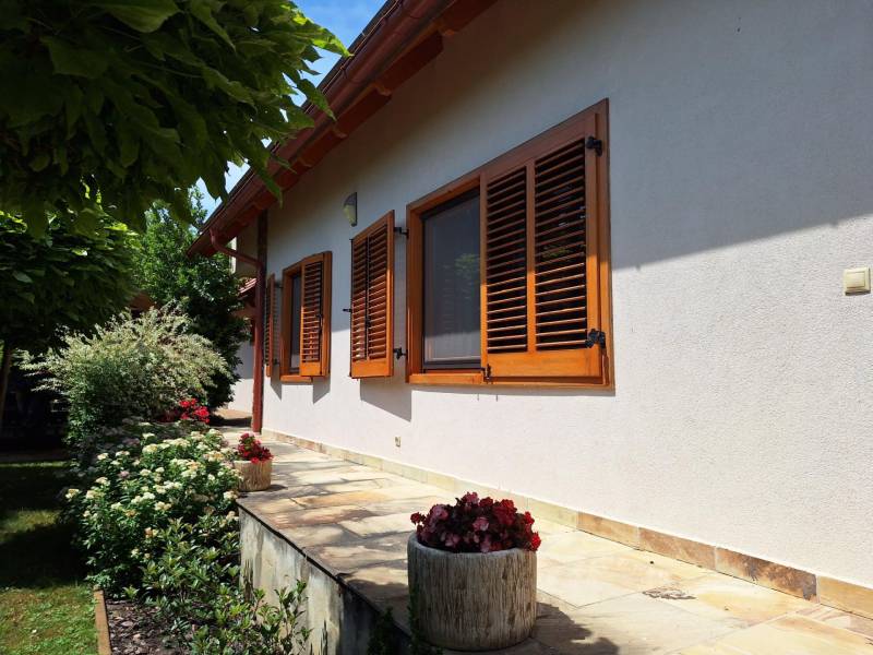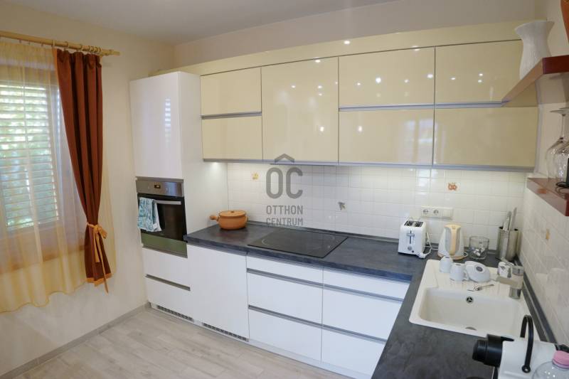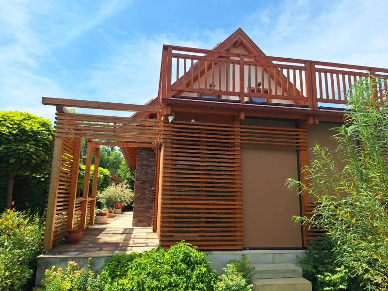 Badacsonyörsön, a Balaton partjától mindössze 100 méterre ajánlom figyelmébe ezt a kiváló adottságokkal rendelkező, prémium minőségű anyagokból épített két szintes, modern családi házat gyönyörű kerttel és saját balatoni stéggel.A földszint a bejárati ajtón, a garázson keresztül, de akár a terasz felől is megközelíthető, ezen a szinten található a konyha-étkező, nappali, egy szoba, fürdőszoba, és a vendég mosdó is, az emeleten két szoba, és egy fürdőszoba került kialakításra.Az emeleti rész igény szerint még egy szobával bővíthető a garázs feletti részen. Ezen a szinten is található terasz, melyről gyönyörű balatoni panoráma tárul elénk!Az ingatlanhoz kapcsolódó további adatok:-38-as Porotherm téglából épült 2016-ban- 15 cm-es szigetelés a külső falakon- 3 rétegű hőszigetelt üvegek, egyedileg gyártott spalettákkal, minden ablakon szúnyoghálóval- a terasz elektromosan vezérelhető szúnyoghálóval ellátott, üvegfallal téliesített- hűtő-fűtő klíma- 9.6 kwatt fafűtéses norvég típusú kandalló- 3 fázisú ipari áram- napelemek-automata öntözőrendszer- fúrt kút, csöpögtető/locsoló rendszer kialakítva- komplett kamera és riasztórendszer- visszanézhető jelzőrendszer mobiltelefonraNyaralónak, de állandó lakhatásra is tökéletesen megalkotott és átgondolt otthon! Ha szeretné itt élni a mindennapokat, vagy csak kiszakadni a hétköznapokból és egy második otthonban eltölteni a szabad napokat, ez az ingatlan a tökéletes választás!Az ingatlanhoz tartozó saját stég pár perces sétára található, így egy hajó (opcionálisan a házhoz és stéghez vásárolható elektromos hajó), de akár csónak elhelyezése és kikötése sem okozhat problémát az új tulajdonos részére. A stég - méretéből adódóan - alkalmas napozóágyak elhelyezésére is, így remek kikapcsolódást nyújthat a család részére karnyújtásnyira a háztól!Amennyiben kérdése merülne fel az ingatlannal kapcsolatban vagy szeretné azt megtekinteni, kérem keressen a megadott elérhetőségek egyikén!