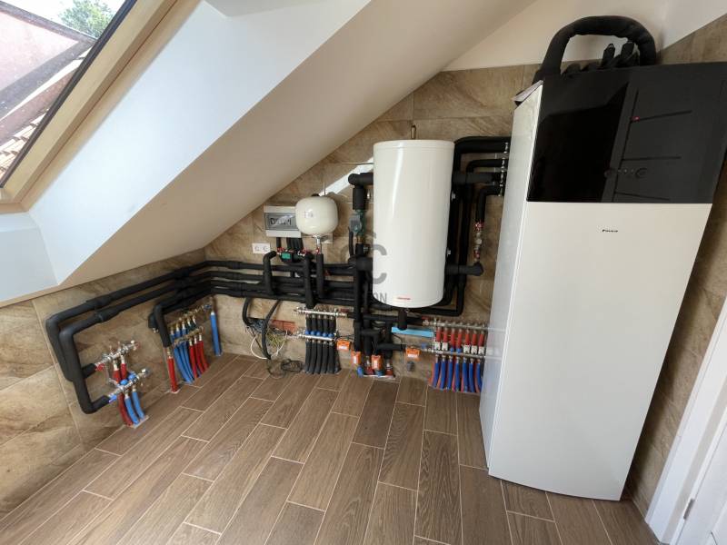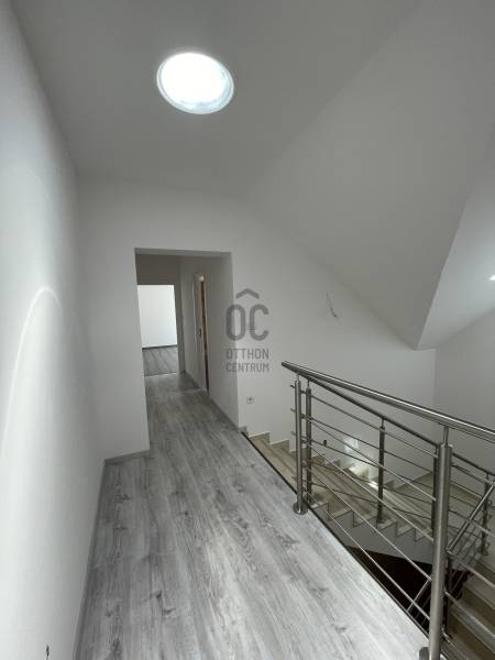 Debrecen frekventált övezetében, Nagyerdei környezetben várja új tulajdonosát ez a 2024-es, új építésű, nettó 187 m2-es, hatalmas, nagy belmagassággal rendelkező nappali+ 2 hálószobás magas műszaki tartalommal megépített, energia takarékos lakóingatlan, mely használatbavételi engedéllyel rendelkezik.Az ingatlan zártsorú beépítéssel, 349 m2-es telken épült, A + energia besorolású, földszint + emelet kivitelű.Minimális fenntartási költsége többek között a H tarifára csatlakoztatott Daikin hőszivattyúnak köszönhető, mely biztosítja az ingatlan hűtését és fűtését, padló, fal, mennyezet megoldással, továbbá szigetelt falainak és felső kategóriás külső nyílászáróinak, mely háromrétegű edzett üvegezéssel, rovarhálóval, részben távirányítható rolóval ellátott. Az ingatlan 10 kW-os napelem rendszer fogadására előkészített.Földszint helyiségei: nagyméretű nappali- étkező- konyha+ kamra, melynél a nappali igény szerint galériázható a nagy belmagasságnak köszönhetően, a nappaliból megközelíthető a polikarbonáttal fedett terasz, továbbá épített zuhanyzós fürdőszoba mellékhelyiséggel, MOFÉM csaptelepekkel.Emelet helyiségei: 2 hálószoba+ 1 gardrób, sarokkádas fürdőszoba WC- vel, gépészetnek kialakított helyiség mosókonyhával.Az ingatlanhoz tartozik egy 20 m2- es gépkocsibeálló HÖRMANN távirányítható szekcionált kapuval ellátva, elektromos autó töltésére alkalmas előkészítéssel, az udvaron több autó számára parkolási lehetőséggel, valamint az udvarról megközelíthető, pince szinten lévő tároló is.Azonnal birtokba vehető!További kérdéssel kapcsolatban keressen bizalommal!Ez az ingatlan a “Hűségcsomag” megbízási portfólióhoz tartozik. Részletek az Otthon Centrum weboldalán.Ez az ingatlan a \"Hűség csomag\" megbízási portfólióhoz tartozik. Részletek az Otthon Centrum weboldalán.