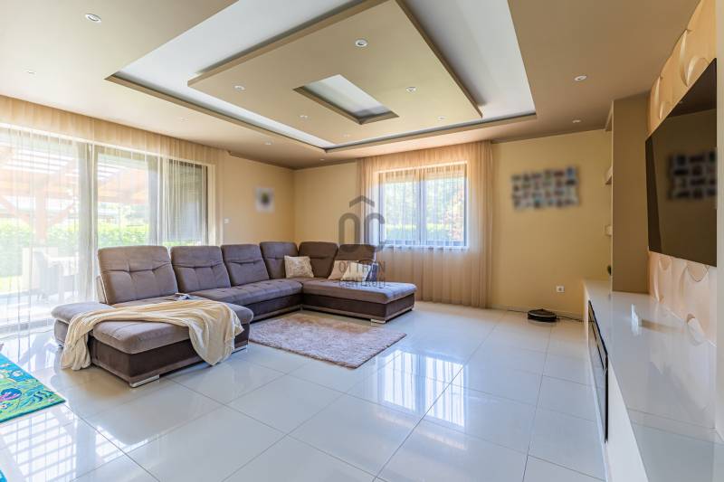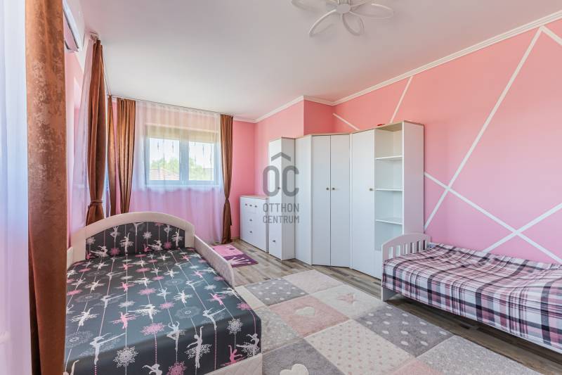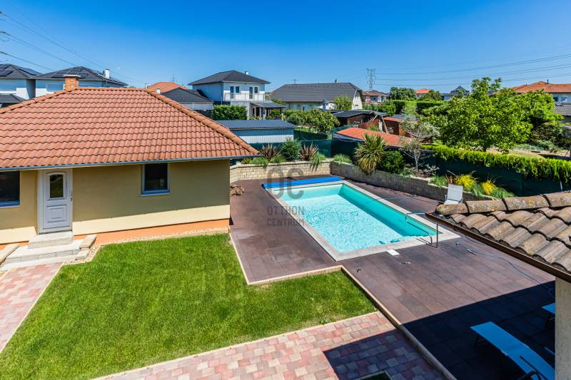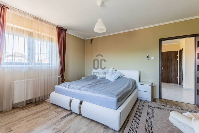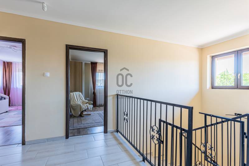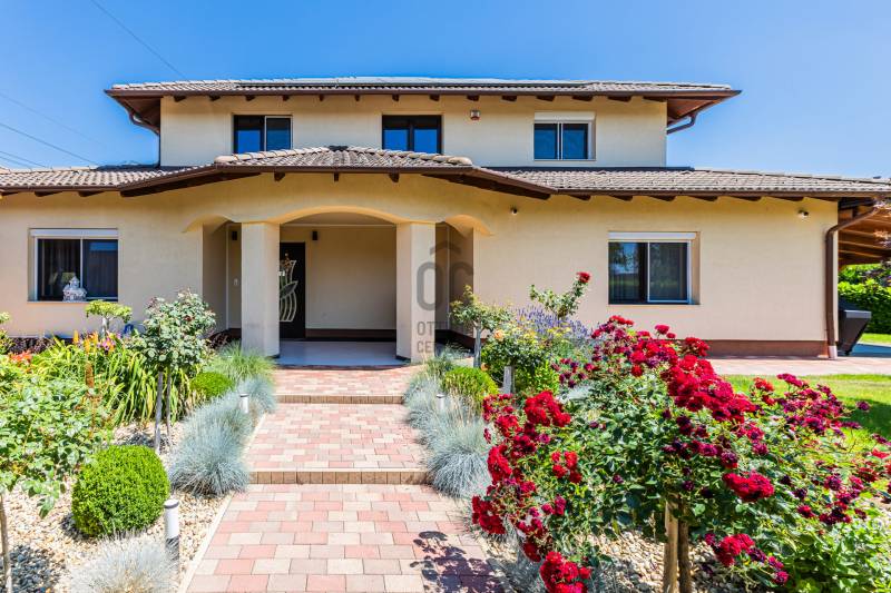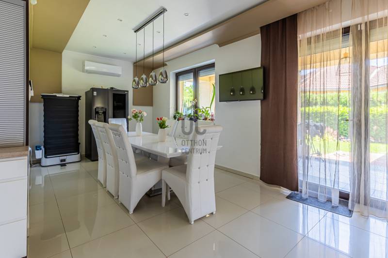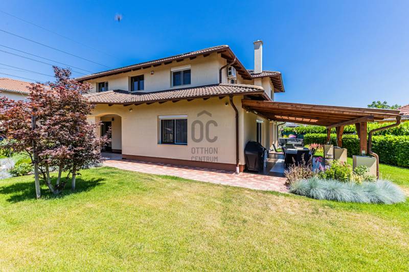 EXKLUZÍV AJÁNLAT!DUNAKESZI-RÉVDŰLŐ egyik CSÖNDES UTCÁJÁBAN található ez a LUXUS MINŐSÉGŰ CSALÁDI HÁZ, igényes és elegáns környezetben.A terület válogatott, barátságos, környezetükre IGÉNYES lakóközösséggel rendelkezik.A Dunától 500 méterre (5 perc sétára) található, így rendkívül TISZTA A LEVEGŐ, tökéletes, ha szeret biciklizni vagy sétálni a Duna-parton, ahol több kávézó, fagyizó, étterem, játszótér is található és egész nyáron fiataloktól, gyermekektől nyüzsög.A 2012-ben készült és 2023-ban TELJESEN FELÚJÍTOTT 2 SZINTES ingatlant kimondottan TÁGAS TEREK jellemzik, mégis OTTHONOS, HARMONIKUS. Magában foglalja a visszafogott luxus és a finom ELEGANCIA vágyott kettősét.KIVÁLÓ ÁLLAPOTÚ és tulajdonosai folyamatosan NÖVELIK AZ ÉRTÉKÉT.A BEÉPÍTETT konyhaBÚTOR EGYEDILEG lett tervezve, és BÚTORASZTALOS által magas minőségben kivitelezve, a konyhagépek még GARANCIÁLISAK.SZINTEK:FELSŐ SZINT: közlekedő, 3 hálószoba, kádas fürdő+illemhely, gardrób, erkély.FÖLDSZINT: előszoba, hálószoba, zuhanyzós fürdő+illemhely, mosókonyha, konyha, étkező, nappali, 3 terasz, MEDENCE, JAKUZZI, SZAUNA.ÉS A BÓNUSZ: a kert hátsó részében egy 40 nm-es, KÜLÖNÁLLÓ HÁZIKÓ található, amely tökéletes a szárnyait bontogató felnövekvő gyermekünknek, vagy a szüleinknek, akiket a közelünkben akarunk tudni, vagyis KÉT GENERÁCIÓNAK MEGFELELŐ.Ez az épület, VENDÉGHÁZ, szintén kiváló állapotú, TELJES KÖZMŰVEL, minőségi burkolatokkal, fürdővel, PADLÓFŰTÉSSEL. Jelenleg WELLNESS részlegként, pihenőhelyiségként funkcionál a 4 SZEMÉLYES SZAUNÁVAL, de akár műhelyként, tárolóként, irodaként is jól használható.Az ingatlan további különlegessége az EXKLUZÍV KIALAKÍTÁSÚ és méretű, KERTKAPCSOLATOS NAPPALI és ÉTKEZŐ, amelyet a két hatalmas ajtón át EGYBE NYITHATUNK az 50 nm-es TERASSZAL és a csodálatosan ápolt, HANGULATOS KERTTEL.A csodás nappalin kívül 4 HÁLÓSZOBA lett kialakítva, mindegyik nagy ablakos, VILÁGOS és KIMONDOTTAN TÁGAS.Az ingatlanban 3 FÜRDŐSZOBA VAN, ami nagyban megkönnyíti a reggeli készülődést.A 950 nm-es kert nagy része a HÁZ MÖGÖTT helyezkedik el, így a fő TERASZOK a GRILL SAROKKAL és KERTI ÉTKEZŐKKEL, valamint a JAKUZZI és MEDENCE a kíváncsi szemek elől teljesen TAKARVA VAN.Az épület fűtését JÓ MINŐSÉGŰ gázcirkó, PADLÓFŰTÉS és NAPELEM biztosítja, ezáltal a ház éves energiaigénye rendkívül alacsony!TOVÁBBI EXTRÁK:-Hőszivattyúval fűtött úszómedence,-Jakuzzi,-4 személyes finn- és infraszauna,-5 kW-os hibrid napelemes rendszer akkuparkkal,-Padlófűtés,-3 db fedett terasz és erkély,-Szúnyogháló,-Elektromos redőny,-Riasztórendszer,-Kamerarendszer,-Videókaputelefon,-Gondozásmentes kerítés-Fúrt kút,-Automata öntözőrendszer, kapun kívül is,-11kW-os elektromos autótöltő,-3 autónak fedett, viacolorozott beálló,-Garanciális háztartási- és konyhagépek,-Inverteres klímák minden szobában,-Látványkandalló fűtésfunkcióval,-Bőrhatású dekorfal,-Kandalló előkészítés,-Energiatakarékos ledvilágítás.ELHELYEZKEDÉS:Infrastrukturálisan megfelelő: busszal (buszmegálló 5 perc sétára) és autóval is jól megközelíthető, a közelben van orvosi rendelő, gyógyszertár, bank, közért, dm, posta, hentes, park, cukrászda, iskola, stb.Ha NÍVÓS, ELEGÁNS, EGYEDI OTTHONT keres, mind az ingatlan, mind a lokáció kitűnő választás.Keressen bizalommal a hét bármely napján!Ez az ingatlan a \"Felező csomag\" megbízási portfólióhoz tartozik. Részletek az Otthon Centrum weboldalán.