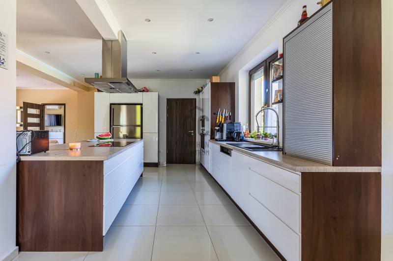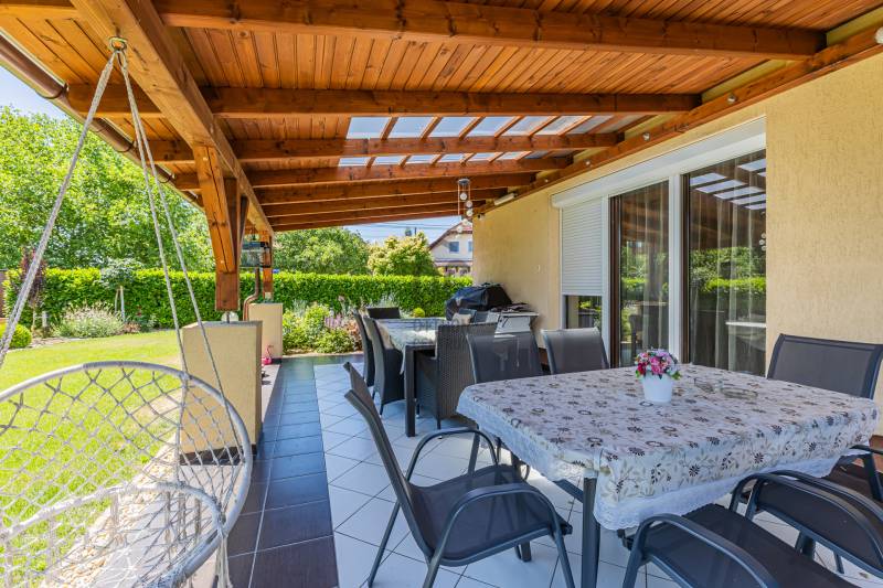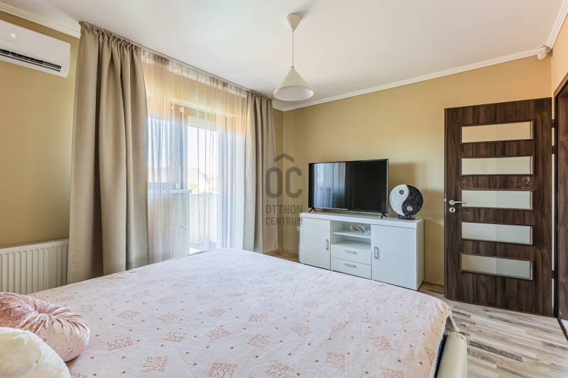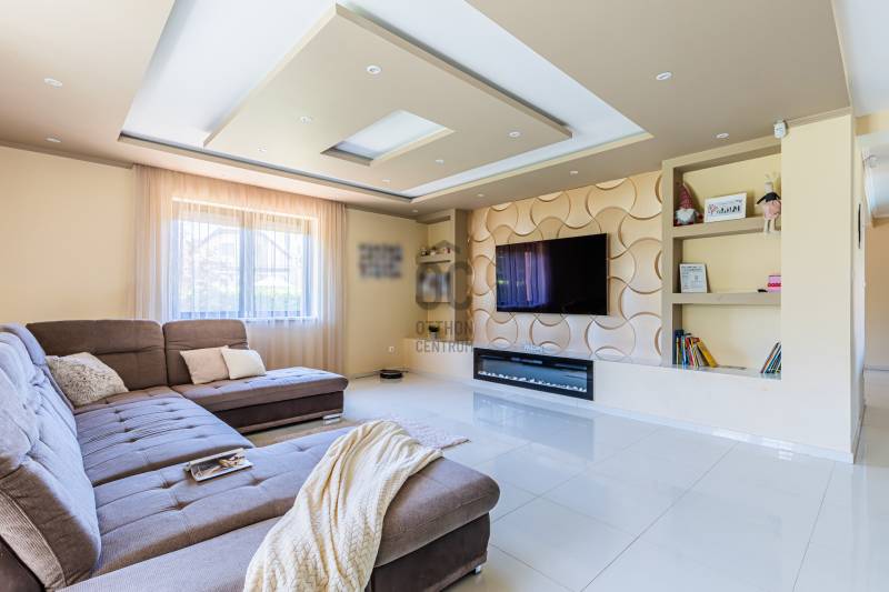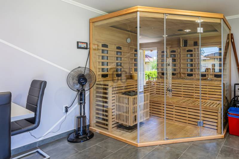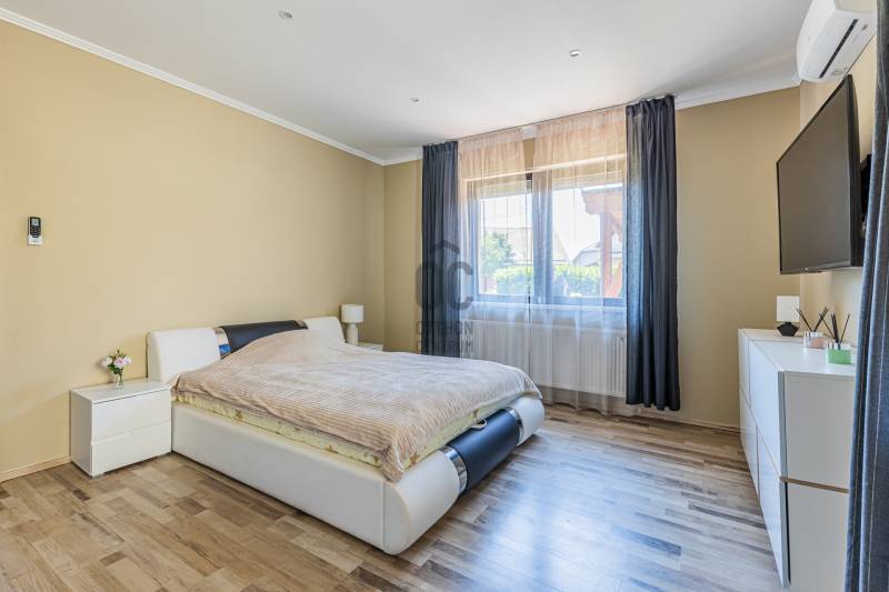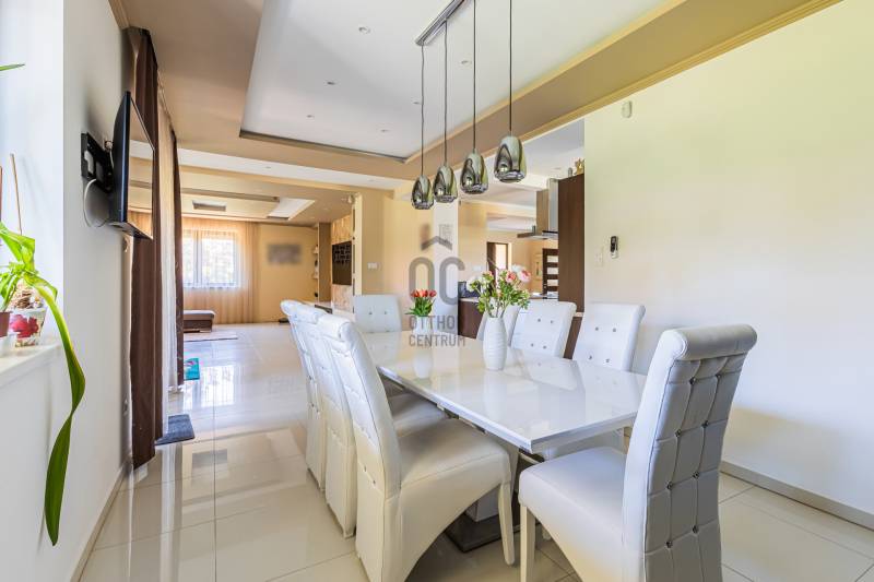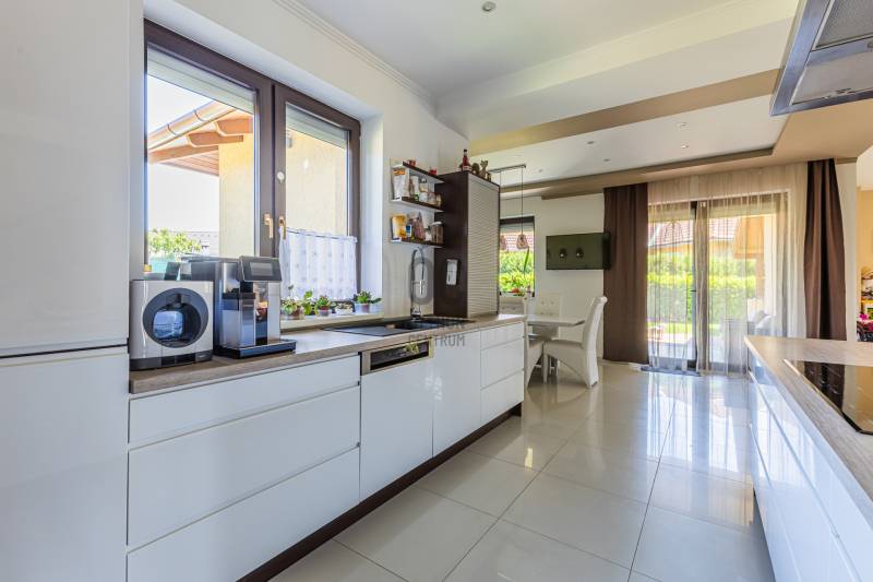 EXKLUZÍV AJÁNLAT!DUNAKESZI-RÉVDŰLŐ egyik CSÖNDES UTCÁJÁBAN található ez a LUXUS MINŐSÉGŰ CSALÁDI HÁZ, igényes és elegáns környezetben.A terület válogatott, barátságos, környezetükre IGÉNYES lakóközösséggel rendelkezik.A Dunától 500 méterre (5 perc sétára) található, így rendkívül TISZTA A LEVEGŐ, tökéletes, ha szeret biciklizni vagy sétálni a Duna-parton, ahol több kávézó, fagyizó, étterem, játszótér is található és egész nyáron fiataloktól, gyermekektől nyüzsög.A 2012-ben készült és 2023-ban TELJESEN FELÚJÍTOTT 2 SZINTES ingatlant kimondottan TÁGAS TEREK jellemzik, mégis OTTHONOS, HARMONIKUS. Magában foglalja a visszafogott luxus és a finom ELEGANCIA vágyott kettősét.KIVÁLÓ ÁLLAPOTÚ és tulajdonosai folyamatosan NÖVELIK AZ ÉRTÉKÉT.A BEÉPÍTETT konyhaBÚTOR EGYEDILEG lett tervezve, és BÚTORASZTALOS által magas minőségben kivitelezve, a konyhagépek még GARANCIÁLISAK.SZINTEK:FELSŐ SZINT: közlekedő, 3 hálószoba, kádas fürdő+illemhely, gardrób, erkély.FÖLDSZINT: előszoba, hálószoba, zuhanyzós fürdő+illemhely, mosókonyha, konyha, étkező, nappali, 3 terasz, MEDENCE, JAKUZZI, SZAUNA.ÉS A BÓNUSZ: a kert hátsó részében egy 40 nm-es, KÜLÖNÁLLÓ HÁZIKÓ található, amely tökéletes a szárnyait bontogató felnövekvő gyermekünknek, vagy a szüleinknek, akiket a közelünkben akarunk tudni, vagyis KÉT GENERÁCIÓNAK MEGFELELŐ.Ez az épület, VENDÉGHÁZ, szintén kiváló állapotú, TELJES KÖZMŰVEL, minőségi burkolatokkal, fürdővel, PADLÓFŰTÉSSEL. Jelenleg WELLNESS részlegként, pihenőhelyiségként funkcionál a 4 SZEMÉLYES SZAUNÁVAL, de akár műhelyként, tárolóként, irodaként is jól használható.Az ingatlan további különlegessége az EXKLUZÍV KIALAKÍTÁSÚ és méretű, KERTKAPCSOLATOS NAPPALI és ÉTKEZŐ, amelyet a két hatalmas ajtón át EGYBE NYITHATUNK az 50 nm-es TERASSZAL és a csodálatosan ápolt, HANGULATOS KERTTEL.A csodás nappalin kívül 4 HÁLÓSZOBA lett kialakítva, mindegyik nagy ablakos, VILÁGOS és KIMONDOTTAN TÁGAS.Az ingatlanban 3 FÜRDŐSZOBA VAN, ami nagyban megkönnyíti a reggeli készülődést.A 950 nm-es kert nagy része a HÁZ MÖGÖTT helyezkedik el, így a fő TERASZOK a GRILL SAROKKAL és KERTI ÉTKEZŐKKEL, valamint a JAKUZZI és MEDENCE a kíváncsi szemek elől teljesen TAKARVA VAN.Az épület fűtését JÓ MINŐSÉGŰ gázcirkó, PADLÓFŰTÉS és NAPELEM biztosítja, ezáltal a ház éves energiaigénye rendkívül alacsony!TOVÁBBI EXTRÁK:-Hőszivattyúval fűtött úszómedence,-Jakuzzi,-4 személyes finn- és infraszauna,-5 kW-os hibrid napelemes rendszer akkuparkkal,-Padlófűtés,-3 db fedett terasz és erkély,-Szúnyogháló,-Elektromos redőny,-Riasztórendszer,-Kamerarendszer,-Videókaputelefon,-Gondozásmentes kerítés-Fúrt kút,-Automata öntözőrendszer, kapun kívül is,-11kW-os elektromos autótöltő,-3 autónak fedett, viacolorozott beálló,-Garanciális háztartási- és konyhagépek,-Inverteres klímák minden szobában,-Látványkandalló fűtésfunkcióval,-Bőrhatású dekorfal,-Kandalló előkészítés,-Energiatakarékos ledvilágítás.ELHELYEZKEDÉS:Infrastrukturálisan megfelelő: busszal (buszmegálló 5 perc sétára) és autóval is jól megközelíthető, a közelben van orvosi rendelő, gyógyszertár, bank, közért, dm, posta, hentes, park, cukrászda, iskola, stb.Ha NÍVÓS, ELEGÁNS, EGYEDI OTTHONT keres, mind az ingatlan, mind a lokáció kitűnő választás.Keressen bizalommal a hét bármely napján!Ez az ingatlan a \"Felező csomag\" megbízási portfólióhoz tartozik. Részletek az Otthon Centrum weboldalán.
