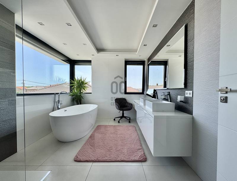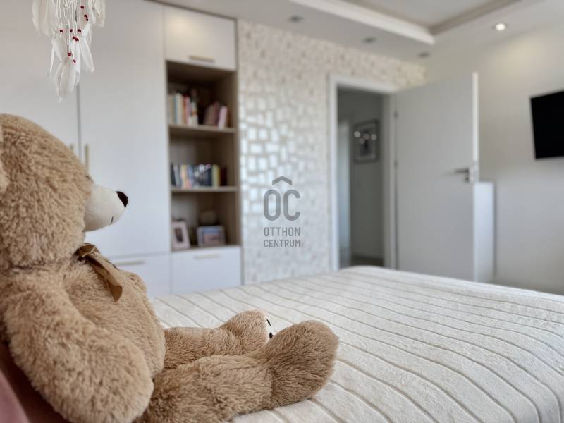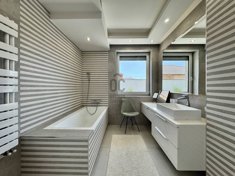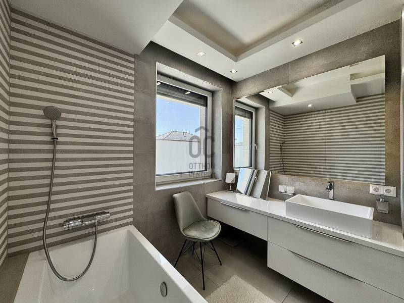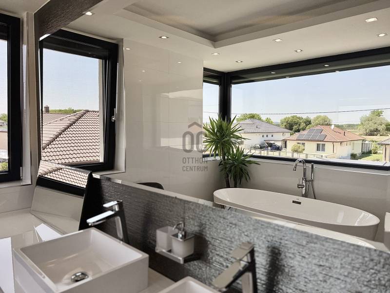 Kategóriájában egyedül álló, hatékony, korszerű és problémamentes! Minden paraméterében egyedi tervezésű, átgondolt, minőségi kivitelezés eredménye.Ez az ingatlan pedig, * Koroncón, idilli, új építésű, egzisztenciálisan is kielégítő környezetben* Átmenő forgalomtól garantáltan mentes, magán úton, egy 1011nm-es ideális méretű telken található* 2023-ban épült, nettó 297 nm-es lakótérrel* Nappali + 4 hálószobával rendelkező, szintenként fürdő wc-vel, gardróbbal, tárolókkal és egy 38nm nagyságú fűtött garázzsal ellátottA ház varázsa, igényessége, egyértelműen a felhasznált anyagminőségben és műszaki tartalomban nyilvánul meg : * 30cm-es Porotherm Klíma tégla* 20cm-es homlokzat hőszigetelés* monolit vasbeton födémek, kavicsolt lapos tetővel, 35 cm Dryvit szigeteléssel* Egyedi gyártású nyílászárók, alumínium bejárati ajtó, Kömmerling 88mm Plusz, 6 légkamrás, meleg peremes ablakok* Alumínium zsaluziák és redőnyök integrált szúnyoghálókkal távirányítással, alumínium toló-emelő terasz ajtók* 7 rétegben festett, hangszigetelt beltéri tömörfa ajtók* 25cm-es öntött, vasbeton lépcső, 4cm vastagságú tömör fa lapozással, edzett biztonsági üvegkorláttal * Hörmann Silent szekcionált garázskapuAz extra tartalom, jelen esetben pedig alap felszereltség ! * okos ház előkészítés* napelem előkészítés* három fázis, 3x20Ah kapacitással* minden helyiségében UTP, Coax kábelezés* 5.1 rendszer falba süllyesztve* A házhoz érkező vezetékek pedig, mind földkábelek/ Termosztatikus Ibox falba integrált csaptelepek/ Szabadon álló kád, álló csapteleppel/ Melegvíztároló és keringető rendszer, időzítővel/ Wellis Jakuzzi, beépített hangrendszerrel, telefonról működtethető vezérléssel/ Szintenként, Gree Split klímaberendezés 5,4Kw teljesítménnyelA telek ideális nagyságú, gondozható, saroktelek parcella. Az udvaron első osztályú minőségben előkészített, 100%-ban vízzáró, csempézhető, gátbeton vasalt medence, 5*8m-es belső mérettel, feszített víztükörre kialakítva, előkészítve a fűtésre és belső világításra. A kertben automata öntöző rendszer, rejtett csepegtetéssel, gyepszőnyeg alatt vakondháló, az impregnált 60mm-es nagy teherbírású térkövezés alatt pedig 25 cm-es vasbeton. Az egyelőre befejezésre váró részék (mely magában foglalja a medence, hátsó kert és a melléképületet) végső formában történő, kulcsrakész átadását, igény esetén biztosítja az ingatlan tulajdonosa, mint építőipari vállalkozó. A birtokba adás rugalmas, az ingatlan tehermentes, a jogi háttér tisztázott. Az ingatlan pedig a Győr környéki prémium kínálat egyik kiemelkedő darabja. Vásárolj magadnak álmot! Spórold meg az idődet és az energiádat, ez a családi ház, garantáltan kielégíti minden igényedet. Keress bizalommal a részletekkel kapcsolatban, mivel leendő ingatlanos kulcsai, nálam vannak!Hitelre van szüksége? Tudunk segíteni!Az Otthon Centrum az ország egyik legnagyobb és legmegbízhatóbb hitelközvetítőjeként, teljes körű és díjmentes hitelügyintézéssel, biztosításkötéssel áll rendelkezésére!Kérje személyre szabott ajánlatunkat Kollégáinktól!Ez az ingatlan a \"Felező csomag\" megbízási portfólióhoz tartozik. Részletek az Otthon Centrum weboldalán.