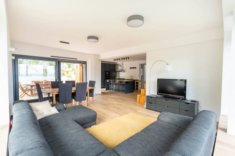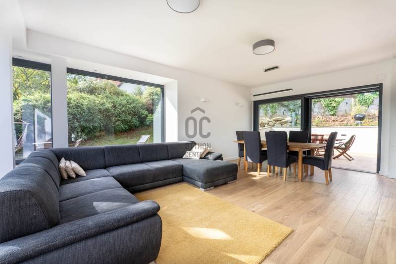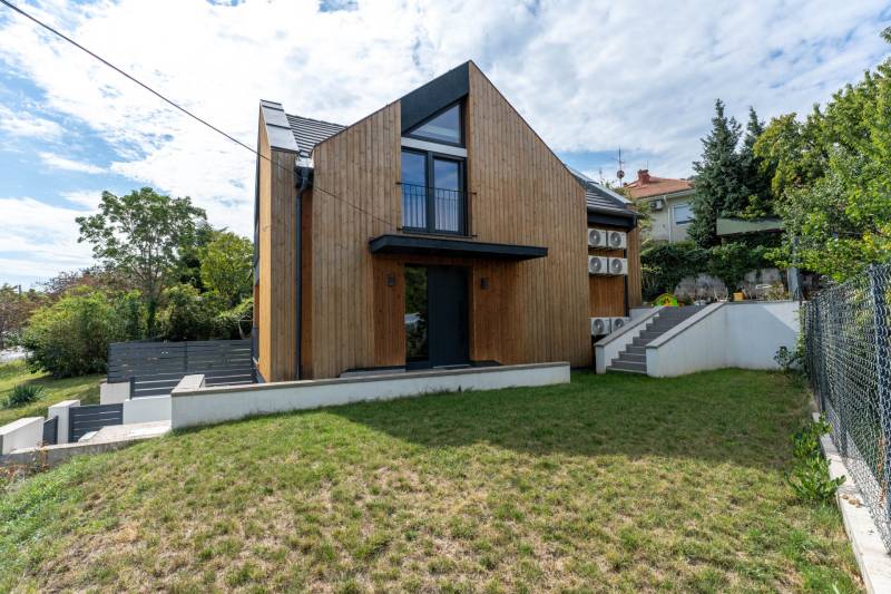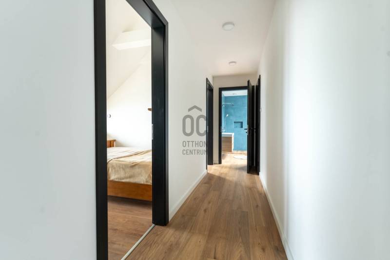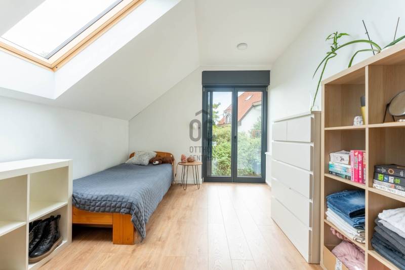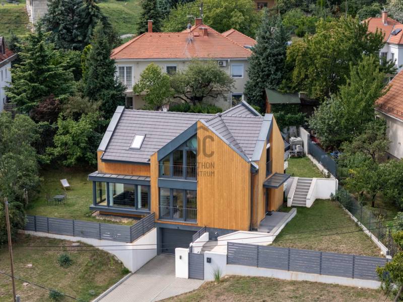 Emellett a ház mellett nem lehet szó nélkül elmenni. A környéken lakók és erre járók előszeretettel csodálják meg. Az erdő mellett, környezetéhez tökéletesen illő, természetes anyagokból épült, modern, kilátással rendelkező ház. Nem túl nagy, pont jó méretű és ideális elrendezésű egy nagyobb létszámú család számára is. Az ideális családi fészek. Üdv itthon!RÖVID ÖSSZEFOGLALÓBudapest III. kerületének Testvérhegy részén, az erdő mellett, az Ér utcában, egy 2022-ben épült, 574 m²-es telken, háromszintes családi ház, dupla állásos garázzsal. A 241 m² alapterületű otthon tágas 53 m²-es amerikai konyhás közösségi térrel, 5 hálószobával, 2 fürdőszobával és külön mellékhelyiséggel rendelkezik. A 26 m²-es terasz, az opcionálisan építhető kültéri medence és a fedett pihenőrész tökéletes kikapcsolódást nyújt, míg a ház skandináv stílusú faburkolata természetes eleganciát sugároz.Ér utca 2Csendes, alacsony forgalmú mellékutcában található, mely párhuzamos a Jablonka úttal. A cél egy kívülről is mutatós, mégis visszafogott, környezetébe illő épületet megalkotása volt. Ennek sikerét bizonyítja, hogy gyakran állnak meg az erre járó-kelők és csodálják meg a ház egyedi sziluettjét.Alapvetően egy modern, tégla építésű, szigeteléssel rendelkező házról beszélünk, melyet skandináv ihletés alapján fa burkolattal láttak el. Ettől légiesebb, természet közelibb a megjelenése. A három rétegű fém ablakok különleges hangulatot biztosítanak, mintha egy képen keresztül tekintenénk a világra. A felső szint részben tetőtéri, de a magas parapet magasság, illetve tetőtéri ablakok ezt megtörik, így a szobák jól használhatóak.A fűtés gázzal, a hő leadás a nappali szinten padlófűtéssel, az emeleten a hálószobákban radiátorokkal és szintén padlófűtéssel történik. A klimatizálás klímával, minden szobában külön egységgel.A tervek szerint a kertben medence is kialakításra került volna, de ez végül nem valósult meg. Igény szerint kialakítható. A nyári hőségben a nagy méretű terasz vagy az egyik fa árnyéka biztosít majd menedéket. Ez lesz a kedvelt helyszín a családi és baráti összejövetelekre.PINCESZINT - 88 m² Autóinkkal automata kapuval rendelkező, tágas, 66 m²-es 2 állásos garázsunkban parkolhatunk. Innen közvetlenül juthatunk fel a felsőbb emeletekre.A háztartási helyiség egyben van a kazánházzal, a gépek így nem a lakótérben zajonganak. Ablakos, a szellőzés tehát megoldott.Van még egy nagy tároló, ahol rengeteg minden elfér. Sportoláshoz használatos tárgyakat és eszközöket, téli gumikat, vizet, tartós ételt stb. attól függően, mire van szükségünk a mindennapokban.FÖLDSZINT - 89 m²Tágas előtérbe érkezünk, ahol kényelmesen meg tudunk érkezni és van elég hely holmijaink lepakolásához. Azonnal szembetűnik a világos, hatalmas terű, nyitott érzésű nappali, ami befelé hívogat. Ezt a hangulatot nem sikerült igazán jól visszaadnunk a képeken, érdemes személyesen megtapasztalnia. Az asztalos által egyedileg készített konyhaszigetes konyha a ház lelke. Minden reggel és este itt gyűlik össze a család. A háziasszonyok kedvelni fogják a sok tárolási lehetőséget, valamint a kis szeparáltságot, ami mégsem választja el őket a közösségtől. A nappaliból kilátás nyílik a városra. A kerület \"ikonikus\" tornya tökéletes látható. Tolóajtón keresztül juthatunk ki teraszunkra. A kint és a bent szinte eggyé válik.Ezen a szinten kialakításra került egy szoba, ami jelenleg dolgozónak van kialakítva, de hálószobának, vendégszobának is tökéletes. Mellette körbejárható fürdő, wc-vel, ami teljes értékűvé teszi.EMELET - 85 m²A jól átgondolt alaprajz élhető tereket és elrendezést tett lehetővé. Tökéletes három, akár négy gyerekesek számára is. Minden szoba külön nyílik. Dupla komfort teszi egyszerűbbé a hétköznapokat. Minden háló más jellegű kilátással rendelkezik, valamelyikből gyönyörű panoráma nyílik a Pilisi hegyekre, másokból, pedig zöldre.KINEK AJÁNLOMIdeális választás nagyobb családoknak, akik értékelik a modern dizájnt és a természet közelségét. Azoknak ajánlom, akik nyugodt, csendes környéken keresnek, új építésű otthont, mely nem túl nagy, könnyen karban tartható, kompromisszum mentes, minden igényt kielégít.TESTVÉRHEGYAz Ér utca 2 a III. kerület csendes, zöldövezeti részén, Testvérhegyen található, mely jelenleg az egyik legkedveltebb és legmegfizethetőbb, a belvároshoz közel eső zöldövezeti rész Budán. A környék legfőbb tudnivalói:- kiváló túrázási lehetőségek a természet kedvelőinek- elsősorban autós megközelítés, tömegközlekedés busszal- legközelebbi bevásárló központ - Eurocenter- infrastrukturálisan jól ellátott - Tesco, Lidl, benzinkutak, éttermek, beauty szalon, fodrászat, bank stb.- egészségügyi problémával a Szent Margit kórházba érdemes menni- számos sportolási lehetőség a közelben pl.: tenisz, foci, kosárlabda stb.- kikapcsolódás - Hármashatár-hegy- Buda belvárosi része könnyen és gyorsan megközelíthető gépjárművelItt minden eltöltött nap maga a feltöltődés. Friss levegő, zöld környezet és a hegyek még szíved épségére is ügyelnek.------Az életérzés, amit ez az ingatlan magából áraszt páratlan, melyet rendkívül nehéz átadni, meg kell tapasztalni. Ha ide belépsz, garantáltan nem akarsz elmenni. Szeretettel várunk egy bejárásra, hogy az élményt személyesen is átélhesd!