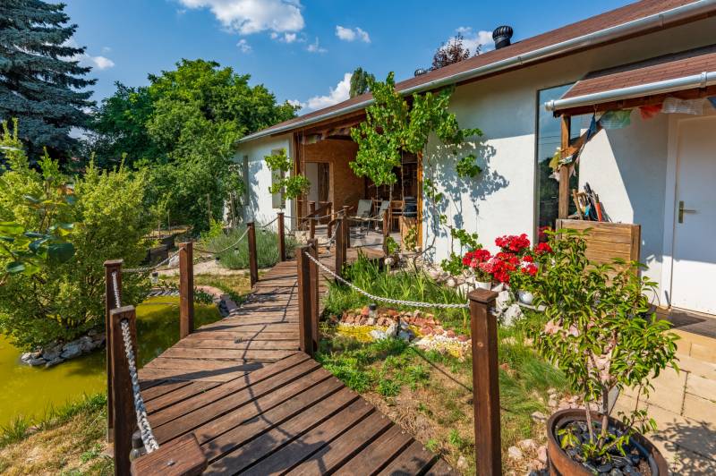Eladásra kínálunk egy egyedi kialakítású, nettó 138 m²-es családi házat egy 746 m²-es, parkosított telken Szigethalom szívében!Az ingatlan 2017-ben teljeskörű felújításon esett át, mely során korszerűsítették a gépészetet, burkolatokat és nyílászárókat is. A fűtés és hűtés modern légcsatornás klímával megoldott, melyet gázcirkó egészít ki, így a hőkomfort minden évszakban garantált.A ház praktikus elosztásának köszönhetően akár kétgenerációs otthonná is alakítható: a hátsó részben található egy külön bejáratú szoba, amely könnyűszerkezetes, hang- és hőszigetelt technológiával épült – ideális lehet önálló lakrész kialakítására.A munkavégzéshez is kiváló feltételeket biztosít az otthonban kialakított kis irodahelyiség, amelyben helyet kapott a kazánház és egy zuhanyzós fürdőszoba is, így a home office is kényelmesen megoldott.A házhoz tartozik továbbá egy 25 m²-es, fedett nyári konyha, amely tökéletes helyszíne lehet a baráti vagy családi összejöveteleknek.A gondozott kert igazi ékköve az ingatlannak: dísznövényekkel, egy kis tóval és hangulatos hidacskával teszi varázslatossá a kültéri időtöltést.Főbb jellemzők:Nettó 138 m² lakótér746 m² parkosított telek25 m²-es nyári konyhaLégcsatornás klímás hűtés-fűtés + gázcirkóKülön bejáratú szoba – akár második lakrésznekHome office lehetőség irodával és saját fürdővelEgyedi légtechnikai megoldásHangulatos, rendezett kert tóval és virágokkalNe hagyja ki ezt az egyedi lehetőséget – ideális választás családosoknak, többgenerációs együttélésre, vagy akár vállalkozáshoz is!