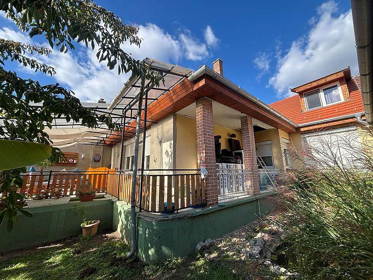 XVII. KERÜLETBEN, RÁKOSKERESZTÚRON ELADÓ EGY 181 M2-ES, 2 GENERÁCIÓS IKERHÁZ FÉL, 554 M2-ES TELEKKEL, ÉS KOCSIBEÁLLÓVAL.Az ingatlan téglából épült, stabil beton alapra, beton födémmel. A mennyezet 15 cm szigeteléssel ellátott, a tető pedig 2010-ben felújításon esett át. A nyílászárók mindenhol cserélve lettek, az alsó szinten redőnnyel felszerelve. Az emeleten a vízvezetékeket és a csatornarendszert is korszerűsítették.A fűtés gázkazánnal történik, a meleg vizet villanybojler szolgáltatja. Az emeleti nappaliban hűtő klíma lett felszerelve. Minden szoba laminált parkettás, egy kivétellel, ahol padlószőnyeg található. A többi helyiség járólappal burkolt.Elrendezés:Földszint: nappali + 4 szoba, konyha + étkező, kamra, kádas + zuhanyzós fürdőszoba, külön mellékhelyiség, előszoba, közlekedő, 2 terasz.Emelet: amerikai konyhás nappali, 3 szoba, kamra, gardrób, kádas fürdőszoba + mellékhelyiség, külön mellékhelyiség, közlekedő, erkély.Környék:XVII. kerület, forgalomtól mentes, csendes mellékutcája, nagyon jó közlekedésnél. A közelben, iskola, óvoda, játszótér, orvosi rendelő, gyógyszertár, számos bevásárlási lehetőség.5 perc sétára találhatók a 161, 161E, 97E buszjáratok, és a 990-es éjszakai járatok, valamint az 505, 506, 510-es távolsági buszjáratok. M0-ás autópálya 5 percre található.Finanszírozás: Banki finanszírozással is megvásárolható, melyben irodánk ingyenes tanácsadással áll rendelkezésükre!IRÁNYÁR: 129.9 M Ft. VEVŐINK RÉSZÉRE A KÖZVETÍTÉS DÍJTALAN!A hirdetésben szereplő adatok tájékoztató jellegűek.