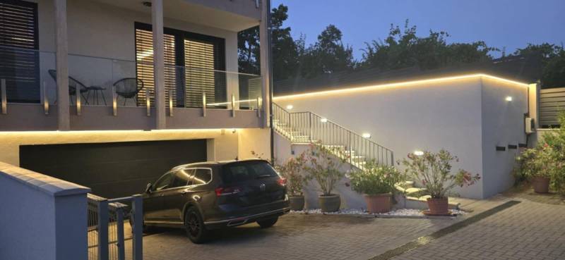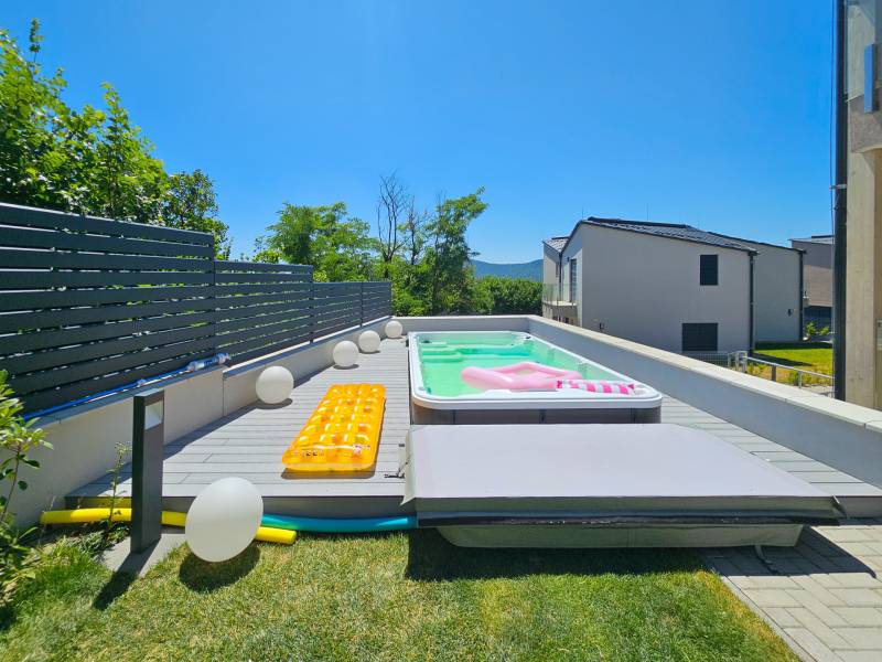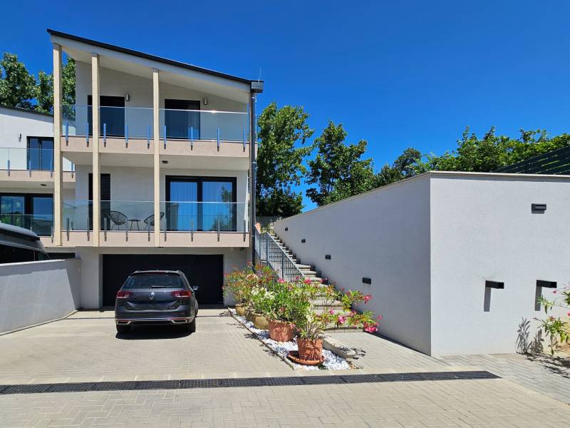 Panorámás 2024-es magas minőségben épült ikerház az Üröm Ezüsthegy Lakópark legexkluzívabb részében.Csend, panoráma, természet és elegancia mindez egy helyen, egy egyedi tervezésű, 2024-ben elkészült Ezüsthegy Villaparkban, amely nemcsak otthon, hanem életérzés is.A III. kerülethez nagyon kötel, Üröm legexkluzívabb részén, az Ezüsthegy Villaparkban kínálunk megvételre egy háromszintes, 5 szobás, duplakomfortos, teljesen berendezett ikerházat, amely 2024-ben épült, és minden tekintetben a jövő otthonát képviseli.A HÁZ2024-ben épült, 3 szintes, D-i tájolású, 165 m²-es.A földszinti lakótér 2 szobás, fürdőszobás és a nappalihoz tartozik egy terasz is még.Az emeleten 3 szoba, 1 fürdővel, és minden szoba erkéllyel rendelkezik.A 2 állásos fedett garázs mellett az a legalsó szinten helyet kapott még további 2 helység is, amelyek jelenleg háztartási helységként funkcionálnak.Az otthon eszenciái: - szokásostól eltérő nagyobb belmagasság, amely igazán tágassá teszi a helységeket- Tágas belső terek, gondosan kialakított elrendezés – ideális nagyobb családnak is- Modern szigetelés (15 cm), korszerű mennyezeti hűtés-fűtés levegő-víz hőszivattyúval- Monolit vasbeton szerkezet- 3 rétegű nyílászárók, biztonsági bejárati ajtó- Okosotthon-érzés: elektromos zsaluzia + szúnyogháló, robotfűnyíró, öntözőrendszer, riasztó + kamerarendszer, kapunyitó- Prémium anyagok, ízléses, modern burkolatok, korszerű épületgépészet- Laminált padló, csúszásgátlós Gres lapok, csempeburkolatok- Szobánként vezérelhető termosztát + internetes távvezérlés- Elektromos autótöltési lehetőség (3x32A)Kiváló, újszerű állapot.A házból és a kertből lenyűgöző kilátás nyílik a Budai-hegyekre, másik oldala pedig egy hatalmas mezőre néz A ház minden részletében a gondos tervezés és a minőségi kivitelezés köszön vissza.A KERT- Rendezett, öntöző rendszerrel, 418 m²-es- hatalmas jakuzzi ellenáramoltatóval – relaxálj saját privát wellnessedben pazar kilátással a Budai hegyekre - 3 autó kültéri parkolására elegendő hely - Zárható tárolóval rendelkezikLOKÁCIÓLakópark előnyei:Az Ezüsthegy Villapark egy frissen épült, zöldövezeti, családbarát környezet, ahol a nyugalom, a természet közelsége és a modern városi kényelem találkozik. A magastetős, elegáns épületek, a panorámás teraszok, a minőségi kivitelezés és az AA+ energiahatékonyság garanciát jelentenek arra, hogy hosszú távon értékálló otthonod lesz.1 Km-en belül:pékség, zöldséges, ABC, dohánybolt218-as BKV busz (Szentlélek tértől a solymári Auchanig közlekedik)Ürömi vasútállomás (közvetlen járatok a Nyugati pályaudvarig és Rákosig)Számos kirándulási lehetőség a közelben (Budai-hegyek és a Nagy Kevély is karnyújtásnyira)A remek megközelíthetőség miatt kiválóan alkalmas nagycsaládosok részére.Ha felkeltette az érdeklődését az ingatlan, keressen bizalommal! Amennyiben nem tudom felvenni a telefont, később visszahívom.Kiknek ajánljuk?Annak, aki nem kompromisszumot keres, hanem otthont. Aki fontosnak tartja az alacsony fenntartási költséget, a biztonságot, a természet közelségét, és aki szívesen ébred madárcsicsergésre – 20 percre Budapest szívétől.Ne maradj le róla! Vedd fel velem a kapcsolatot még ma, és nézd meg élőben ezt a páratlan ingatlant!Az új otthonod már vár rád – csak a bőröndödet kell hoznod.------------------------------------------------------------------------------------------------------------------------------------------------------------Casa bifamiliare panoramica di alta qualità del 2024 nella zona più esclusiva dell\'Üröm Ezüsthegy Lakópark.Silenzio, panorama, natura ed eleganza, tutto in un unico luogo, in un Ezüsthegy Villapark dal design unico, completato nel 2024, che non è solo una casa, ma anche uno stile di vita.Nella zona più esclusiva di Üröm, nell\'Ezüsthegy Villapark, a due passi dal 3° distretto, proponiamo in vendita una casa bifamiliare di tre piani, 5 locali, con doppio comfort, completamente arredata, costruita nel 2024 e che rappresenta la casa del futuro sotto ogni aspetto.LA CASACostruita nel 2024, su 3 piani, orientata a S, 165 m².La zona giorno al piano terra dispone di 2 camere da letto, un bagno e una terrazza accanto al soggiorno.Al piano superiore si trovano 3 camere da letto, 1 bagno e ogni camera dispone di un balcone.Oltre al garage coperto per 2 auto, al piano terra si trovano altri 2 locali, attualmente utilizzati come locali di servizio.L\'essenza della casa:- altezza insolitamente elevata del soffitto, che rende gli ambienti molto spaziosi- Interni spaziosi, disposizione degli spazi attentamente progettata - ideale per una famiglia numerosa- Isolamento moderno (15 cm), moderno sistema di riscaldamento e raffreddamento a soffitto con pompa di calore aria-acqua- Struttura monolitica in cemento armato- Finestre a 3 strati, porta d\'ingresso blindata- Sensazione di casa intelligente: tapparelle elettriche + zanzariera, robot tagliaerba, impianto di irrigazione, sistema di allarme + telecamere, apricancello- Materiali di prima qualità, rivestimenti moderni e di buon gusto, moderna ingegneria edile- Pavimento laminato, piastrelle in gres porcellanato antiscivolo, rivestimenti in piastrelle- Termostato controllabile per stanza + telecomando internet- Possibilità di ricarica per auto elettrica (3x32A)Ottime condizioni, nuovo.La casa e il giardino offrono una vista mozzafiato sulle colline di Buda, mentre l\'altro lato si affaccia su un vasto campo.Ogni dettaglio della casa riflette un\'attenta progettazione e una lavorazione di qualità.IL GIARDINO- Ben organizzato, con impianto di irrigazione, 418 m²- Ampia vasca idromassaggio con nuoto controcorrente: rilassatevi nel vostro centro benessere privato con una magnifica 