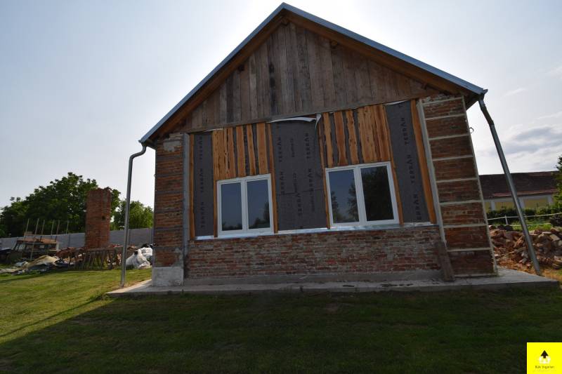 Három épület, végtelen lehetőség! Egyedülálló ingatlan eladó Balogunyom csendes mellékutcájában, mindössze 8 km-re SzombathelytőlBalogunyom egy barátságos, rendezett település a nyugati határszél közelében, Szombathely szomszédságában. A falut kiváló közlekedési kapcsolatok, nyugalom, jó levegő és erős közösségi szellem jellemzi – ideális választás azoknak, akik szeretnék ötvözni a vidéki békét a városi kényelemmel.Ezen a 2400 m²-es összközműves telken három különálló épület kapott helyet, így számtalan lehetőséget kínál mind lakhatásra, mind vállalkozásra vagy tárolásra.? 1. épület – Klasszikus parasztház (65 m²):Az utcafronton álló, 1863-ban épült, tégla falazatú parasztház a hagyományos elrendezést követi: két szoba, konyha és egy régi istállórész található benne. Az épület gázkonvektoros fűtésű, felújítandó állapotban van, de megőrizte eredeti hangulatát, így egy stílusos, régi karakterét megtartó otthon válhat belőle.? 2. épület – Modern konténerház (24 m²):Ez az egység 12 x 2,4 méteres, kiváló állapotú, teljesen hőszigetelt lakókonténer, amely nappali-konyha, hálószoba és fürdőszoba funkciókat foglal magába. Korszerű klímával fűthető és hűthető, 3 fázisú áramellátással rendelkezik, külön betáplálás van napelemhez, így akár szigetelemű napelemrendszerről is működtethető. A napelem telepítéshez a szolgáltató által előírt 3 X 16 Amper rendelkezésre áll, amely az új kiépítés műszaki paramétereinek megfelelően 3x32 Amperig átalakítás nélkül bővíthető. Ideális akár állandó lakhatásra, akár irodának.?️ 3. épület – Impozáns pajta (200 m²):A harmadik és talán a legérdekesebb épület egy 200 m2 alapterületű rendkívül masszív pajta épület, amelynek jelenleg a fele felett van tető. A pillérek állnak és az eredeti elképzelés szerint egy nyitott szín lett volna, de természetesen ez másképp is kivitelezhető. Mivel a térképen az eredeti 200 m2 szerepel ez mindenféle engedély nélkül megoldható. A pajta belmagassága 4 méter !! így akár raktározási célokra is kiválóan alkalmas lehet, de lakóházzá is alakítható. A pajta betongerendával körbe van vasalva és 20 cm vastag Fiber erősítéssel ellátott aljzatbetont kapott így rendkívül erős és masszív lett. Nagy gépek, teherautók, vagy nehéz dolgok tárolására is kiválóan alkalmas lehet. Az épületben egy 45 m2 -es fűthető részben hőszigetelt \"pajta műhely\" lett kialakítva amely fűthető részben hőszigetelt és könnyűszerkezetes falazattal rendelkezik. A pajta tetőterét pedig szintén többféleképpen hasznosíthatjuk hatalmas méretlének köszönhetően. Lehet tágas lakás, raktár vagy műterem, de hagyhatjuk így nyitottan is az óriási belmagasságának köszönhetően galériásan is.További extrák:• Új, 192 méter hosszú betonkerítés körbeöleli a telket• Terméskőből épített ásott kút• Elektromos csatlakozási lehetőség 3 ponton, érintésvédelemmel akár 3x 32 Amperig bővíthetően• Földkábeles elektromos összeköttetés az épületek között? Irányár: 39,9 millió FtEz az ingatlan tökéletes választás lehet többgenerációs családoknak, vállalkozóknak, autószerelőknek, kézműveseknek, vagy azoknak, akik egy igazán sokoldalú vidéki birtokot keresnek a város közelében.Ne hagyja ki ezt a különleges lehetőséget – hívjon még ma!