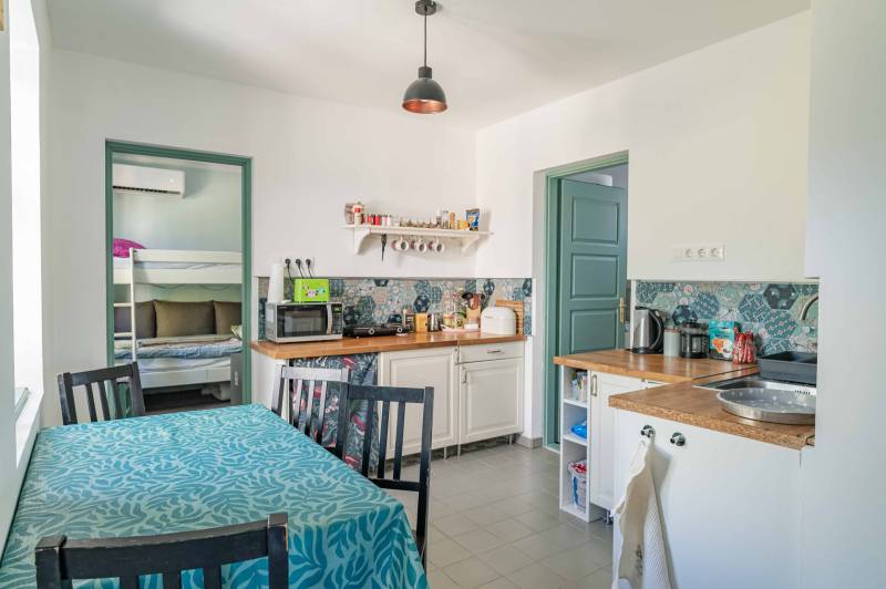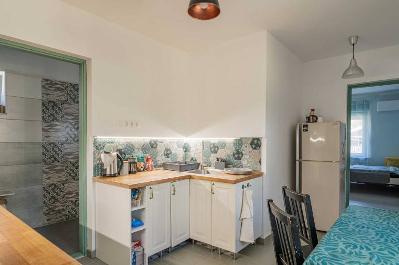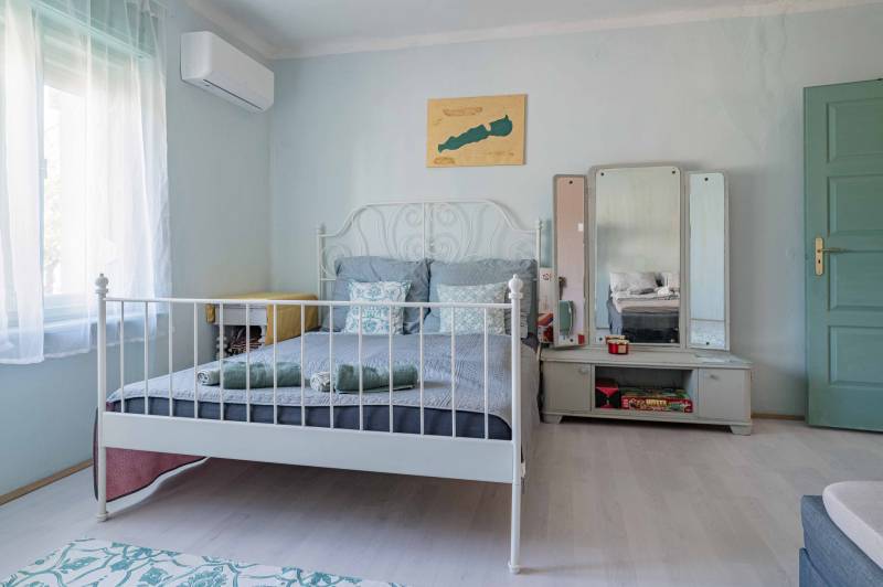 LokációA ház csendes, nyugodt környezetben található, ideális választás lehet vidéki nyugalomra vágyóknak, kis családoknak, pároknak vagy akár nyaralónak is.Telek mérete: 860 m²Lakótér (nettó): 58 m²Helyiségek: 2 hálószoba | 1 fürdőszoba | konyha-étkezőÁllapot: Belseje frissen felújítva, külseje jó állapotúNyílászárók: Eredeti fa ablakok, jó állapotbanAz ingatlanrólEz a hangulatos, 58 m²-es ház teljes belső felújításon esett át, modern, mégis otthonos. A világos terek, letisztult színek és praktikus elrendezés kényelmet biztosít a mindennapokra. A két hálószoba, az új fürdőszoba, valamint az ízléses, gépesített konyha-étkező ideális elosztású.Külső térA tágas, 860 m²-es telek gondozott, árnyékos terasza tökéletes helyszíne lehet reggeli kávézásoknak vagy baráti összejöveteleknek. A ház külső homlokzata jó állapotú, a klasszikus vidéki hangulatot megőrző eredeti fa nyílászárók pedig karaktert adnak az épületnek.Felszereltség    •    Klímaberendezés    •    Modern világítás    •    Funkcionálisan berendezett fürdőszoba    •    Gépiesített konyha    •    Bútorozott teraszTovábbi lehetőségekA nagy telek lehetőséget biztosít bővítésre, kertészkedésre vagy akár egy kis vendégház kialakítására is.Ne hagyja ki ezt a kivételes lehetőséget!Ide csak be kell költözni – nyugalom, természetközeliség és stílus egy helyen.További információért és megtekintésért keressen bizalommal!
