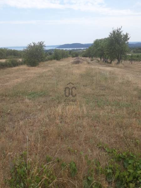 Kiemelt megbízás az Otthon Centrum Kínálatában!A Telek 3398 m2, 3%-ban beépíthető szőlő vagy gyümölcsfa telepítése nélkül.A telek kert besorolású és kétoldalt mandulafák szegélyezik.A Koczor pince közelében található ami közismert kiváló konyhályáról.A telek utcafrontja 20 méter széles.A telekre 32A áram van bekötve, a víz a telek elött az utcán van. A telekről nagyszerű kilátás nyílik a füredi és a sajkodi öbölre, valamint Tihanyra.Kérem hívjon amennyiben megszeretné nézni.Ez az ingatlan a \"Felező csomag\" megbízási portfólióhoz tartozik. Részletek az Otthon Centrum weboldalán.