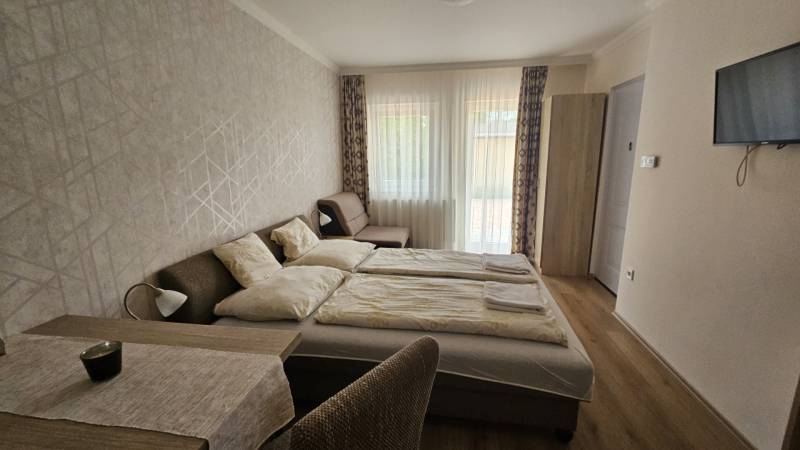 EXKLUZÍV BEFEKTETÉSI LEHETŐSÉG HAJDÚSZOBOSZLÓ KÖZPONTJÁBAN - LUXUS SZÁLLÁSKOMPLEXUM STABIL HOZAMMAL, TELJES FELSZERELTSÉGGEL!!!! A magyar turizmus egyik gyöngyszeme, Hajdúszoboszló, Európa-szerte ismert és elismert fürdőváros, ahol a gyógyturizmus, az élményfürdők és a folyamatosan növekvő belföldi-külföldi vendégforgalom találkozik. A város szívében, a kiemelt presztízsű Bánomkerti úton kínálunk eladásra egy teljes mértékben működő, kiváló állapotú, többfunkciós vendéglátóingatlant, amely tökéletes választás lehet üzleti befektetők, szállásadó vállalkozások vagy akár privát rezidenciát kereső vásárlók számára.Lokáció: A város legértékesebb övezetébenAz ingatlan elhelyezkedése páratlan: Hajdúszoboszló központjában, mégis csendes, nyugodt környezetben található. Néhány perc sétával elérhető a híres Mátyás király sétány, az Aqua-Palace élményfürdő mindössze 500méter távolságra, a Gyógyfürdő, valamint számos étterem, üzlet és turisztikai attrakció. A város az év minden szakaszában vonzza a látogatókat, ami egész éves telítettséget biztosít az itt működő szálláshelyek számára.Az ingatlan: prémium kialakítás, két épület, bővítési potenciállal1. Főépület (több mint 400 m²) – panzió, tulajdonosi lakrész, tetőterasz, szuterén apartmanJelenlegi funkció: panzió és hostel, vendégkörrel és működési múlttal9 különálló apartman, mindegyikben saját konyha és zuhanyzós fürdőszoba, ízlésesen bútorozott, azonnal kiadható állapotbanTulajdonosi lakrész: kb. 100 m²-es, 2 szobával, amerikai konyhás nappalival, kamrával, fürdőszobával (kád és zuhany is), külön WC-velA lakrész 3 különálló apartmanná alakítható, jelentősen növelve az ingatlan kihasználtságát és hozamát36 m²-es terasz és 12 m²-es erkély a vendégek pihenéséhezSzuterén szint: 45 m²-es különálló lakrész szaunával, saját konyhával és fürdőszobával – a főépületből és az udvarról is megközelíthetőA tetőn napelemrendszer (8 kW) segíti a költséghatékony működést2. Melléképület (3 szint) – vendégház, 5 apartmannalÖsszesen 5 apartman, mindegyikben külön konyha és fürdőszobaFöldszint és első emelet: 2-2 apartman, a tetőtérben 1 különálló egységAz emeleti apartmanokhoz tágas erkélyek tartoznak, vendégélmény szempontjából különösen értékesekKözös étkezőkonyha biztosítja a hosszabb tartózkodás kényelmétMűszaki tartalom és kényelmi extrákPadlófűtés a tulajdonosi lakásban, minden épületrészben modern gázkazános fűtés puffertartállyalKlímarendszer: minden apartmanban (kivéve a szuterént) hűtő-fűtő klíma gondoskodik a komfortos hőmérsékletrőlModern nyílászárók, mindenhol szúnyoghálóvalKamerarendszer az ingatlan teljes biztonságáért24 db Luxor Solar 330W napelem, Fronius inverterrel (8 kW) – akár teljes áramellátás biztosítottTérkövezett udvar, több beálló autóknak, fedett gépkocsi beállóAutomata öntözőrendszer, parkosított kertFedett udvari nyári konyha, bográcsozóhely – 12–20 fős társaságokat is kényelmesen kiszolgálEgyedi tervezésű tetőterasz – kiváló panoráma, prémium vendégélményÜzleti potenciál és megtérülésAz ingatlan egész évben üzemel, nem csupán szezonális működésű, így folyamatos bevételt biztosítJelenlegi kihasználtság alapján a megtérülési idő kb. 10 év, azonban a bővítési lehetőségek révén ez jelentősen rövidíthetőBejáratott vendégkör, ismert és kedvelt szálláshely a régióbanAz ingatlan tehermentes, jogilag rendezett, azonnal birtokba vehetőTeljes vendéglátáshoz szükséges felszereléssel együtt eladó – semmilyen további beruházást nem igényelKinek ajánljuk?Szállásadással foglalkozó cégeknek, akik rögtön működő rendszert keresnekMagánbefektetőknek, akik passzív jövedelmet biztosító, stabil hozamú ingatlant keresnekTársaságoknak, orvosi központoknak, tréningközpontnak, akik több lakóegységből álló komplexumot keresnekOlyan vásárlóknak, akik egy élhető lakóteret szeretnének működő üzleti háttérrel kombinálniLépjen a siker útjára Hajdúszoboszlón!Ez az ingatlan nem csupán egy panzió vagy vendégház, hanem egy kulcsrakész, jövedelmező vállalkozás a régió egyik legfrekventáltabb helyszínén. Ne hagyja ki ezt a különleges lehetőséget!További információért, alaprajzért vagy időpont egyeztetésért kérem, vegye fel velünk a kapcsolatot!