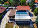 Páratlan lehetőség a vendéglátás szerelmeseinek – alig 24 km-re Budapesttől, Leányfalu szomszédságában, közvetlenül a Szentendrei-Duna partján eladó egy kivételes adottságokkal rendelkező, többfunkciós vendéglátó-komplexum.A 2019-ben épült melegkonyhás étterem és panzió összesen 436 m² beépített területen kínál teljes körű kiszolgálóteret és apartmanokat.A telken belül 25 kiépített parkolóhely, valamint egy hangulatos 2134 m²-es füves, rendezett zöldterület biztosítja a vendégek kényelmét.A komplexum része egy 128 m²-es rendezvénysátor, amely ideális esküvők, céges rendezvények, privát események lebonyolítására.Az étterem 157,8 m²-es vendégtere ízlésesen berendezett (bárpult, asztalok, székek), míg a 91,67 m²-es háttérterület professzionális gépészeti és kiszolgáló egységekkel van felszerelve. A modern konyhai gépek (pl. Rational sütő-főző rendszer, sous vide kádak, hűtött pultok, ipari hűtők) külön megállapodás keretében megvásárolhatók.A hangulatos 142,5 m²-es pincehelyiség további vendéglátó egységként vagy borbárként is kialakítható – a lehetőségek száma végtelen.És ami igazán különleges: saját kishajó kikötő tartozik a területhez – ez a Duna-parti lokáció nem csupán vonzó, de ritkaságszámba megy!- Befektetőknek, étterem tulajdonosoknak, szállásadóknak és turisztikai fejlesztőknek egyaránt ideális!- Teljes dokumentáció, műszaki tartalom és berendezési lista rendelkezésre áll.- Elhelyezkedés: közvetlenül a 11-es főút mellett, egyszerű megközelítéssel, kiváló láthatósággal.Készen állsz egy igazán különleges vállalkozásra a Duna partján?Kérj bővebb információt és időpontot személyes megtekintéshez!#dunapartiingatlan #étteremeladó #panzióeladó #befektetés #vendéglátás #dunakanyar #Leányfalu #kikötő