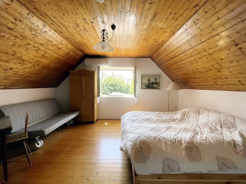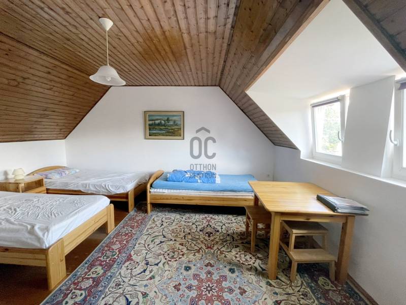 Lesenceistvándon eladó egy 120 m2 nagyságú családi ház, rendezett tulajdoni viszonyokkal!Az ingatlanról:Telek terület: 615 m2Alapterület 2 szinten: 120 m2Helyiségek: - Földszint: Előszoba, Konyha - Étkező, Nappali, Fürdőszoba - WC, Kamra, Szoba, Terasz- Emelet: Nappali, 2 szoba, WC - KézmosóFűtés/Hűtés: 2 kályha, 2 db infrapanel, 2 inverteres klíma Nyílászárók: Fa nyílászárókTájolása: Az ablakok DK-i és DNY-i tájolásúak, benapozott, világosKözművek: Víz, Villany, Csatorna bekötve, Gáz a telken találhatóA fa födém, gerendák, emeleti lambéria, hajópadló kiváló állapotúak, az emeltre vezető fa lépcső tágas, mégis helytakarékos.A kert kezelhető méretű, mégis kellő teret biztosít az itt élők számára.Az udvarban található egy 8 m2 nagyságú tároló.A földszinti nappaliból kilépve egy 18 m2 nagyságú fedett terasz ad teret a kellemes beszélgetésekhez.Az ingatlan kiválóan alkalmas állandó lakhatásra, de nyaralóként is remek választás.Az ingatlanhoz legközelebb eső balatonedericsi strand 9 percre, Tapolca pedig 10 perc autóútra található az ingatlantól, így a bevásárlóközpontok, boltok, bankok, óvódák, iskolák mind könnyedén elérhetők.Az ingatlan CSOK Hitelképes.Amennyiben egy azonnal költözhető, jó állapotú ingatlant keres egy kedves kis faluban a Balatonnál, megtalálta. Keressen bizalommal!