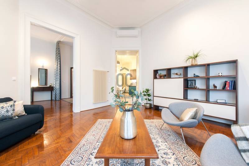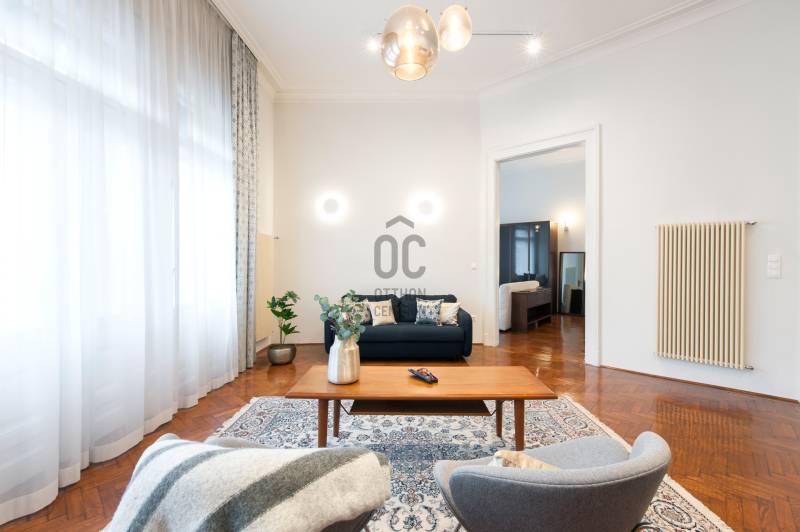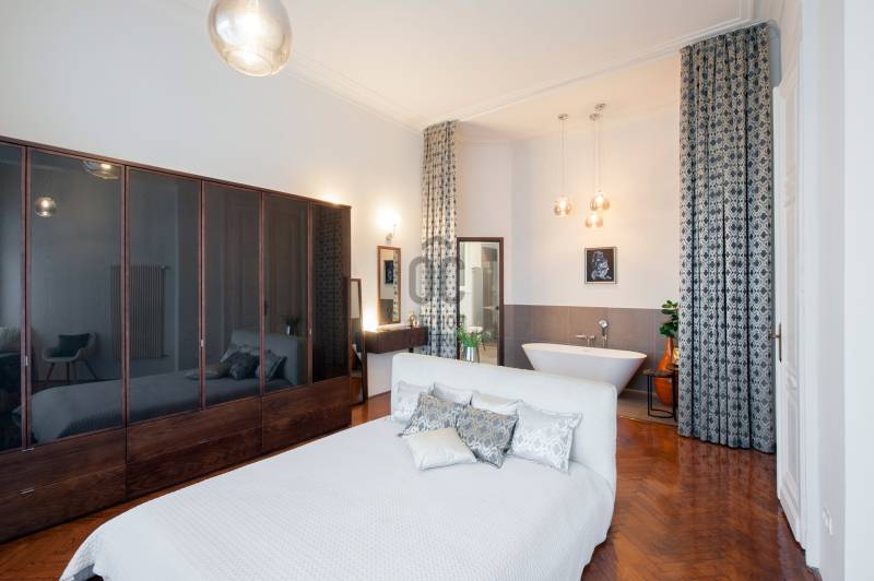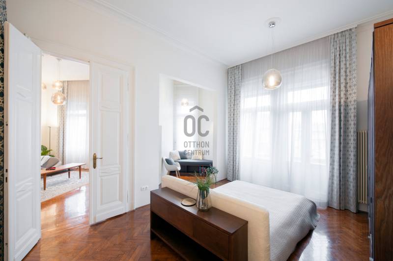 RÖVID ÖSSZEFOGLALÓ:Királyi Bérpalotában, magas minőségben felújított nappali + hálószobás 86m2-es lakás, két erkéllyel (3,08m2 és 4m2) és kettő fürdőszobával valamint olvasó sarokkal. ÉPÜLET: A Királyi Bérpalotát a századelő legkiemelkedőbb építészei tervezték, a kor leghíresebb és legfoglalkoztatottabb mesterei dolgoztak rajta. A négyemeletes, gazdag homlokzati díszítésű palotát a Zeneakadémiát és a közeli Klotild-palotákat is tervező építészpáros, Korb Flóris és Giergl Károly tervezte. A palota főnemesek és magas rangú államhivatalnokok számára épült, ezért az építészek a belső terek díszítésénél csak a korszak legjobbjaival dolgoztak. A hatalmas vaskapukat, valamint a lépcsőházak kovácsoltvas korlátjait korának egyik legnagyobb iparművésze, Jungfer Gyula tervezte. LAKÁS, MELY OTTHONKÉNT ÉS BEFEKTETÉSKÉNT IS TUDATOS VÁLASZTÁS:A lakás 2020-ban esett át teljes felújításon, nem volt használva egyáltalán tehát a képekhez hűen hibátlan állapotú minden. Hatalmas dupla üvegfelületeknek köszönhetően állandóan természetes fény árad be, melyeknél a belső üveg ki lett cserélve így az otthon csendes és békés. Két darab erkély is tartozik a lakáshoz, a belső nyugalmas terekből kisétálva az igazi, városi pezsgés érezhető. A konyha teljes felszerelése a legmodernebb Miele gépeket kapta és a beépített szekrényekben minden kényelmesen elfér. A nappalit és hálószobát igazán letisztult stílus jellemzi, könnyen saját ízlésre formálható, bár így is teljesen megállja a helyét. A hálószobában található egy igazán kuckós olvasó sarok, mely tökéletes egy homeoffice délutánra akár egy esős napon egy kávé mellett és még a városra is rálátni. Az egyik fürdőszoba a hálószobán keresztül közelíthető meg, a másik a bejárat mellett található. Legfontosabb tudnivalók:- Teljesen felszerelt, a vételár tartalmaz mindent.- Hűtő-fűtő klíma található a lakásban.- Kiváló, praktikus elrendezés.- Hangszigetelt ablakok, csodás kilátás.- Kiadásnál 5-6% hozamot is elérhet. Keresett, prémium lokáció. - Az épület alján elérhető: Lidl, patika és egyéb éttermek, kávézók.- Váci utca valamint Duna-part csupán 5 perc séta távolságra van.Jöjjön el és képzelje el milyen nemesi élete lehetne itt.Várom megtisztelő hívását!