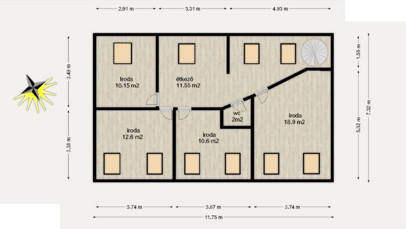 *PROFESSIONAL ENGLISH SPEAKING REAL ESTATE EXECUTIVE*Fontos Önnek, hogy egy kitűnő, reprezentatív környéken legyen irodája, és remek infrastruktúrával rendelkezzen?Szeretne dolgozni, tárgyalni és kitűnő üzleteket kötni egy világos, belső kétszintes ingatlanban?Iroda:- Egy emeletes irodaépület első emeletén;- Tájolás: Kelet, ezáltal reggeltől késő délutánig világos, napfényes;- Belmagasság: 2,6m.- 5 külön bejáratú tárgyalóhelyiség;- Új, gépesített amerikai konyha (mosogatógép)- Műanyag nyílászárók;- Mosdó + WC mindkét szinten;- Alsó szinten zuhanyzó;- Fűtés: kondenzációs gázkazán;- Klíma : minden helyiségben, folyamatosan szervizelt (Fujitsu, Samsung)- Meleg víz: elektromos bojler;- Mozgásérzékelő riasztó.- Teljes berendezés az árban!Irodaház:- Építés éve:2000;- Rendben karbantartott, tégla társasház;- LIFT NINCS;- Igényes, csendes közösség;- Kiváló, megbízható közös képviselet;- Biztos pénzügyi háttér és megtakarítás;- Új projektek/felújítások.Lokáció:- Óbuda szívében, pár lépésre a Kolosy tértől és a Puskás Ferenc szobortól; - Kiváló közlekedés: 17,18,41 villamosok (Bécsi út) 9,111,29 buszok (Lajos utca) és 65, 165 buszok (Kolosy tér & Szépvölgyi út)- Sétálva megtalálható minden, amire a napi életünkben szükségünk lehet: éttermek, kávézók, Prima, DM, Rossmann, Entertainment & Gastro bevásárlóközpont, Posta, Gyógyszertár, cukrászdák, pékségek.További információk:- Az ingatlan per és tehermentes;- Irodaként bejegyezve a Tulajdoni lapon;- Birtokbaadási határidő: 60 nap;- Közös költség: 85.190HUF/hó;- Teljes berendezés az árban!