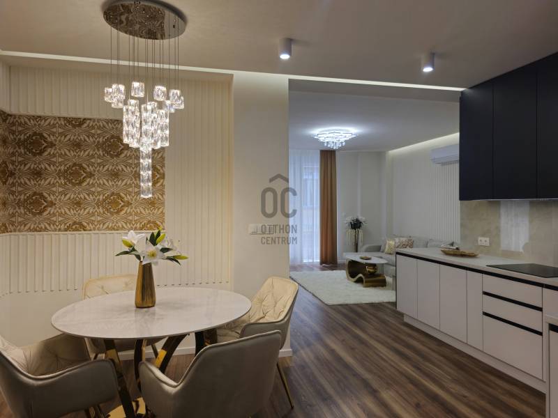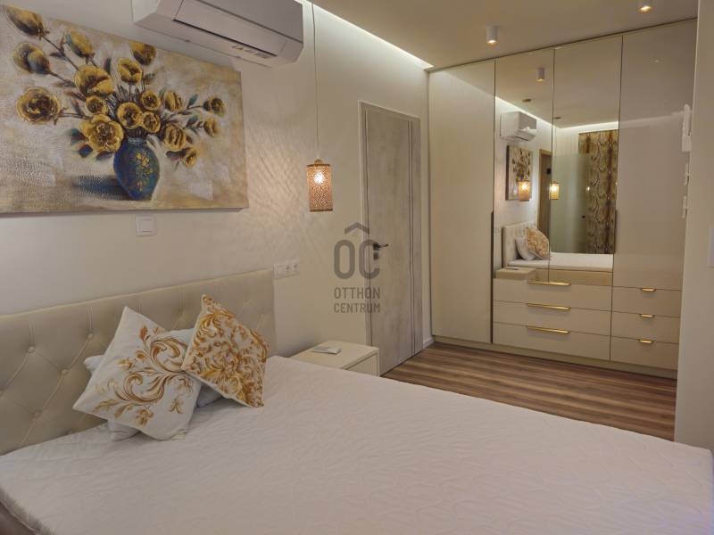A házban 2 db lakást is meglehet vásárolni melyek ugyanolyanok szerkezetileg viszont színben és egyebekben eltérnek egymástól: - A lakás jelenleg felújítás alatt áll, és néhány hónapon belül elkészül. - A lakás és a bútorok világosabb színekben pompáznak, a fehér árnyalatai dominálnak a belső térben, elegáns és letisztult hangulatot teremtve. - A nappaliban a TV alatt egy látványkandalló kapott helyet, amely exkluzív és otthonos hangulatot biztosít. A hirdetésben meglelhető képek a másik lakásról készültek referenciaként van ábrázolva.Eladó luxuslakás a Duna-part közelében – Exkluzív, bútorozott otthon a belváros szívében!Budapest V. kerületében, a patinás Molnár utcában, pár lépésre a Duna-parttól és a híres Váci utcától, egy bruttó 101m²-es prémium minőségben felújított, teljes bútorzattal együtt, 3 erkélyes eladó luxuslakás várja új tulajdonosát! A lakás főbb jellemzői: - Minden helyiség légkondicionált – maximális komfort minden évszakban. - Amerikai konyhás nappali – tágas és világos tér. - Külön vendég WC. - Minden szobából és a nappaliból is közvetlen erkélykapcsolat melyek együttes mérete 10m²- A hirdetési ár tartalmazza a teljes bútorzatot – azonnal költözhető, kompromisszumok nélkül. - 2 hálószoba, mindegyikhez saját fürdőszoba és WC. Master bedroom:- Saját fürdőszoba. - Zuhanyzó. - Fürdőkád. - Dupla mosdókagyló. - Gardróbhelyiség a maximális kényelem érdekében. Junior suite:- Saját fürdőszoba. - Zuhanyzó. - WC. - Beépített szekrény – praktikus tárolási lehetőség. Környék és elhelyezkedés:A Molnár utca Budapest egyik legexkluzívabb és legkeresettebb része, hiszen kevesebb mint 200 méterre található a Duna-parttól. Egy kellemes séta után már élvezhető a vízpart nyugalma és panorámája. A Váci utca közvetlen közelében található, így a belvárosi élet minden előnye adott: - Nívós éttermek, elegáns kávézók, üzletek. - Kulturális programok és kiváló közlekedési lehetőségek. - A Fővám téri Vásárcsarnok, a Bálna Budapest, valamint a Szabadság híd is mindössze néhány perc sétával elérhető. - Kiváló közlekedés: M3, M4 metró, 2-es villamos, számos busz és troli biztosítja a gyors és kényelmes utazást. Tekintse meg ezt a lenyűgöző lakást személyesen! Bővebb információért és a megtekintéssel kapcsolatban hívjon bizalommal!Egyedi igényekre szabott lakás-vállalati hitelekkel állunk rendelkezésére. Bankfüggetlen hitelcentrumunk az országban elérhető összes bank és hitelintézet ajánlatát versenyezteti az Ön számára díjmentesen. Munkatársaink nagy szakmai tapasztalattal várják Önt az előre egyeztetett időpontban, akár a normál munkaidő után is.