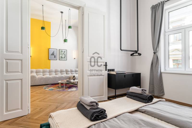 Történelmi hangulat és modern funkcionalitás a Podmaniczky utcában - Üdv itthon!RÖVID ÖSSZEFOGLALÓBudapest VI. kerületének Podmaniczky utcájában, jó állapotú liftes épületben, második emeleti 114 m²-es, 4 szobás, 3 fürdőszobás, 2 külön WC-s, lakás eladó , hőszivattyús fűtéssel, északnyugati tájolással, városi panorámával, közös pincehasználattal.LOKÁCIÓ – városi lüktetés és otthonos ritmus egyensúlyaA VI. kerületi Podmaniczky utca ezen szakasza különös adottságú: megőrizte századfordulós eleganciáját, miközben pár lépésre található a Nyugati tér, a körút, a Városliget és az Andrássy út pezsgő kulturális tengelye. A közlekedés kiváló – a 4-6-os villamos, M3 metró, vonatok és tucatnyi buszjárat érhető el néhány perc alatt –, de az igazi érték az a városi szövet, amely egyszerre teszi élővé és élhetővé a környéket.Befektetési szempontból ez a városrész stabilan keresett, különösen a hosszú távú bérbeadás vagy rövid távú, exkluzív kiadás piacán. A lakás elosztása és mérete miatt családok számára is kiváló választás: a közeli iskolák, óvodák, orvosi rendelők és a parkos zöldterületek kényelmessé teszik a mindennapokat. Egy olyan városi életformát kínál, ahol nem kell kompromisszumot kötni: élmény lakni benne, és biztos befektetésként is megállja a helyét.PODMANICZKY 43Az épület egy 1870-es évekbeli historizáló bérház, amely Wechselmann Ignác tervei alapján találkozott eredeti formájával, majd Pucher József 1873-ban második emelettel bővítette. A korai historizáló stílus jegyében elegáns homlokzati díszítéseket, boltozatos kapualjat, terrazzó padlót és kovácsoltvas korlátokat őriz. Ez a történeti és építészeti örökség teszi különlegessé – klasszikus karaktere és gondozott közösségi terei a városi elegancia és a műemléki érték harmonikus kombinációját kínálják.A 43-as ház közvetlen szomszédja – a 45‑ös – egykor szabadkőműves páholyként működött. Ruppert Vilmos 1896-ban tervezte, a homlokzaton máig felfedezhetők az egyiptomizáló és szabadkőműves szimbólumok: szfinxek, körző–vonalzó motívumok, sugárzó háromszögek. Bár a 43-as ház korábban, a 19. század közepén épült, és nem volt páholy, a historizáló városszövet részeként emelkedett, elegáns, többemeletes bérpalotaként, eredeti architektúráját máig őrizve.Fontos kiemelni, hogy Podmaniczky utca – az 1874-ben visszanyert név után – jól ápolt városszövet része lett. A környező épületek (például Podmaniczky 45 – szabadkőműves –, Podmaniczky 16 – ipartörténeti domborművek) révén az utca egy folyamatos historizáló és művészeti kontextus része.Az utca névadója Podmaniczky Frigyes, várospolitikus, művészetpártoló és a városfejlesztés egyik kulcsfigurája volt a 19. század második felében. Ő irányította többek között Budapest közparkjainak – köztük a Városliget – megújítását, az Andrássy út kiépítését és a pesti városszövet modernizációját. Nevét viseli az utca is, mint a város eszményi fejlődésének szimbóluma.A LAKÁSA második emeleten található, 114 négyzetméteres lakás klasszikus és modern elemek kiegyensúlyozott kombinációja. Négy szobája ideális lehet nagyobb családnak, otthoni irodát igénylőknek vagy több hálószobás bérbeadásra gondolóknak. A három fürdőszoba és a két különálló WC nagyfokú kényelmet és rugalmasságot biztosít többgenerációs vagy közös lakhatás esetén is.Az északnyugati tájolás kellemes, nyári időszakban különösen komfortos klímát biztosít, a városi panoráma pedig karakteres hátteret ad az enteriőrnek. A hőszivattyús fűtés korszerű, energia hatékony megoldás, amely nemcsak környezetbarát, de fenntartható rezsiköltséget is garantál.Az alaprajz jól átgondolt, a terek arányai kényelmesek, és minden szobának megvan a maga külön világa – ideális alapanyag egy valóban személyre szabott otthon kialakításához.AjánlásEz az ingatlan azoknak szól, akik egy karakteres, élhető városi otthont keresnek kiváló infrastruktúrával, vagy akik olyan befektetést szeretnének, amely hosszú távon értékálló, jól kiadható és alacsony fenntartású. Egy lakás, amely nem akar többnek látszani, mint ami – de pont ettől lesz igazán meggyőző.Ha szeretné, hogy személyesen is meggyőzze, találkozzunk ott! ----------------------------------------------Díjmentes, bankfüggetlen hiteltanácsadással támogatjuk vevő ügyfeleinket a számukra legelőnyösebb finanszírozási döntések meghozatalában. Opcionálisan igénybe vehető kiegészítő szolgáltatásainkkal – mint ügyvédi közreműködés, energetikai tanúsítvány vagy villamos biztonsági felülvizsgálat – teljes körű szakmai támogatást nyújtunk az adásvétel folyamatának minden egyes lépésénél.----------------------------------------------A hirdetésben szereplő információk tájékoztató jellegűek. A tévedés és az árváltoztatás jogát fenntartjuk. Az esetleges elírásokért és technikai hibákért felelősséget nem vállalunk.