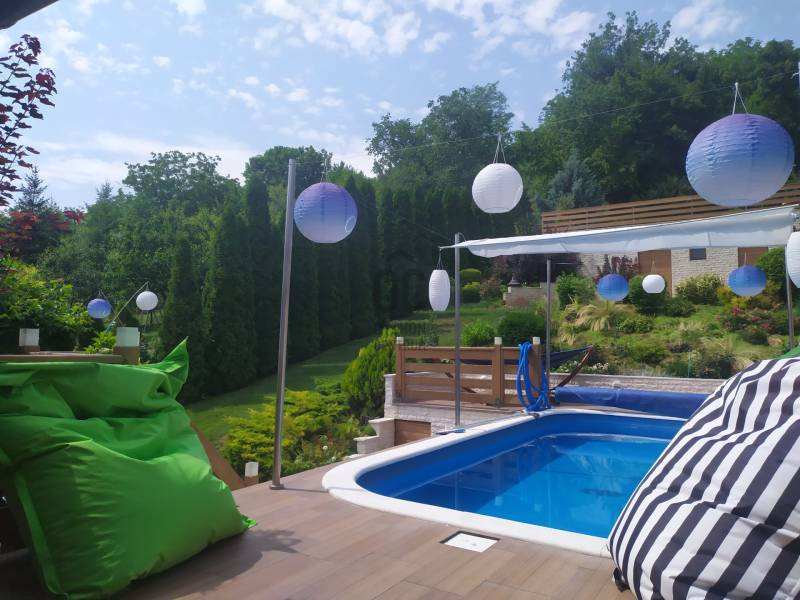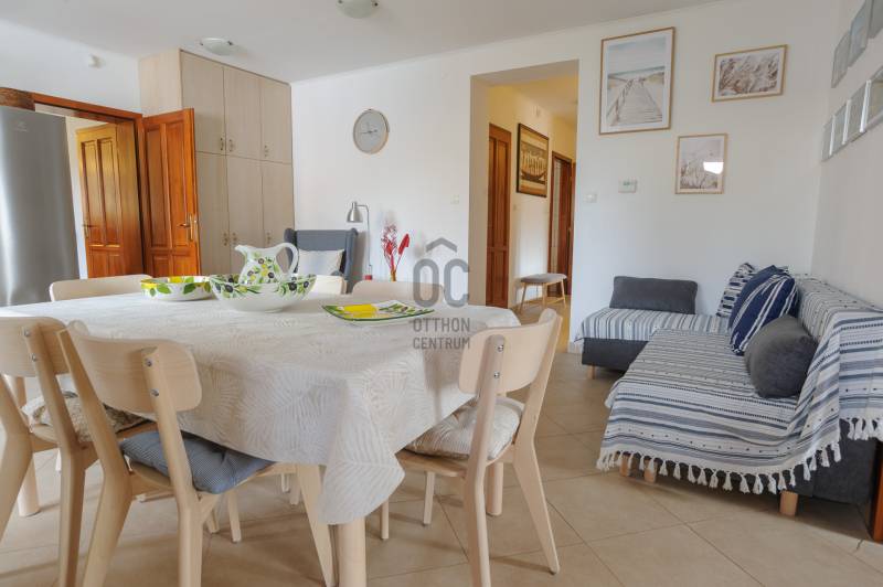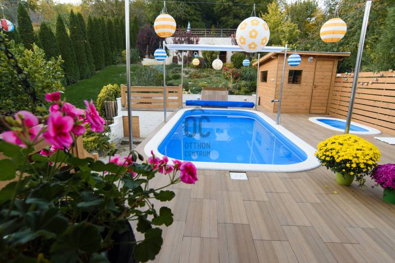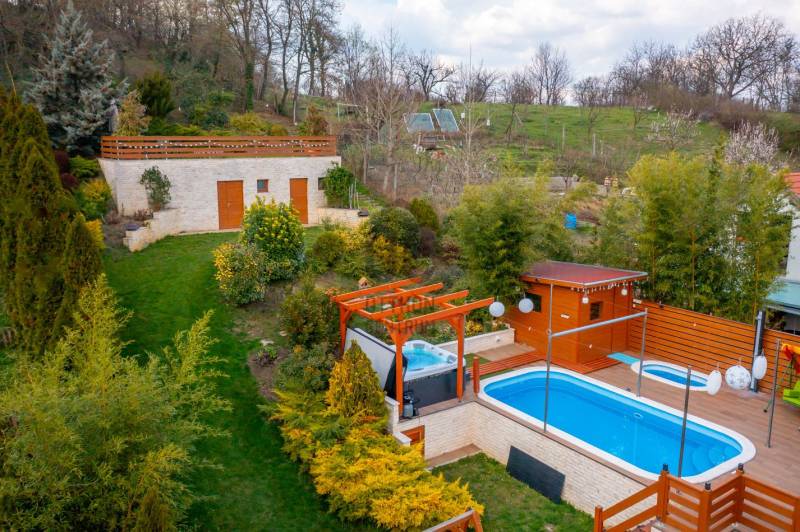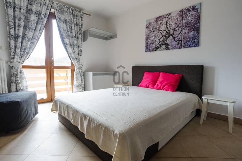 Kiemelkedően felszerelt apartmanház Pilismaróton – befektetőknek és vállalkozóknakEladásra kínálunk egy párját ritkító, magas színvonalú apartmanházat a Dunakanyar kedvelt településén, Pilismaróton. A 1860 m²-es telek a falu csendes részén található, átmenő forgalomtól mentes utcában, és lélegzetelállító panorámát kínál a Dunakanyarra. Az épület jelenleg vendégházként üzemel NTAK‑engedéllyel: apartmanjait naponta bérlik rövid távú kiadásra és rendezvényekre, így azonnali bevételi forrást biztosít új tulajdonosának.Két önálló apartman egybenNettó 475 m² két szinten, ebből a felső szinten két, külön bejáratú, mégis egybenyitható lakrész (kb. 84 m² és 82 m²). Az egyik lakásban 1 hálószoba, a másikban 3 hálószoba található; mindkettőben tágas konyha‑étkező‑nappali, 1‑1 fürdőszoba és 2‑2 WC.Különleges teraszok: az utcafronti apartmanhoz 18,7 m² loggia tartozik; a hátsó lakrészből egy 130 m²‑es terasz nyílik, ebből 70 m² fedett, 60 m² pedig wellness terasz, ahol 6×3 m‑es fűthető medence, 2×1 m‑es pezsgőfürdő és 9 kW‑os, 6 személyes szauna kapott helyet. A terasz faburkolata elegáns és hőérzetében is kellemes.Tágas, beépíthető tetőtér: a szigetelt, gipszkartonozott tetőtér 84 m²‑es, további apartmanok vagy szolgáltató egységek kialakítására alkalmas.Minőségi műszaki megoldásokFa hatású műanyag nyílászárók, 10 cm‑es hungarocell szigetelés, bambuszparketta a hálókban, mediterrán járólapok a közösségi helyiségekben.Modern fűtési és hűtési rendszer: kondenzációs kazán, padlófűtés, inverteres klímák, valamint hangulatos téglakályha.18–18,5 kW‑os napelemrendszer éves szaldó elszámolással, ami fedezi a két apartman teljes energiafogyasztását; kedvezményes gázárak.Ipari áram és ipari gáz bevezetve, 3×35 A villany, mélyfúrt kútból működő öntözőrendszer.Kiépített kamera‑ és riasztórendszer, távirányítós elektromos kapu, 5 autó részére elegendő térkőburkolatos beálló.Kültéri élmények és extra szolgáltatásokGondozott mediterrán kert gyermekjátszóval, 60 m²‑es, füvesített tetejű gazdasági épület kilátóként, valamint a telek legmagasabb pontján egy 6 m magas torony, ahonnan 360°‑os panoráma nyílik a Dunakanyarra.A kertben gyümölcsfák, pihenőhelyek és további beépítési lehetőségek állnak rendelkezésre.A vendégház minden hatósági engedéllyel rendelkezik, a vállalkozás 16 éve működik, magas foglaltsággal és kiváló referenciákkal.Befektetőknek, vállalkozóknak ajánlvaEz az apartmanház ideális magánlakásnak, de befektetésként vagy turisztikai vállalkozásként is kiemelkedő lehetőség. A két különálló apartman rugalmasságot biztosít: kombinálhatja saját otthonát a vendégfogadással, vagy akár két külön egységként hasznosíthatja. Az ipari közműbekötések és a hatalmas tetőtér további bővítésekre, wellness‑szolgáltatások kialakítására vagy akár műhely, irodai tevékenység folytatására is alkalmasak.Finanszírozási segítségAz ingatlan megvásárlásához mind lakossági, mind céges hitellehetőségeket tudunk ajánlani, banki kötöttségek nélkül. Hitelcentrumunk az országban elérhető pénzintézetek ajánlatait vizsgálja meg, és segít eligazodni a piaci, illetve az államilag támogatott konstrukciók között – külön kezelve a személyes és a vállalkozói igényeket. A feltételek és kamatok ügyfelenként és a piaci körülmények függvényében változhatnak, ezért pontos ajánlatot személyes konzultáció után tudunk adni. Szakértőink díjmentesen állnak rendelkezésére, akár munkaidőn túl is.Keressen bizalommal, ha egy olyan magas színvonalú apartmanházat keres, amely egyszerre biztosít otthont, folyamatos jövedelemforrást és további fejlesztési lehetőségeket a Dunakanyar szívében.