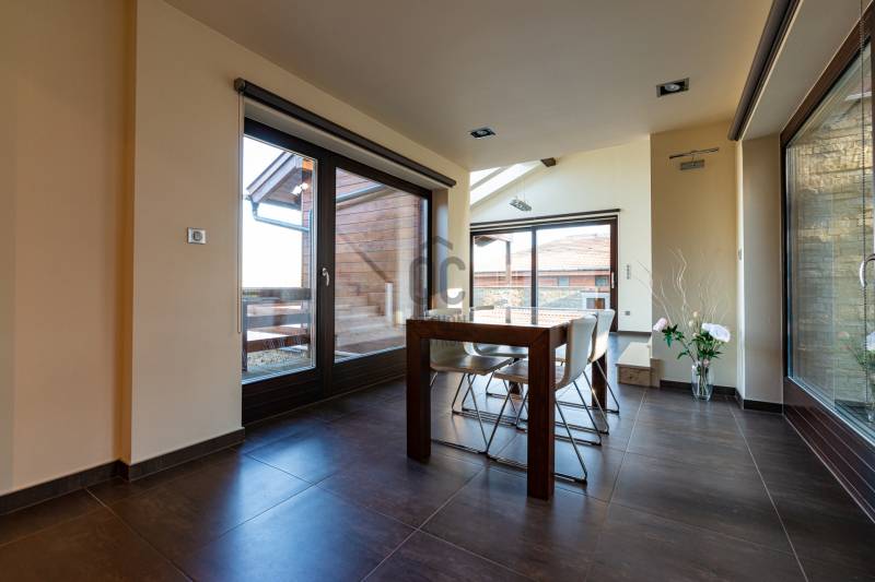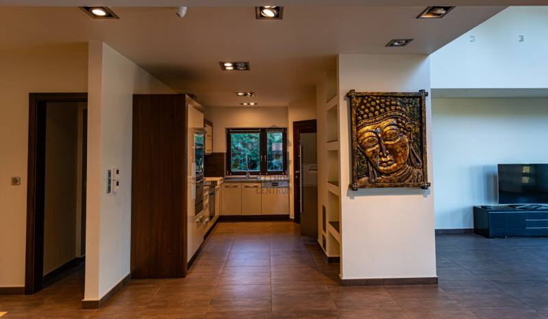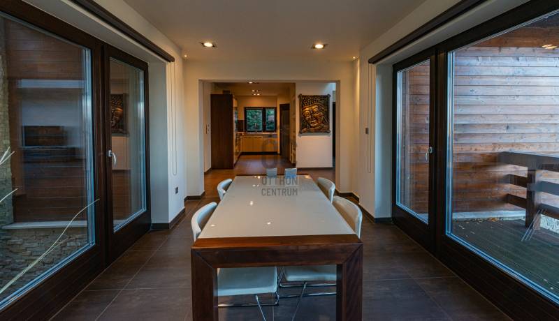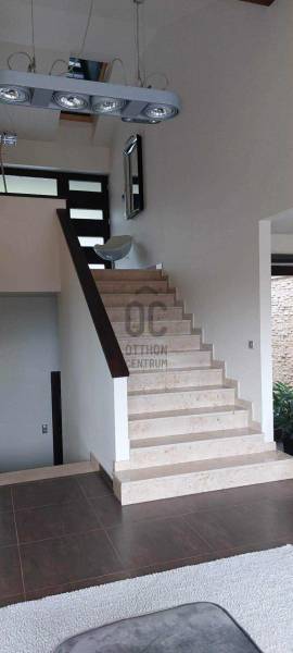 Ez a kivételes, 441 nm-es használt családi ház Nagykovácsiban, Pest vármegyében, a legnagyobb kényelmet és eleganciát kínálja egy exkluzív otthonra vágyó család számára. Az ingatlan egyedülálló tervezésének köszönhetően a tágas nappali és a világos, nagy belmagasságú szobák mind a modern életstílus, mind a családi együttlétek tökéletes színterévé válnak illetve szinten található még egy számos lehetőséggel bíró, liftes helyiség ami lehet akár garázs vagy hobby szoba is . A házban megtalálható 8 szoba és 3 fürdőszoba nemcsak a családtagok, hanem a vendégek kényelmét is szolgálja, így ideális választás lehet befektetési céllal is. A prémium kivitelezésű ingatlan számos modern kényelmi funkcióval rendelkezik, mint például beépített bútorok és szekrények, LED hangulatvilágítás, komplett grillező és kemence a teraszon stb. A házhoz tartozó három garázs férőhely biztosítja a járművek kényelmes tárolását, míg a rendezett 1504nm-es kert és az automata öntözőrendszer gondoskodik arról, hogy a zöld terület mindig ápolt és szép legyen. A kertben található medence és szauna pedig a pihenés és a kikapcsolódás tökéletes helyszínét nyújtja. Az ingatlan csendes, felkapott környéken helyezkedik el, amely nemcsak a nyugalom szigete, hanem a biztonságos életvitel szempontjából is ideális választás. A környék kiváló közlekedési lehetőségekkel rendelkezik, így az autóval közlekedők számára könnyen elérhetőek a főbb útvonalak, míg a tömegközlekedés is jól kiépített, lehetővé téve a gyors és kényelmes bejutást a fővárosba. A közelben található iskolák, boltok és egyéb szolgáltatások pedig tovább növelik az ingatlan vonzerejét. Ez a modern, kandallós, világos és tágas családi ház nemcsak egy otthon, hanem egy életstílus megtestesítője. Az ingatlan állapota kiváló, fűtése gáz (cirko) rendszerrel, hűtése klímával megoldott. A biztonsági ajtó és a videókaputelefon, valamint a riasztórendszer garantálja a lakók biztonságát és nyugalmát. A jelenleg divatos de elcsépelt stílustól eltérő, egyedi megjelenést és valóban élhető, kimondottan harmonikus otthont keresőket azonnal elcsábítja a telekről és magából a házból élvezhető meghitt nyugalom, intimitás és elképesztő panoráma, a mögöttünk lévő erdő közelsége pedig azonnal lenyűgözi.Alapvető műszaki tartalom: :-konyha,beépített Siemens gépekkel-beépített szekrények-központi porszívó-WOLF fűtési rendszer melegvíz kollektorokkal, fa tüzelésű kazán a rendszeren belül–kandalló-5 tonnás auto emelő lift-SLV márkájú LED-es lámpatestek az egész házban-elektromosan mozgatható tetőtéri ablakok és azokon szintén elektromos mozgatású alumínium redőnyök-táv felügyeleti riasztó és kamera rendszer-konditerem, infra szauna Ha Ön is szeretne részese lenni ennek az egyedi lehetőségnek, ne habozzon feltenni kérdéseit, hiszen bármilyen információval szívesen állok rendelkezésére!