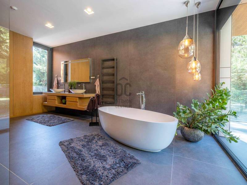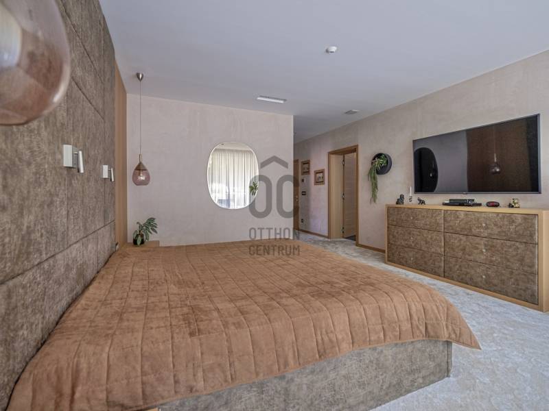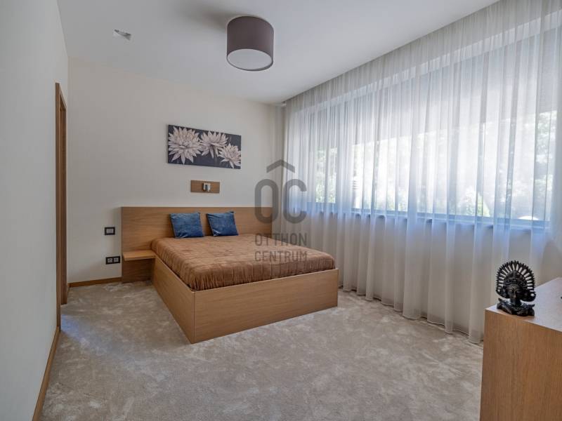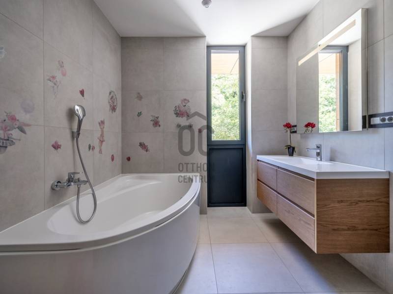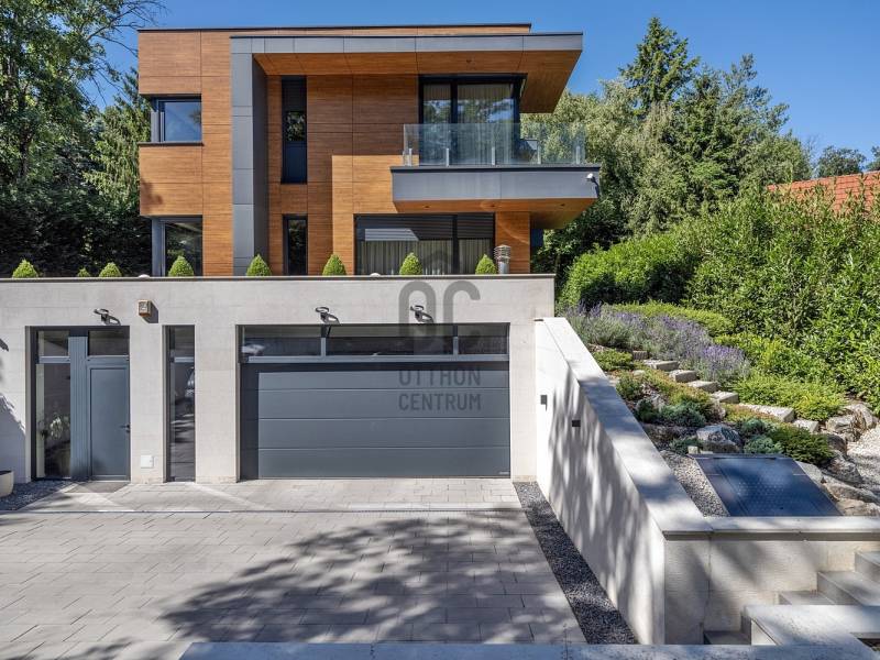 Budapest egyik legelőkelőbb és legcsendesebb zöldövezetében, a II. kerületben, Petneházyréten kínálunk eladásra egy kivételes adottságokkal rendelkező, háromszintes, 440 m²-es luxusvillát.A 2020-ban épült, mod ern 6 szobás ingatlan gondosan parkosított, közel 1800 m²-es telken helyezkedik el, fák ölelésében, távol a város zajától, mégis könnyen megközelíthető helyen.A villa több szinten elterülő, tágas belső tereit letisztult elegancia és jól átgondolt térkialakítás jellemzi, ahol minden részlet a kényelmet és a praktikumot szolgálja.Alsó szint:– Négyállásos garázs– Különálló dolgozószoba– Tágas tárolóhelyiség– Mosókonyha– Fürdőszoba és gardróbKözépső szint:– Impozáns, közel 85 m²-es nappali, étkező és konyha egy légtérben– Vendégszoba saját fürdőszobával– Vendég-WC– Két külön tárolóFelső szint:– Három hálószoba– Két fürdőszoba– Két gardróbhelyiségKültéri extrák:– 100 m²-es panorámás terasz beépített jakuzzival– Medencetér napozóval– Sütögetőterasz– Automata öntözőrendszerrel felszerelt, gondozott kertAz ingatlan forgalomtól mentes, csendes utcában található, közvetlenül az erdő közelében, teljesen elszeparált kerttel, amely meghitt és privát hangulatot biztosít. A gondosan karbantartott kertet dús növényzet és virágzó zöldfelületek díszítik, így a természet közelsége itt valóban kézzelfogható élmény.A legmodernebb gépészet gondoskodik az év minden napján tökéletes komfortérzetről: Viessmann fűtési és hűtési rendszer, okosotthon-vezérlés (redőnyök és kapuk: Loxone), frisslevegő-szellőztetés (Helios), valamint kiépített kamerás biztonsági rendszer.Ez az ingatlan olyan igényes vevőknek készült, akik Budapest természetközeli, mégis reprezentatív környezetében keresnek kompromisszummentes, időtálló otthont.Egyedi igényekre szabott lakáshitelekkel állunk rendelkezésére. Bankfüggetlen hitelcentrumunk az országban elérhető összes bank és hitelintézet ajánlatát versenyezteti az Ön számára díjmentesen. Munkatársaink nagy szakmai tapasztalattal várják Önt az előre egyeztetett időpontban akár a normál munkaidő után is.