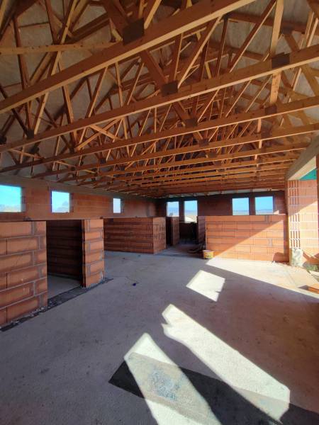 Tahitótfaluban, kiváló megközelítéssel – Új építésű, modern ikerház eladóEladó Tahitótfalu csendes, sík részén egy vadonatúj, letisztult vonalvezetésű, minimál stílusú ikerház, amely eleganciájával és tágas, világos tereivel azonnal rabul ejt.Az ingatlan nappali + 3 hálószobás elrendezésű, így ideális választás családok számára. A nagy méretű nappali a ház szíve, ahonnan közvetlen kijárat nyílik a hangulatos, teraszra, és onnan a privát kertbe – tökéletes helyszín baráti összejövetelekhez, nyári sütögetéshez vagy nyugodt pihenéshez.A ház kivitelezését egy tapasztalt, megbízható építő cég végzi, amely számos referenciával rendelkezik a környéken!Az ingatlan elosztása, az alábbi helységek és méretek szerint : nappali: 21 nmhálók: 13,7;11,4 ;10,8 nmkonyha:10,2 nmétkező:9,2 nmkamra:2,3 nmfürdőszoba:8,3 nmWC: 1,7 nmháztartási helyiség: 6,2 nmközlekedő + gardrób:5,8 nmelőszoba + gardrób: 5 nmMúszaki tartalom és egyéb jellemzők:A ház tégla építésű, 30 N+F Porotherm kerámia falazó elemből készül, 20 cm Grafit Reflex EPS homlokzati hőszigetelővel, amit CT-175 lélegző vékonyvakolattal borítanak. A nyílászárók, háromrétegű üvegezésűek, bukó-nyíló funkcióval.Az otthon fűtés, melegvíz ellátását hőszivattyú biztosítja, továbbá előkészítésre kerül a riasztórendszer és minden szobában a klíma kiállás is. Az udvaron burkolt gépkocsi beálló és terasz is található. Átadás 2026 áprilisában várható, a burkolatok, beltéri ajtók és szaniterek pedig jelenleg még szabadon választhatók, így teljes mértékben a saját ízlésedre formálhatod az otthonodat.A korszerű építési megoldások és a modern fűtési rendszer alacsony fenntartási költségeket biztosítanak. Az ingatlan jó megközelíthetősége miatt gyorsan elérhetők a főbb közlekedési útvonalak, miközben a környék nyugodt, biztonságos és családias hangulatú.Hívjon most és nézzük meg együtt ezt a nagyszerű lehetőséget!