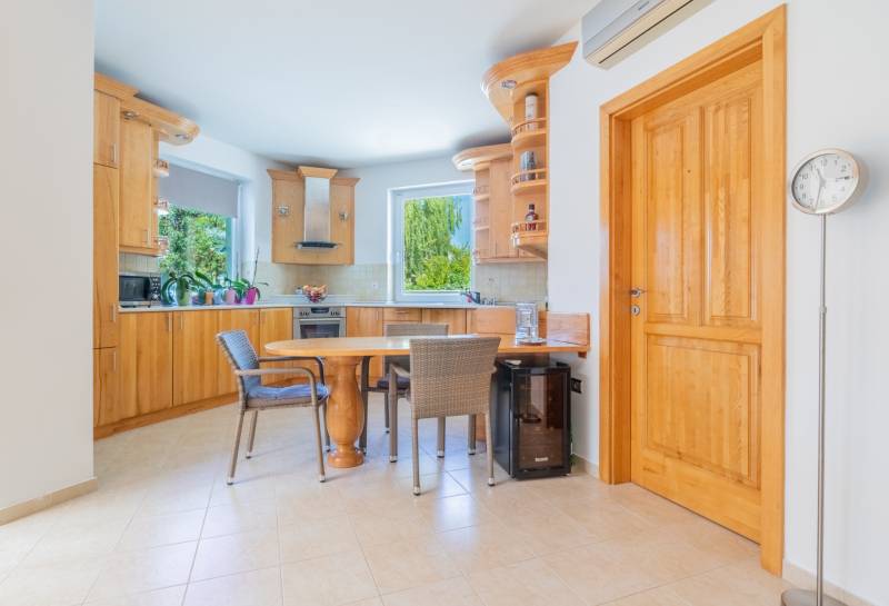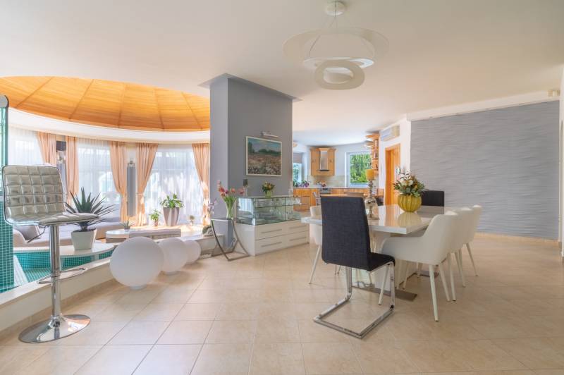 Új tulajdonosát keresi Páty kedvelt részén egy önálló, 285 m2-es alapterületű családi ház. Szépen gondozott privát kert veszi körül, medencével, két állásos garázzsal és további autóbeállóval. Ha igényesen kivitelezett, napfényben úszó, különleges otthont keres családja számára feltétlenül nézze meg!KÖRNYÉK ÉS KÖZLEKEDÉS:- Páty, Pest vármegye – Budapesttől 20 km-re a Zsámbéki medence délkeleti peremén fekszik, az M1-es autópálya mellett. - Családok, nyugodt kertvárosi hangulatot kedvelők által különösen ajánlott település. - A ház Pátykert városrész (Zsámbéki kanyar) egyik zsákutcájában található, amihez iskolák, óvodák, bölcsődék, boltok kényelmesen elérhető távolságban vannak. - Tömegközlekedési eszközök 10 perc séta távolságban elérhetőek.A HÁZ ÁLTALÁNOS JELLEMZŐI:- 2002-ben, 966 m2-es parkosított, sík telekre épült, MINDEN IGÉNYT KIELÉGÍTŐ épület.- 38 cm Porotherm téglából épült, 12 cm szigetelést kapott, monolit vasbeton födémmel ellátott.- A telek kelet-nyugati tájolású, az utcafront szélessége 18 méter.- A ház kiváló adottságú, átgondoltan tervezett, MAGAS MINŐSÉGŰ anyagokkal kivitelezett.- A földszinten 191 m2 élettér áll rendelkezésre, amely két jól elszeparált részből tevődik össze.- Jobb oldalon a ház központi része, a közel 90 m2-es, egész nap FÉNYÁRBAN ÚSZÓ amerikai konyhás nappali és étkező található, valamint egy fél szoba, mely jelenleg egy dolgozószobának lett kialakítva. - Bal oldalon helyezkedik el szülői hálószoba, gardróbbal, külön fürdőszobával.- Továbbá három szoba és egy fürdőszoba mellékhelyiséggel, így biztosítva a család teljes nyugalmát.- A minőségi kivitelezésnek köszönhetően a műszaki állapota kiváló.- A modern belső tér hangulatát az igényes burkolatok, a hatalmas üvegfelületek és a felülvilágító kupola határozza meg.- A Rehau műanyag nyílászárók hőszigetelő üvegezéssel lettek ellátva, belső nyílászárók fa szerkezetűek.- A Weishaupt kondenzációs gáz fűtési rendszer biztosítja a megfelelő hőmérsékletet és a meleg vizet.- Égéstermék elvezetéséhez Schiedel kéményeket alkalmaztak, a ház hűtését klíma biztosítja.- Az igényesen kialakított, privát, PARKOSÍTOTT KERT mellett egész évben használható FEDETT MEDENCE szolgálja a kényelmet.- Az alsó szinten található KÉT ÁLLÁSOS GARÁZS mellett, további két nyitott autóbeállási lehetőség van.AZ ALSÓ SZINT FELOSZTÁSA:- kazánház mosókonyhával,- SZAUNA fürdőszobával,- külön mellékhelyiség,- KONDITEREM és közösségi tér amely teljesértékű ablakkal ellátott, kapcsolódik a garázshoz és a belső lépcsőn keresztül megközelíthető földszinti lakótérhez.FÖLDSZINT FELOSZTÁSA:- a keleti oldalon található a SZÜLŐI HÁLÓSZOBA GARDRÓBBAL és saját fürdőszobával,- további 3 hálószoba,- fürdőszoba zuhanyzóval, JAKUZZIVAL és mellékhelyiséggel,- a nyugati oldalon található a közel 90 m2-es amerikai konyhás nappali étkezővel, egy szoba és egy különálló mellékhelyiség,- FEDETT TERASZ, medence és kert kapcsolattal.FENNTARTÁSI KÖLTSÉGEK:- A ház magas minőségben épült, műszaki állapota kiváló, a Weishaupt fűtési rendszernek és nyílászáróinak köszönhetően a gáz költsége nagyságrendileg 30.000.- Ft.- A vízdíj medence használatával együtt 15-20.000.- Ft, az áram 20-30.000.- Ft között, fogyasztás alapján számolható.AZ INGATLAN MEGTEKINTHETŐ:- VIDEÓN,- személyesen,- online személyes bejelentkezéssel.FINANSZÍROZÁSBAN (AKÁR ONLINE IS) SEGÍTÜNK:- Bank-független hitelcenterünk díjmentesen versenyezteti az összes hazai bank és hitelintézet ajánlatát.- Önnek annyi a dolga, hogy egyeztet kollégáinkkal, majd a személyre szabott ajánlatok közül kiválasztja a hosszú távon is legkedvezőbb konstrukciót.- Szakértőink több mint 20 éves tapasztalattal állnak rendelkezésére: fogyasztóbarát lakáshitelek, babaváró hitel, teljes körű CSOK Plusz és Otthon Start ügyintézés egy helyen.- Előzetes időpont-egyeztetéssel akár munkaidőn túl is rendelkezésére állunk.Amennyiben tágad, kényelmes otthont keres családja számára a főváros közelében, csendes környezetben HÍVJON FEL és nézzük meg együtt.