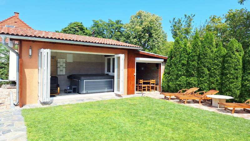 KIEMELT AJÁNLAT A BALATON DÉLI PARTJÁN, BALATONMÁRIAFÜRDŐ SZÍVÉBEN, A STRANDTÓL ÉS A HAJÓÁLLOMÁSTÓL PÁR PERCRE. EGY IGAZÁN KÜLÖNLEGES, PRÉMIUM MINŐSÉGŰ INGATLAN, AMELY NEM CSUPÁN LAKÓHELY, HANEM EGY ÉLETSTÍLUS. Vízközeli nyaralóra, állandó balatoni otthonra vágyók illetve befektetők figyelmébe ajánljuk! Ide csak be kell költöznie!A kiváló állapotban lévő, 3 lakrészből álló mediterrán hangulatú épületegyüttes 648 nm szépen gondozott telken helyezkedik el, modern technikai kivitelezésben, okos otthon funkcióval épült. 8 szobával, valamint 3 fürdőszobával, 3 gépesített konyhával, kültéri medencével, nagy teraszokkal, wellness részleggel várja új tulajdonosát. Az ingatlan ideális választás lehet családok számára, akik a kényelmes és tágas életteret keresik. Befektetési célra is kitűnő lehetőséget kínál, hiszen a Balaton közelsége és a környék turisztikai vonzereje garantálja a jövedelmezőséget. A Nyugati-övcsatornára való panorámás kilátás biztosítja, hogy a természet szépségét mindennap élvezheti illetve közvetlen vizi úton is kijuthat a Balatonra. AZ INGATLAN FŐBB JELLEMZŐI:- kiváló lokáció- közvetlenül a Nyugati-övcsatorna partján- a szabad strand csupán 400 méterre - saroktelek- ingatlan nyilvántartás szerint:LAKÓHÁZ, UDVAR, GAZDASÁGI ÉPÜLET - 3 lakrészből álló, prémium minőségben épült tégla épület- okos otthon funkció- 202 nm hasznos alapterület ( bruttó 269 nm)- 40 méter széles utcafront- teljesen körbe kerített- az esztétikus kőkerítés biztosítja a belső kert intimitását- 2020-ban épült 2 szintes apartmanház ( 50nm és 40nm hasznos területtel)- 2023-ban elkészült földszintes lakóház ( 82nm)- önálló wellness részleg (31,5nm)- gáz cirkó fűtés, padlófűtéssel mind a 3 lakásban- kiegészítő fűtés 3 kandallóval biztosított- 3 gépesített konyha (minőségi elektromos berendezések, mosógépek, szárítógépek, igényes bútorzat, vízlágyító)- az épület hűtéséről 7 klíma gondoskodik - motoros alumínium redőnyök, szúnyoghálók, háromszoros üvegezésű ablakok- grafitos hőszigetelés- kívül-belül terméskő és tégla burkolatok- kamera- és riasztórendszer- 3x32 Amper, ipari áram TÁGAS TEREK, EGYEDI BELSŐ ELRENDEZÉS, LETISZTULT FORMÁK:I. LAKÓHÁZ: kertkapcsolatos nappali/étkező, konyha, kamra, 2 külön nyíló szoba, mini wellness rész, fürdőszoba/WCII. földszinti apartman: konyha/nappali/étkező, fedett terasz, hálószoba, kamra, gyermek kuckó (gardrób), fürdőszoba/WC III. emeleti apartman: lépcsőház, gépészeti helyiség, konyha/nappali/étkező, terasz, hálószoba, fürdőszoba/WCIV. wellness: party helyiség (épített kemencével biliárddal, csocsó asztallal, darts, pingpongasztal), jakuzzi rész, vendég WC, szaunaSZÉPEN GONDOZOTT, PARKOSÍTOTT KERT ÖRÖKZÖLDEKKEL:- 648 nm teleknagyság- 8 m széles elektromos tolókapu- 2 külön gyalogos bejárat- fűtött, ellenáramoltatós medence- finn szauna- klimatizált wellness részleg: jakuzzi, vendég WC- kertkapcsolatos party helyiség - kerti bútorok, nyugágyak, napozóágyak - 2 kerti zuhany- 4 autó részére térkövezett zárt udvari beálló (70nm)- automatizált kerti világítás- vakondháló, locsolórendszer, fűnyírórobot- épített kemence- a kert öntözését fúrt kút biztosítja - 2 kerékpártároló kerékpárokkal- sporteszközök, 3 kajak, tároló állvánnyal, biztonsági felszereléssel- kerti halpucoló, szalonnasütőPLUSZ EGY EGYEDI LEHETŐSÉG, HORGÁSZAT KEDVELŐINEK: a ház előtt lévő stég és csónakhely és horgászcsónak (elektromos motorral, fürdőlétrával, halradarral, takaróponyvával)Az ingatlan per- és tehermentes, rövid idő alatt birtokba vehető.INGÓSÁGOK: A hirdetésben megadott ár az ingatlanra vonatkozik, a felsorolt ingóságok, a teljes bútorzat, edények, műszaki berendezések, kerti bútorok, széf, étkészletek, ágyneműk, törölközők, több évre való száraz fa, csónak EXTRA FELÁRA 20 MILLIÓ FORINT. Az ingatlan kizárólag a tartozékokkal együttesen eladó!A környék csendes és biztonságos, ideális választás a pihenni vágyók számára, akik a Balaton közelségét keresik. A közlekedési lehetőségek is kedvezőek: könnyen megközelíthető autóval, M7 autópálya, 7-es főút illetve a tömegközlekedési eszközök is rendelkezésre állnak ( vasútállomás és buszmegálló pár perc gyalog) A közelben található posta, boltok, éttermek, fagyizók és egyéb szolgáltatások biztosítják, hogy minden szükséges kényelem meglegyen. A vízpart közelsége, a szabadidős tevékenységek, mint a kerékpározás, túrázás és a vízi sportok, mind hozzájárulnak ahhoz, hogy ez a hely valóban különleges legyen. A befektetési lehetőségek mellett a családi otthonként való használat is vonzó, hiszen a Balaton körüli életstílus és közösség valóban egyedülálló. Amennyiben felkeltette érdeklődését ez a kivételes ingatlan, várjuk jelentkezését, jöjjön el és nézze meg, hogy megtalálja az álmai otthonát vagy a tökéletes befektetést!Az adatok és az alaprajzok tájékoztató jellegűek.