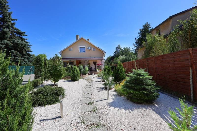 Egy igazi családi otthonra vágysz, ahol a tágas terek és a nyugodt környezet találkozik? Budapest 17. kerületének szívében, Rákoscsabán kínálunk eladásra egy kivételes, 2000-ben épült házat, amely minden igényt kielégít. Jelenleg kettő bejárattal rendelkezik mivel két generáció lakik benne. Az ingatlan alapterülete 140 négyzetméter, és egy 602 négyzetméteres telken helyezkedik el, így bőséges helyet biztosít a család minden tagjának. A ház öt szobával és két fürdőszobával rendelkezik, ami ideális lehetőséget teremt a családi élethez, baráti összejövetelekhez vagy akár otthoni munkavégzéshez is. A tágas nappali világos és barátságos, tökéletes helyszín a közös pillanatokhoz. A kétszer 15 négyzetméteres terasz pedig ideális a nyári estéken való pihenéshez, ahol a gyönyörű kertet élvezheted. A ház állapota jó, fűtése gáz (cirkó), hűtése pedig minden helyiségben klímával biztosított, így a komfortérzeted mindig garantált. Az ingatlan tehermentes, semmilyen tartozás nem terheli. A környék ellátottsága kiváló, a mindennapi élethez szükséges boltok, iskolák és óvodák mind csupán pár percnyi távolságra találhatóak. A csendes, kertvárosi környezet ideális a családok számára, ahol a gyerekek biztonságban játszhatnak a szabadban. A közlekedés is kitűnő, hiszen a közeli buszmegállókból könnyedén elérheted a város többi részét, így a munkahelyed vagy a város szórakozóhelyei is gyorsan és egyszerűen megközelíthetők. Továbbá, az ingatlanhoz elektromos autó töltési lehetőség is biztosított, ami a modern életvitelhez igazodik. A rezsi nagyon kedvező a napelemeknek köszönhetően. A ház ideális választás lehet befektetési céllal is, hiszen a környék folyamatosan fejlődik, így az ingatlan értéke is növekedhet. Ne habozz, ha bármilyen kérdésed van az ingatlannal vagy a vásárlási folyamattal kapcsolatban, bizalommal kereshetsz! Az álmaid otthona csak egy hívásnyira van!