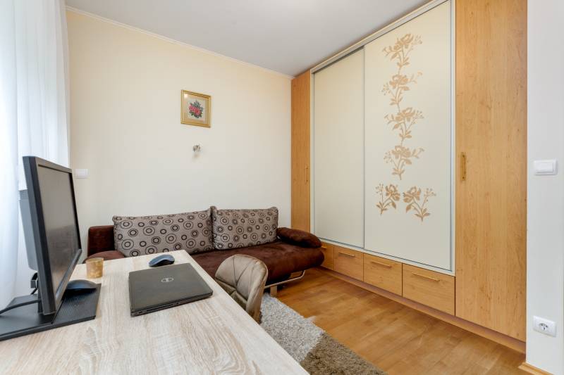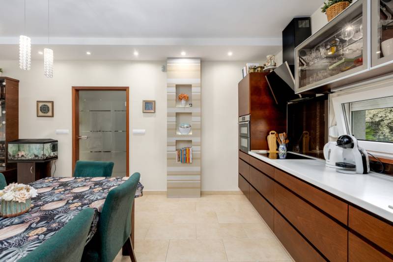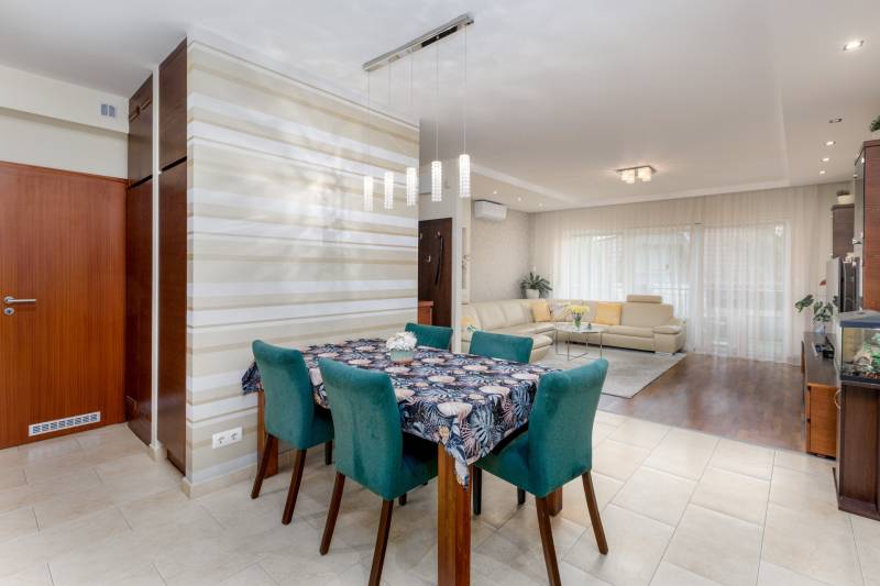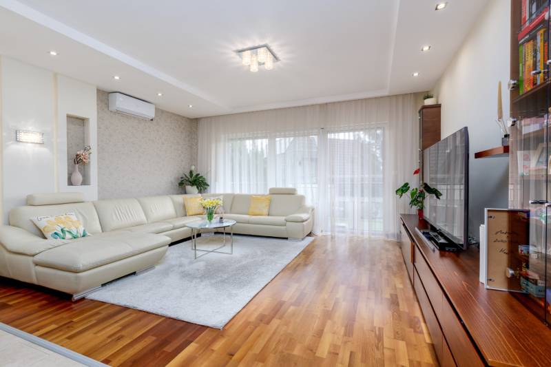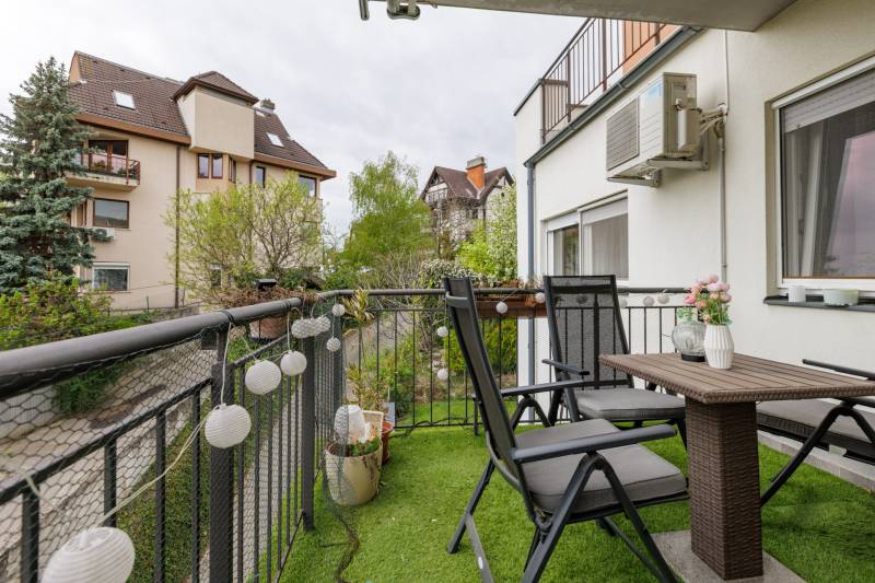 Sasad egyik legszebb, csendes utcájában kínálok megvételre egy különleges adottságokkal rendelkező, napfényes, tágas lakást. A lakás intim, zöld növényekkel körbevett környezetben helyezkedik el, ahol a nyugalom és a biztonság garantált. A kíváncsi tekintetektől elzárt, bájos terasz tökéletes helyszíne lehet reggeli kávéknak vagy esti pihenéseknek.Főbb jellemzők 90 m² lakótér + 14 m² terasz Dél-nyugati fekvés – egész nap világos, napfényes 1. emeleti lakás egy újszerű, liftes, mindössze 6 lakásos társasházban Intim, növényekkel övezett, zavartalan környezetCsaládbarát, rendezett, zöldövezeti utcaElrendezésTágas, világos nappaliÉtkező, gépesített konyha, külön kamrával 3 külön nyíló hálószoba 1 fürdőszoba + 1 külön WC Beépített tárolóbútorokMinden helyiség ablakos, redőnnyel és szúnyoghálóvalKomfort és műszaki felszereltség3 darab hűtő-fűtő klíma Motoros, szélérzékelős napellenző a teraszon Gázkazános fűtés és melegvízPadlófűtés a hidegburkolatos helyiségekben, radiátoros fűtés a szobákbanA teremgarázshoz fűtött lehajtó biztosítja a kényelmes és biztonságos parkolást télen isTartozékok (az ár része): Nagyméretű teremgarázs hely Külön, zárható tárolóA társasház és kertKis létszámú, barátságos lakóközösségGondozott, parkosított kert automata öntözőrendszerrelSaját játszótér a gyerekeknekA kertet hivatásos kertész ápoljaElhelyezkedés, infrastruktúraKiváló közlekedés: M1/M7, MOM Park, Allee, Etele Pláza néhány perc alatt elérhetőA közelben: iskola, óvoda, boltok, parkok, játszótér, orvosi rendelőGarázs és tároló 25 000 000Teljes vételár garázzsal tárolóval 214 000 000 Ft
