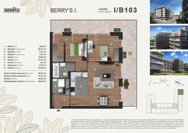 Projekt bemutatásaA XI. kerületi Bartók Béla úthoz közel épülő lakópark egy csendes, nyugodt környezetet kínál a város forgatagához közel. Az újbudai városrészben kialakított új lakónegyed kiváló közlekedési kapcsolatokkal rendelkezik. A zsákutcából nyíló elhelyezkedés biztosítja a forgalommentes, zavartalan lakókörnyezeti életet.A lakópark elhelyezkedése ideális azok számára, akik gyorsan és kényelmesen szeretnék elérni a város bármely pontját. A 4-es metró közelsége, az 1-2 perc sétatávolságra elérhető villamosok és a környéken közlekedő nappali és éjszakai autóbuszjáratok kiváló közlekedési lehetőséget biztosítanak. Az M1-es és M7-es autópályák közelsége, vagy a Kelenföld vasútállomás megkönnyíti az ország minden részébe, kiemelten a Balatonhoz és a Velencei tóhoz tervezett utazásokat.A legmodernebb mennyezeti hűtő- fűtő rendszernek köszönhetően alacsony fenntartási költségek várnak. A zöldtetők és az épület körüli zöldterületek nemcsak természetes hőszigetelést adnak, de a közösségi életet is támogatják.A gyönyörű kilátás nyugalma a városi nyüzsgés harmóniájával. A Berry’s minden lakásához tartozik loggia, erkély, vagy terasz!Várható műszaki átadás: 2027 vége