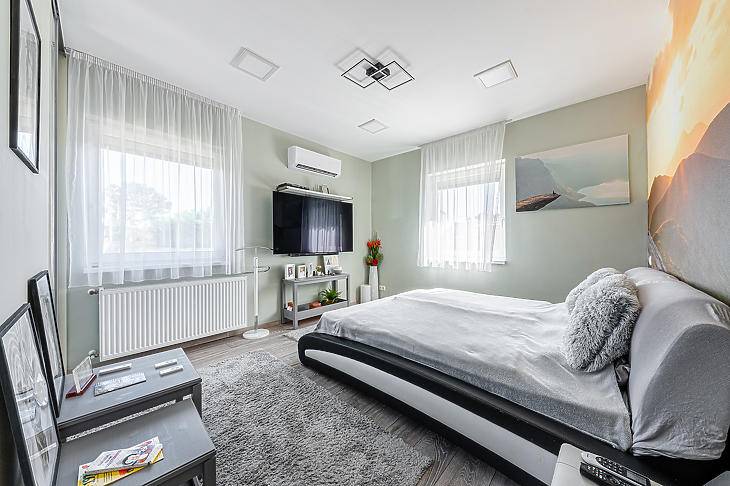 POMÁZON ELADÓ EGY ZÁRT LAKÓPARKI IKERHÁZ-FÉL!A KÖRNYÉK:Pomázon egy zárt lakóparkban, központi helyen, a H5-ös HÉV-től csak 12 perc sétára található. Könnyen megközelíthető rengeteg bevásárlási lehetőség, mint például a Lidl, vagy akár a SPAR szupermarket, melyek szintén 12 perc sétatávra helyezkednek el. A Mátyás Király Általános Iskola 15 perc, míg a Sashegyi Sándor Általános Iskola és Gimnázium 16 perc gyalog.A HÁZ JELLEMZŐI:-A ház hasznos alapterülete: 130 nm.-Plusz egy 22,73 nm-es beépített terasz, ahol klíma került kialakításra.-Plusz egy biciklitároló.-2018-ban épült, 30 cm vastagságú Porotherm téglából.-15 cm-es grafitos szigetelést kapott, melynek köszönhetően a rezsi rendkívül alacsony.-A tető Tondach Bolero terrakotta cseréppel fedett, 20 cm vtg. ISOVER üveggyapot hőszigeteléssel.-A nyílászárók 3 rétegűek, műanyagok.-Az egész házban vízlágyító rendszer került kialakításra.-Elektromos redőnyök és beépített szúnyogháló került kialakításra. -Megtalálható melegvíz tároló is, ami gázról és villanyról egyaránt működik, valamint meleg víz keringgető rendszer is ki lett alakítva.-A fűtésről egy Fondital Itaca 24 kW-os kondenzációs kazán gondoskodik.-A hidegburkolatok alatt padlófűtés, a szobákban radiátorok találhatóak.-Szinte minden helyiségben található klíma, a házban összesen 5 db.-Felszerelésre került 8 db 7 Kw-os napelem hálózat, ami még 8 évig szaldós.-Van energia tároló, ami 10,8 Kw-os, erről megy a kamerarendszer, riasztórendszer és az elektromos autótöltő.-Elektromos redőnyök és beépített szúnyogháló került kialakításra. -A kertben megtalálható egy kerti zuhany.-A telken belül kettő autó számára is van lehetőség a parkolásra.FINANSZÍROZÁS:Banki finanszírozással is megvásárolható, melyben irodánk ingyenes tanácsadással áll rendelkezésükre!VEVŐINK RÉSZÉRE A KÖZVETÍTÉS DÍJTALAN! A hirdetésben szereplő adatok tájékoztató jellegűek!