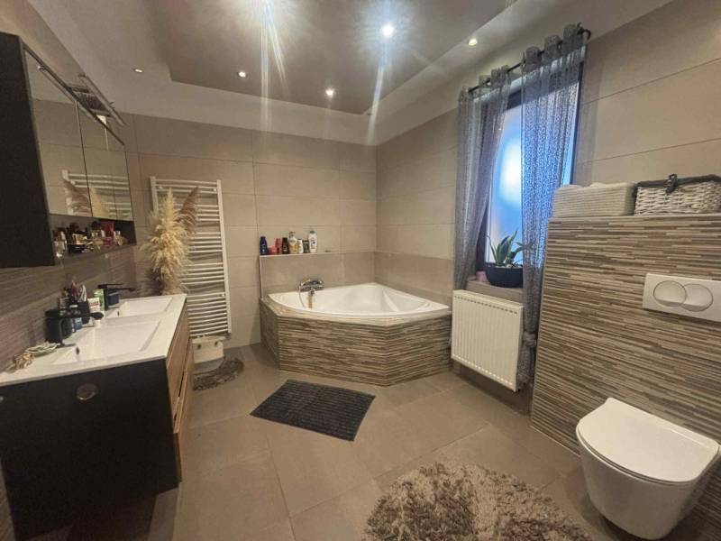 Szombathelytől 8 kilométerre nyugatra fekszik Dozmat település, az Arany-patak jobb partján emelkedő dombon. Kertvárosi csendes utcában eladó egy 2015-ben épült családi ház.Az ingatlanban 3 szoba, amerikai-konyhás nappali, gardrób, fürdőszoba, közlekedő és wc került kialakításra.Meleget Bosch kondenzációs kazán biztosítja radiátoros hőleadással, de alternatív megoldás a nappaliban található kandalló.A remek energetikai paraméterekkel épült házban fa födém (40 cm szigeteléssel) hőszigetelt egyedileg gyártott fa ablakok és ajtók kerültek beépítésre.A szépen gondozott udvaron 12 m2-es tároló, játszótér, 5 méter átmérőjű süllyesztett gépesített medence van.Az ingatlan egyik éke az 50 m-es részben fedett terasz, amely gépesített nyári konyhával felszerelt.Gépjárművek parkolására 40 m2-es fedett beálló készült.Amennyiben csendes kis faluban a határtól néhány kilométerre szeretne élni egy gondosan karbantartott igényes kivitelezésű házban, kérem hívjon és nézzük meg együtt.Kizárólag a GDN ingatlanhálózat kínálatában.