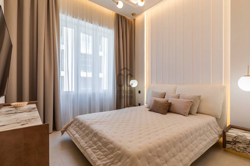 Kulcsrakész érték prémium lokációban. Üdv itthon! RÖVID ÖSSZEFOGLALÓ A Szervita tér 5. szám alatt, egy frissen felújított, II. emeleti, 106 m²-es lakás keresi új tulajdonosát. Az ingatlanban egy tágas nappali és , teljeskörűen gépesített konyha, fő hálószoba gardrób -és fürdő kapcsolattal, egy vendégszoba, egy külön mosdó és még egy külön zuhanyzós fürdő található. K-i tájolású, padlófűtéssel és klímás hűtéssel felszerelt. Minden részletében a magas minőség, és a kortárs esztétika érvényesül. HELYSZÍN – A város lüktetése karnyújtásnyira A Szervita tér Budapest egyik legfrekventáltabb, mégis intim pontja: a belváros pezsgésétől karnyújtásnyira, de egy eldugottabb, csendesebb térrel körülölelve. Innen néhány perc séta a Váci utca, az Erzsébet tér vagy épp a Duna-part – a város legfontosabb kulturális, üzleti és gasztronómiai helyszínei egyetlen sarokra. A környék infrastrukturálisan is első osztályú: M3-as metró, Deák tér közvetlen elérhetőséggel Éttermek, kávézók, dizájner üzletek, bankok és szolgáltatások közvetlen közelben Tömegközlekedés, parkolóházak, gyalogos zónák optimális kombinációja AZ ÉPÜLET – Történeti háttér és építészeti karakterA Szervita tér 5. szám alatt álló épületet Lajta Béla, a korai magyar modern építészet egyik legjelentősebb alakja tervezte. Az 1911–1912 között épült ház eredetileg üzletháznak készült, és ma is őrzi az időtálló arányokat, valamint az építész egyéni látásmódjának nyomait. Az épület „Rózsavölgyi-házként” is ismert, mivel az alsó szinten a legendás Rózsavölgyi Zeneműbolt és kiadó működött és működik ma is, a tér kulturális karakteréhez szorosan hozzájárulva. Az ingatlan helyi védelem alatt áll, és a Szervita tér városképi egységének meghatározó része.A tér közvetlen szomszédságában található a Belvárosi Szent Anna-templom, a Szervita rend barokk stílusú temploma, mely 1725 és 1732 között épült a rendház részeként. A templom előtti nyitott tér egyszerre hordoz történelmet és urbánus nyugalmat – valódi ritkaság a belvárosi szövetben.A Szervita tér másik nevezetes épülete a Török Bankház, a magyar szecesszió egyik ikonikus alkotása, melyet Böhm Henrik és Hegedűs Ármin terveztek 1906-ban. Ez a tér valóban Budapest egyik legsokrétűbb, legösszetettebb városi színtere: történelmi korszakok, stílusok és funkciók találkoznak benne – harmonikusan, mégis karakteresen. A LAKÁS Az enteriőrben uralkodó természetes tónusokat a meleg fával burkolt felületek, a lágyan textúrázott kárpitok és a márvány felületek egyensúlya határozza meg. Finomat érezhető az egyensúly a hideg -és meleg felületek között, aki erre érzékeny azonnal feltűnik számár a gondos odafigyelés, mellyel sikerült egy időben kialakítani a letisztult luxus és az otthonosság érzetét. A nappali, a konyha és az étkező egy tágas, jól átjárható térben kapcsolódik össze – a kialakítás átgondolt, mégis légies. A magasfényű frontokkal és aranyszegélyekkel hangsúlyozott konyhában minden részlet a precizitást és stílust szolgálja, miközben a márvány mintázat a nappali dohányzóasztalán és a falburkolatokon is visszaköszön. A hálószoba hangulata diszkrét, de karakteres, külön gardróbszoba tartozik hozzá finoman ívelt polcrendszerrel és beépített világítással. A fürdőszoba azonos stílusban készült: szabadon álló káddal és elegáns arany csaptelepekkel hívja lassításra a ritmust, míg a zuhanyzós kialakítás a funkcionalitás jegyében fogant. A világításrendszer egyedileg tervezett: rejtett LED-ek, designlámpák és mennyezeti megoldások teszik dinamikussá a fények játékát. A fűtést padlófűtés, a hűtést klímaberendezés biztosítja – a gépészet és burkolatok is a felújítás során teljesen megújultak. AJÁNLÁS BEFEKTETŐKNEK – Ritka minőség, kiemelkedő érték egyedülálló lokációban A Szervita tér közvetlen közelében, Budapest egyik legkeresettebb belvárosi mikrolokációjában elhelyezkedő lakás nem pusztán elhelyezkedésével, hanem a kivitelezés színvonalával is kitűnik a piaci kínálatból. A teljeskörű, magas minőségű felújítás, az enteriőr egységes dizájnkoncepciója, valamint a műszaki felszereltség olyan szintet képvisel, amely csak kevés hasonló paraméterű lakásra jellemző. A lakás azonnal, külön beruházás nélkül hozamtermelő egységként is aktiválható – legyen szó hosszú távú kiadásról, céges bérlőről vagy akár rövid távú prémium vendégkínálatról. A környék keresletét folyamatosan táplálja a jelenlévő nemzetközi vállalati szféra, a diplomáciai központok és a belváros turisztikai súlypontjai. A Deák tér, a Duna-part, a Váci utca vagy a Bazilika gyalogosan pár percen belül elérhető, ami kiemelkedő bérlői komfortot és állandó keresletet biztosít. Ez az ingatlan tehát nemcsak esztétikai élmény, hanem racionálisan is védhető, értékálló befektetés a budapesti prémium kategóriában – azoknak, akik hosszú távon gondolkodnak minőségben.
