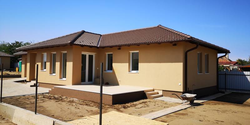 Egyszintes családi ház rendkívül magas műszaki tartalommal! Gyál központjához közel, csendes, új építésű, 123 m2-es, nappali + 4 szobás, 2 fürdőszobás, dél-nyugati tájolású családi ház 640 m2-es telekrésszel 2026 nyári végi átadással kulcsrakészen eladó. Csúcstechnológiájú Daikin hőszivattyú biztosítja a padlófűtést, a mennyezet hűtést-fűtést és a meleg vizet. A nappaliban egy inverteres hűtő-fűtő klíma is kialakításra kerül. Elektromos alumínium redőnyök szúnyoghálóval. Riasztó. Elektromos kapu, garázsajtó. H tarifa. 1x32A és 3x20A. Referenciaház megtekinthető. A fotókon egy rövidesen átadásra kerülő ingatlan látható. Az ingatlant csak irodánk kínálatában találja.Összközműves aszfaltozott, széles utca. Közelben iskola, óvoda, szolgáltató egységek, üzletek. Jó tömegközlekedés.Vasbeton sávalap, 30 cm-es Porotherm tégla főfalak 12 cm-es dryvit hőszigeteléssel. Műanyag homlokzati nyílászárók 3 rétegű üveggel. Fa födém 30 cm. kőzetgyapot hőszigeteléssel. Bramac cserép héjalás. Festés, burkolás, szaniterek, belső ajtók választhatók. A hideg, meleg burkolatokat 6000 Ft./m2 árig, a belső ajtókat 75000 Ft./db. árig tartalmazza a vételár. Mosdó csaptelep: 25 ezer Ft., mosdó: 25. ezer Ft., Kádtöltő csaptelep: 40 ezer Ft., Fürdőkád: 100 ezer Ft., Zuhany csaptelep szett: 40 ezer Ft. Zuhanykabin épített zuhanyhoz: 200 ezer Ft., WC csésze: 25 ezer Ft. (beépített tartályos wc-k kerülnek kialakításra)Magyarország piacvezető hitelközvetítője által egyedi kamatkedvezményekkel és bankfüggetlen, díjmentes hitelügyintézéssel is segítjük vásárlását. Hívjon bizalommal!